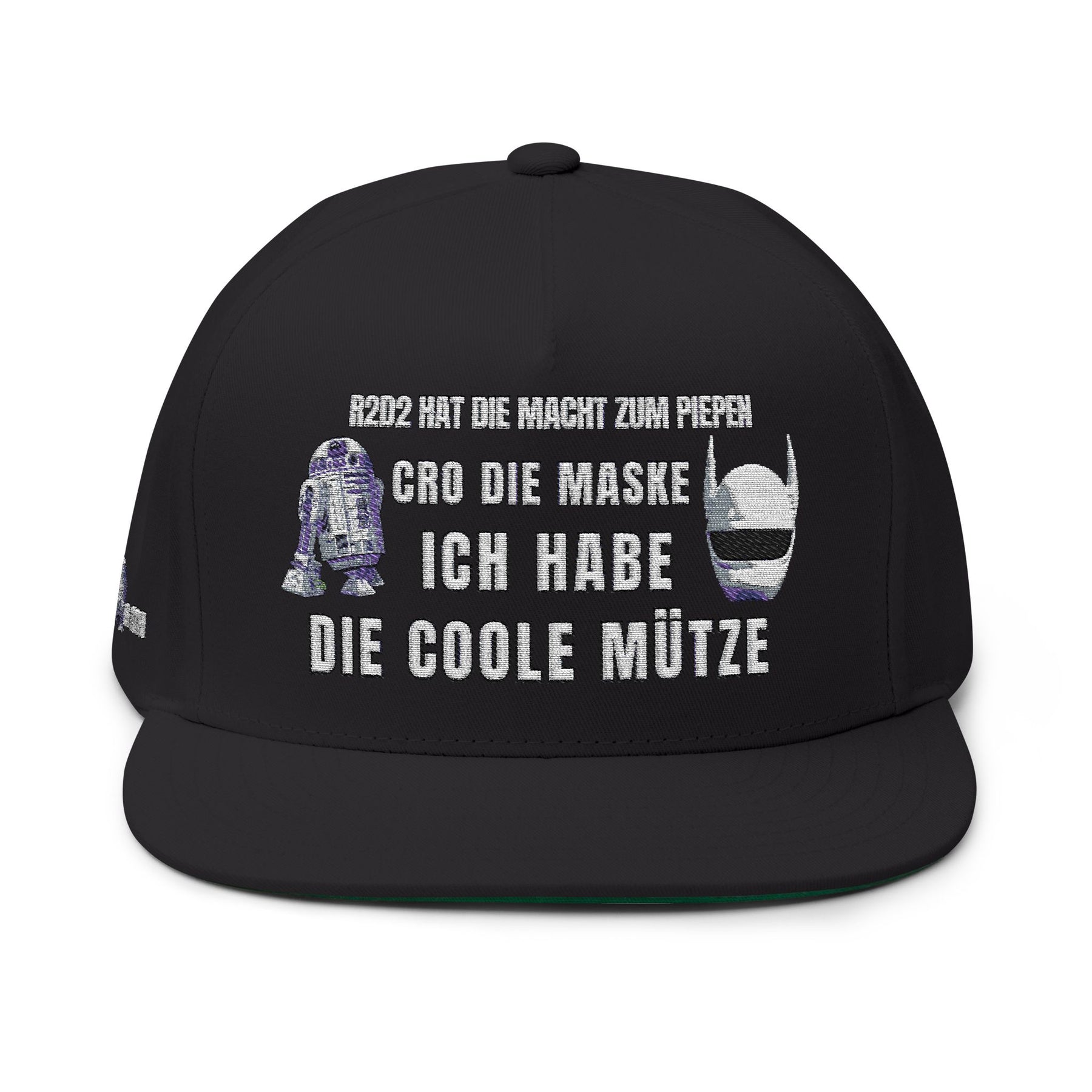 R2D2 piept, Cro hat die Maske – aber DU hast die Mütze! Diese stylische Snapback bringt Nerdkultur, Musik und Wortwitz unter einen Hut – oder besser gesagt: auf einen Hut. Perfekt für alle, die Popkultur lieben und ihr Statement gern mit einem Augenzwinkern tragen. Ob auf dem Festival, beim Zocken oder einfach auf der Straße – diese Mütze spricht für sich.