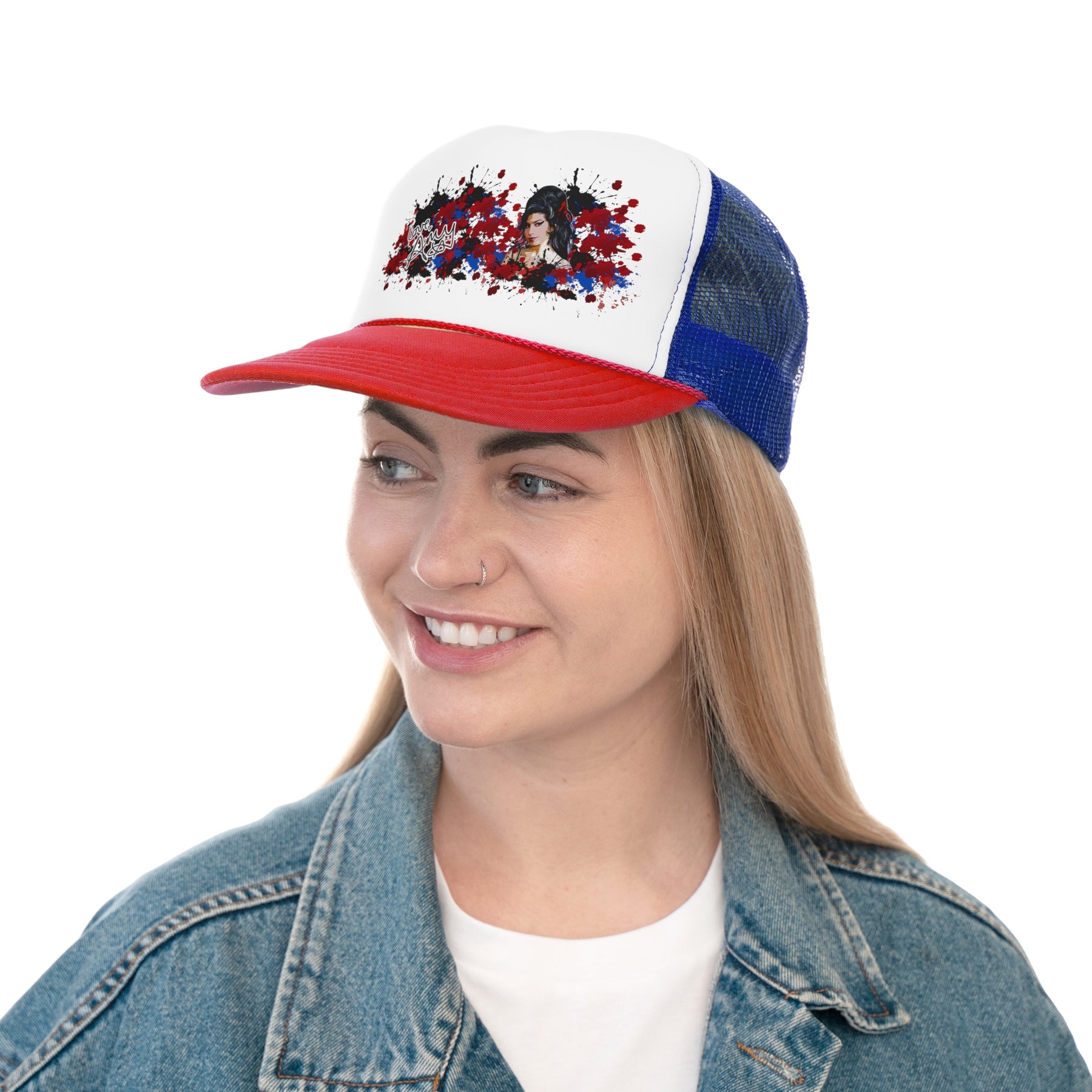 This cap featuring an Amy Winehouse design in graffiti-style splashes is a tribute to soul, attitude, and icons that never fade.