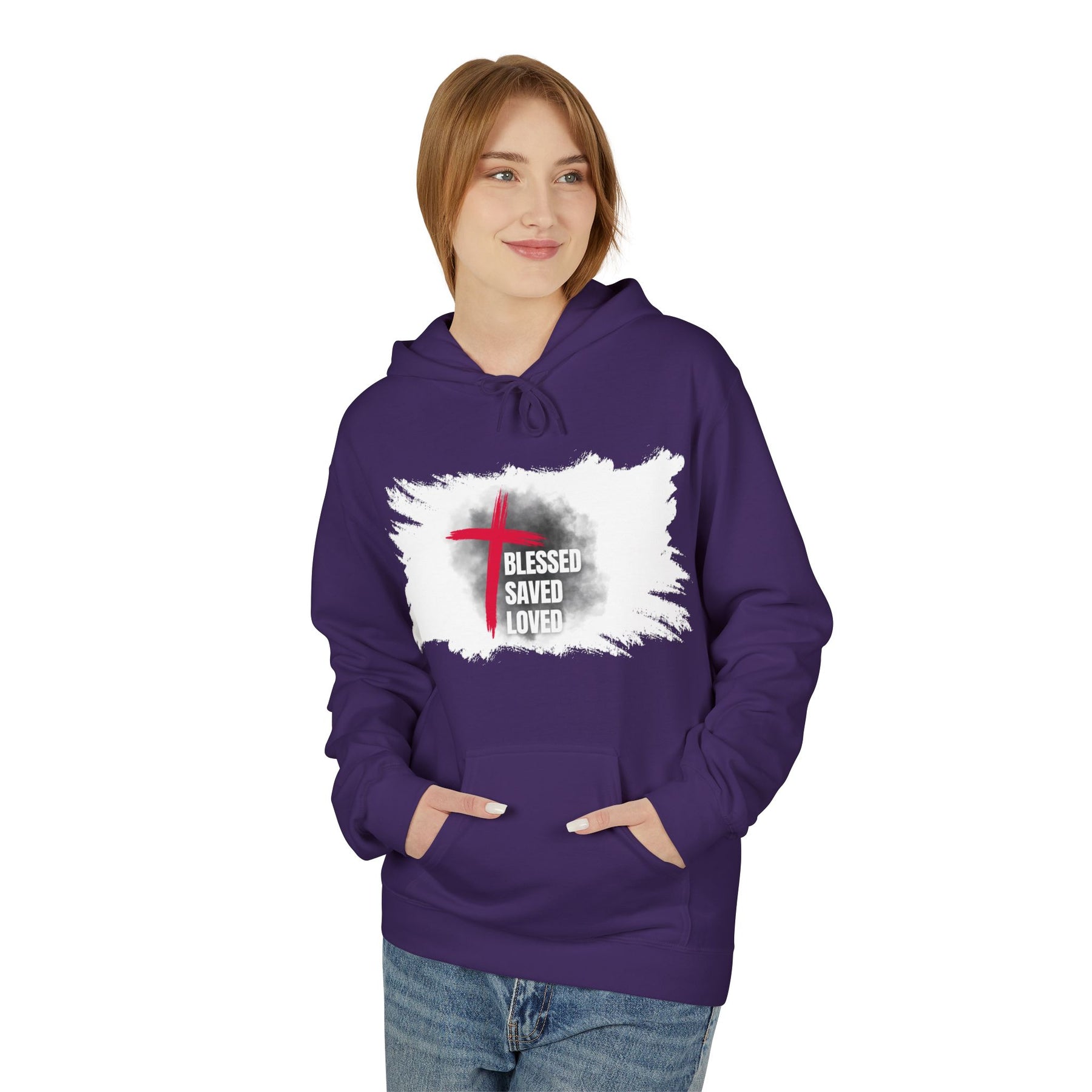 Faith-Inspired Hoodie: Blessed, Saved, Loved - Christian JESUS