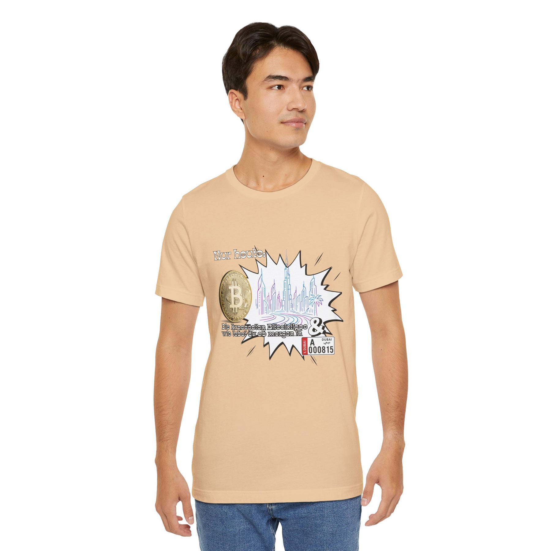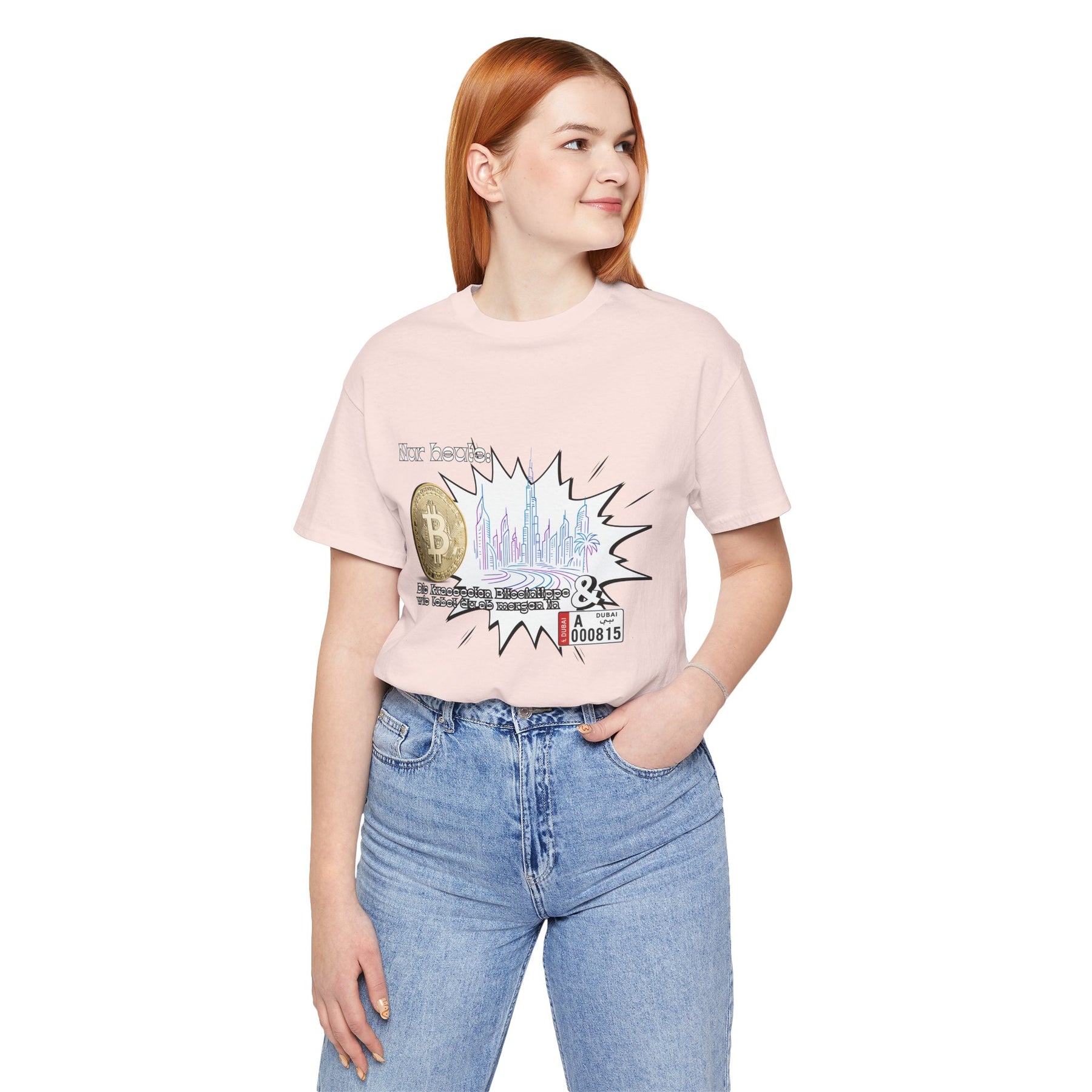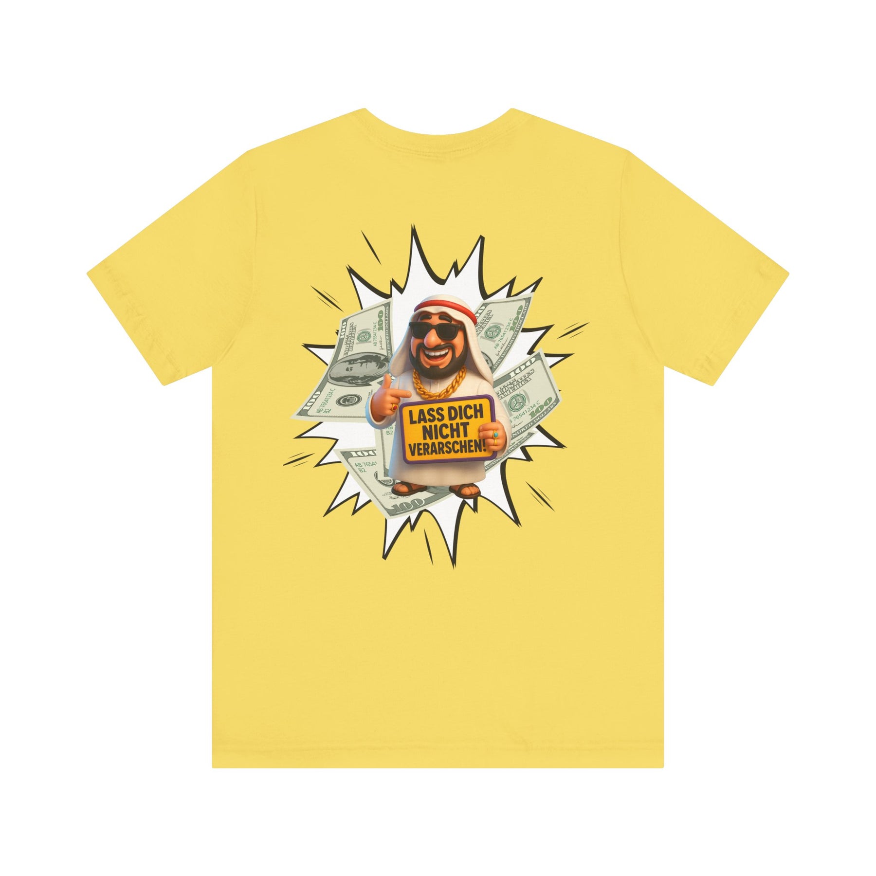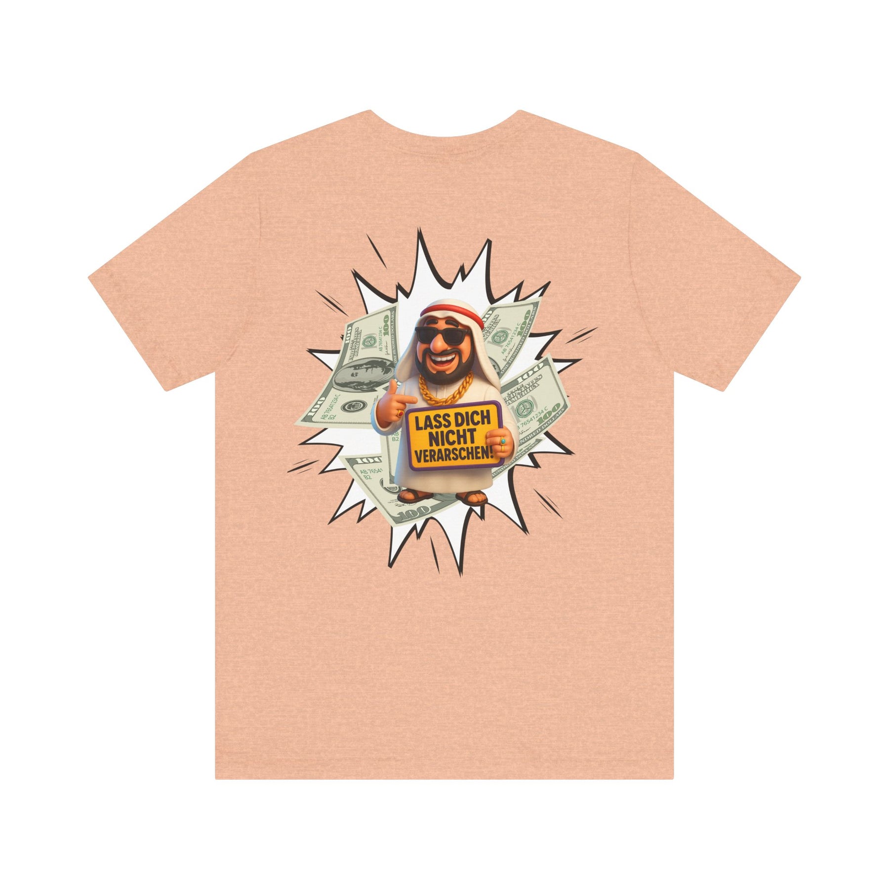 This shirt is more than just streetwear – it’s a statement! The front combines Bitcoin with Dubai vibes, while the back delivers the bold reminder “Don’t get fooled” in a money-splash cartoon style.