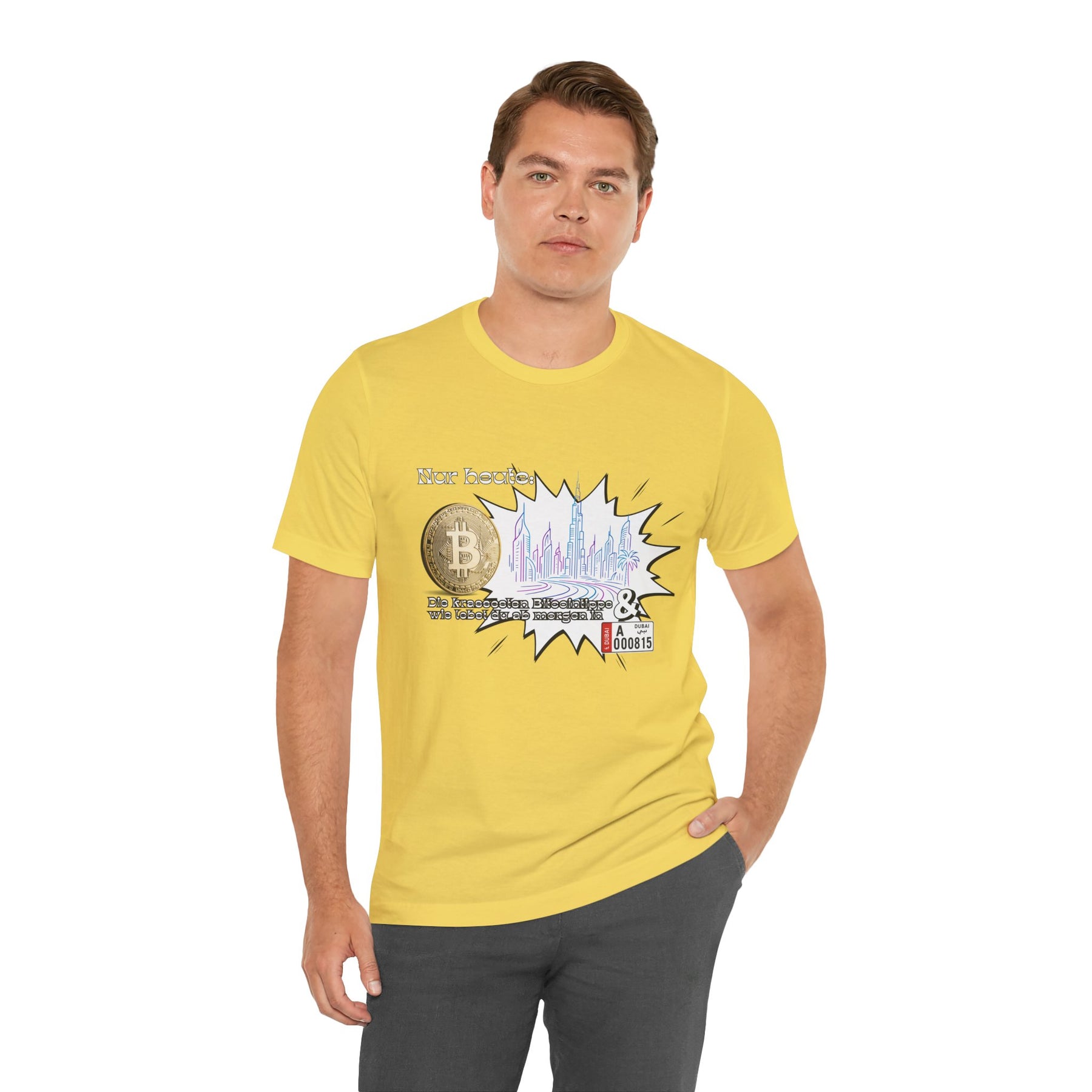 Dieses Shirt ist mehr als nur Streetwear – es ist ein Statement! Vorne trifft Bitcoin auf Dubai-Vibes, hinten erinnert dich der Spruch „Lass dich nicht verarschen“ daran, im Krypto- und Geldgeschäft einen klaren Kopf zu behalten.