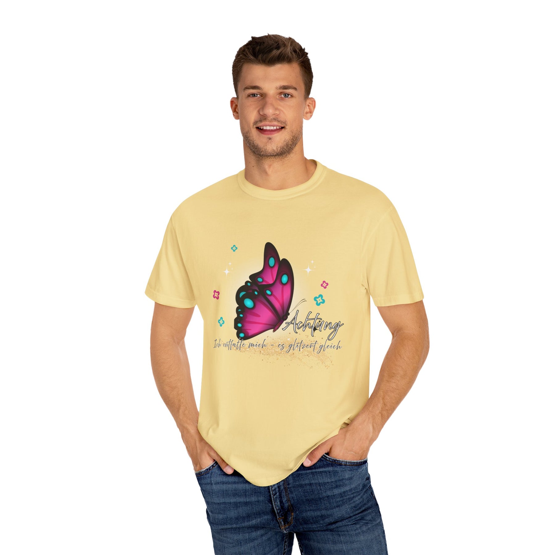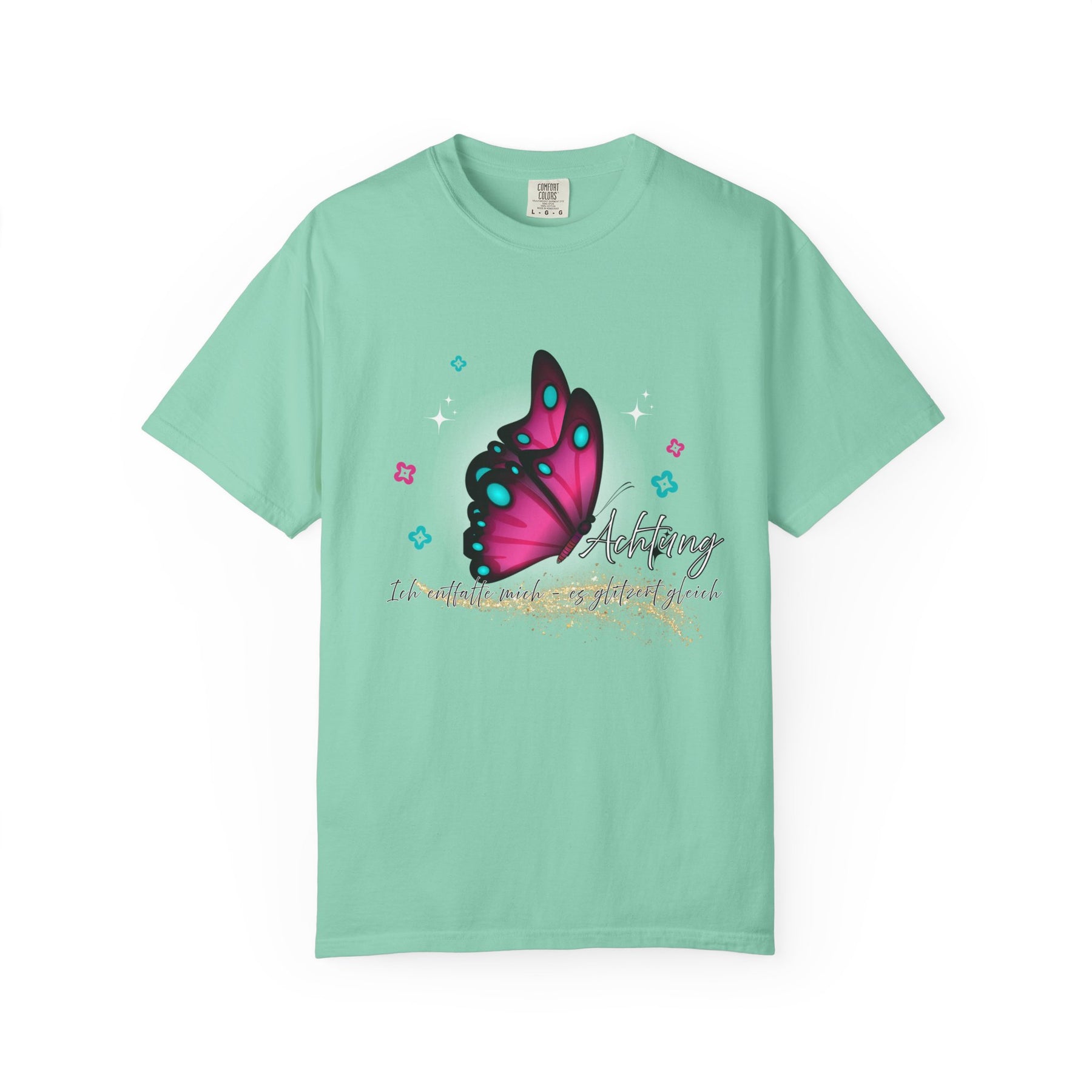 ✔ Spruch: „Achtung – Ich entfalte mich, es glitzert gleich“