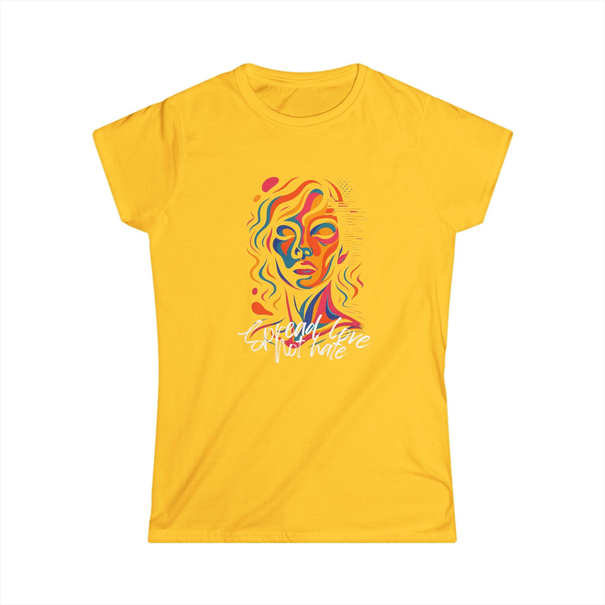 This isn't just a T-shirt â it's a message. Featuring a bold, abstract graphic of a woman and the empowering slogan âSpread Love, Not Hate,â this tee speaks volumes without saying a word. Minimalist in design, powerful in impact.