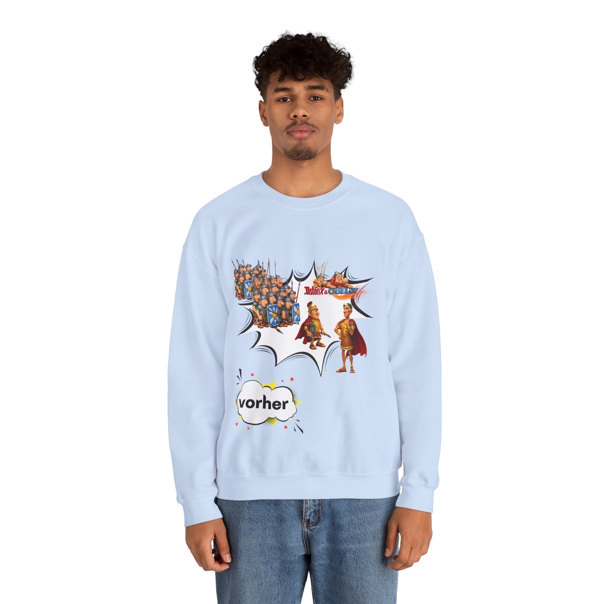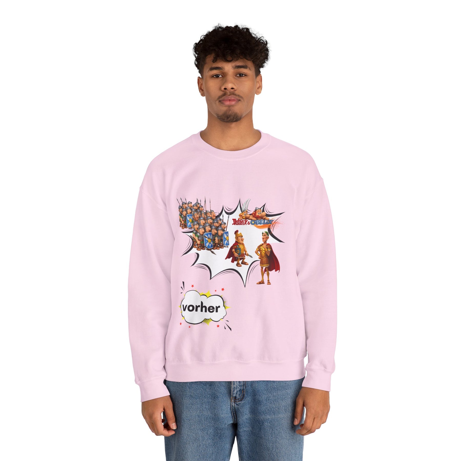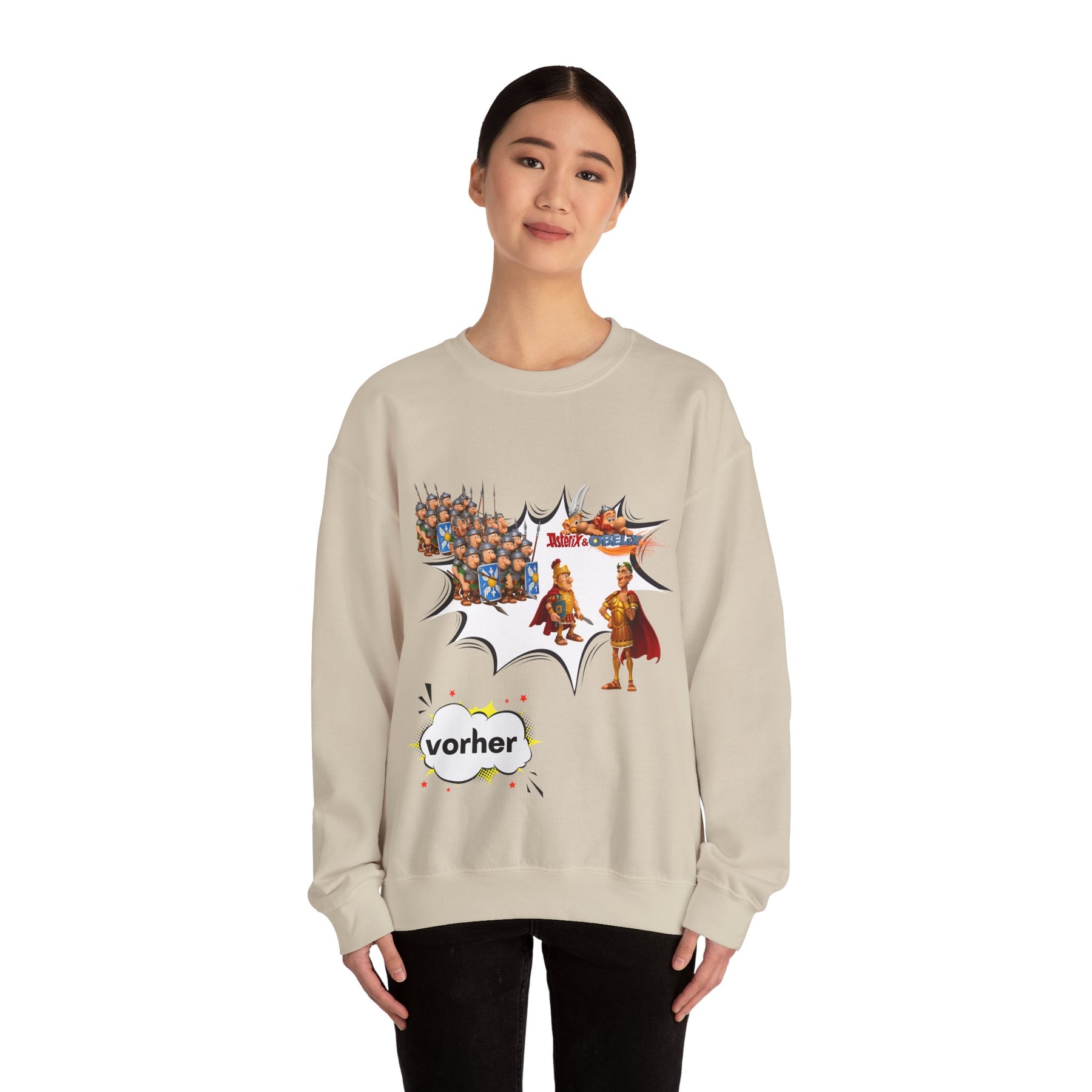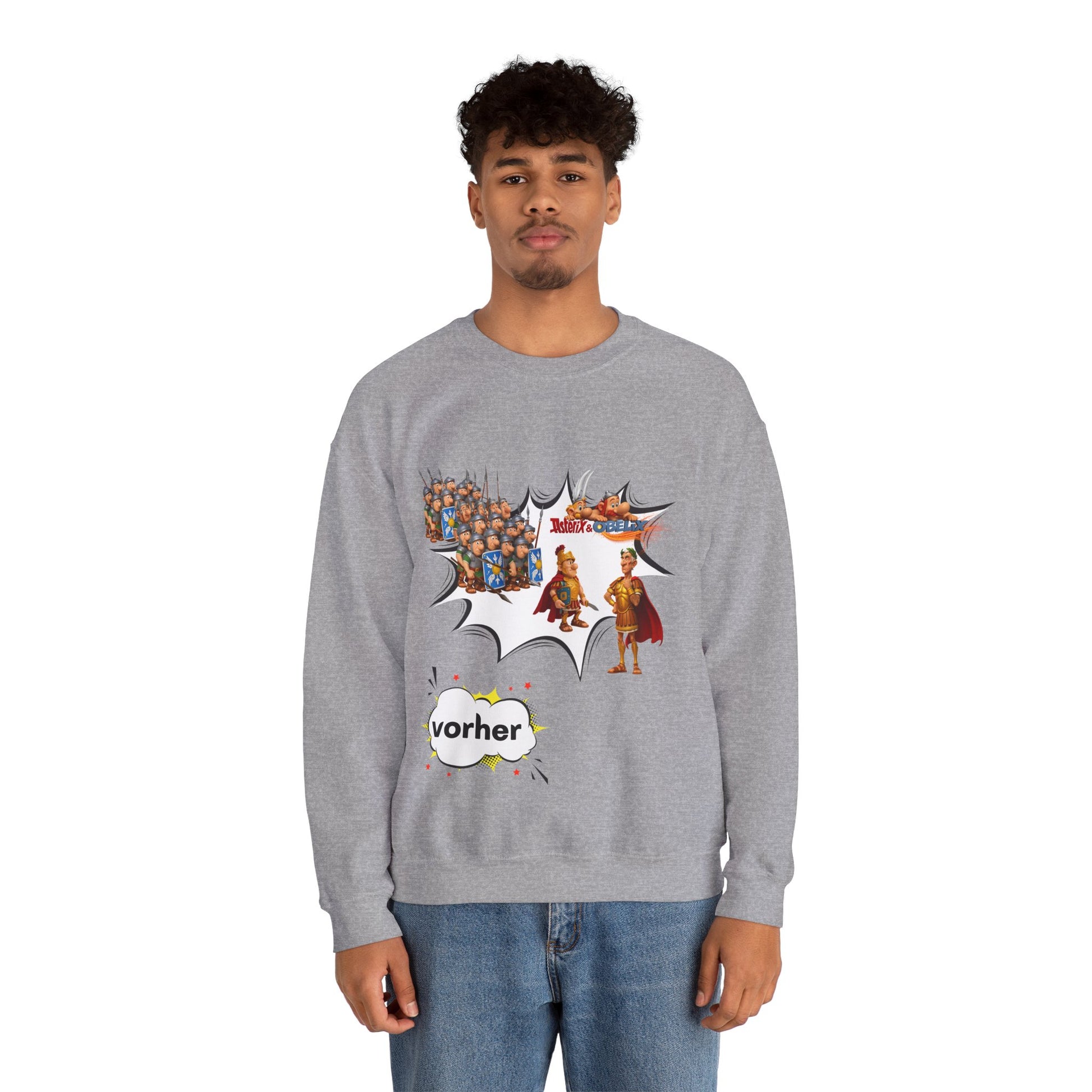 Vorderseite (before): Römer in Formation, Julius Cäsar an der Spitze – voller Selbstvertrauen und scheinbar unbesiegbar. Über ihnen das „Asterix & Obelix“-Logo. Doch wer die Gallier kennt, ahnt schon: Das wird nicht lange so bleiben.