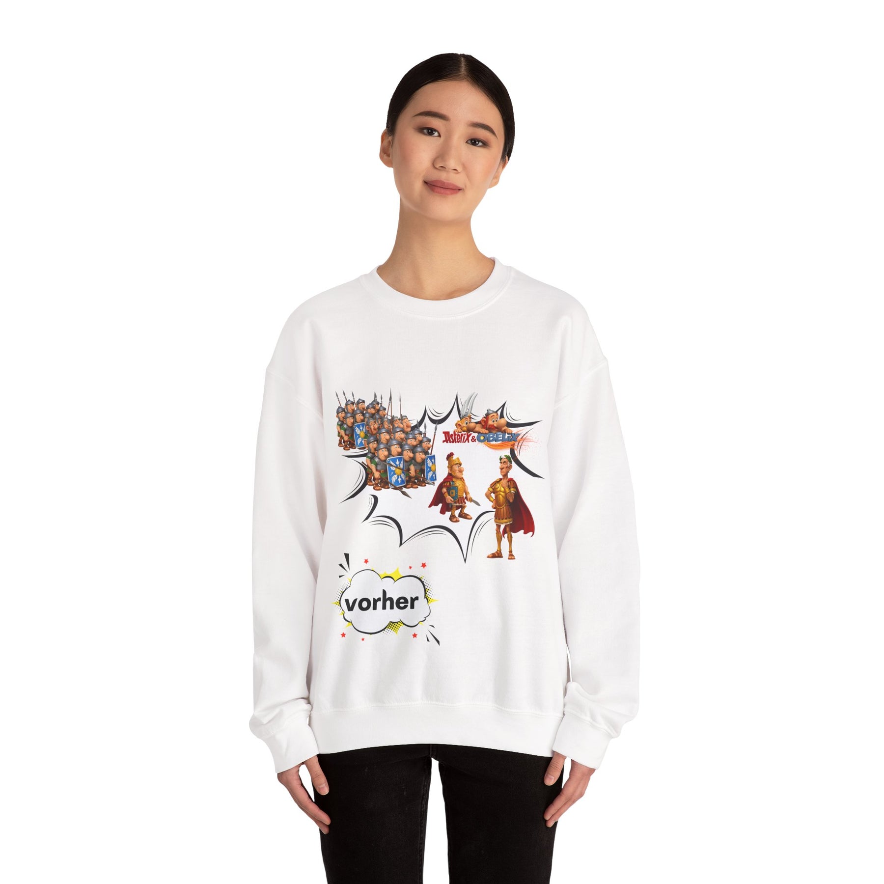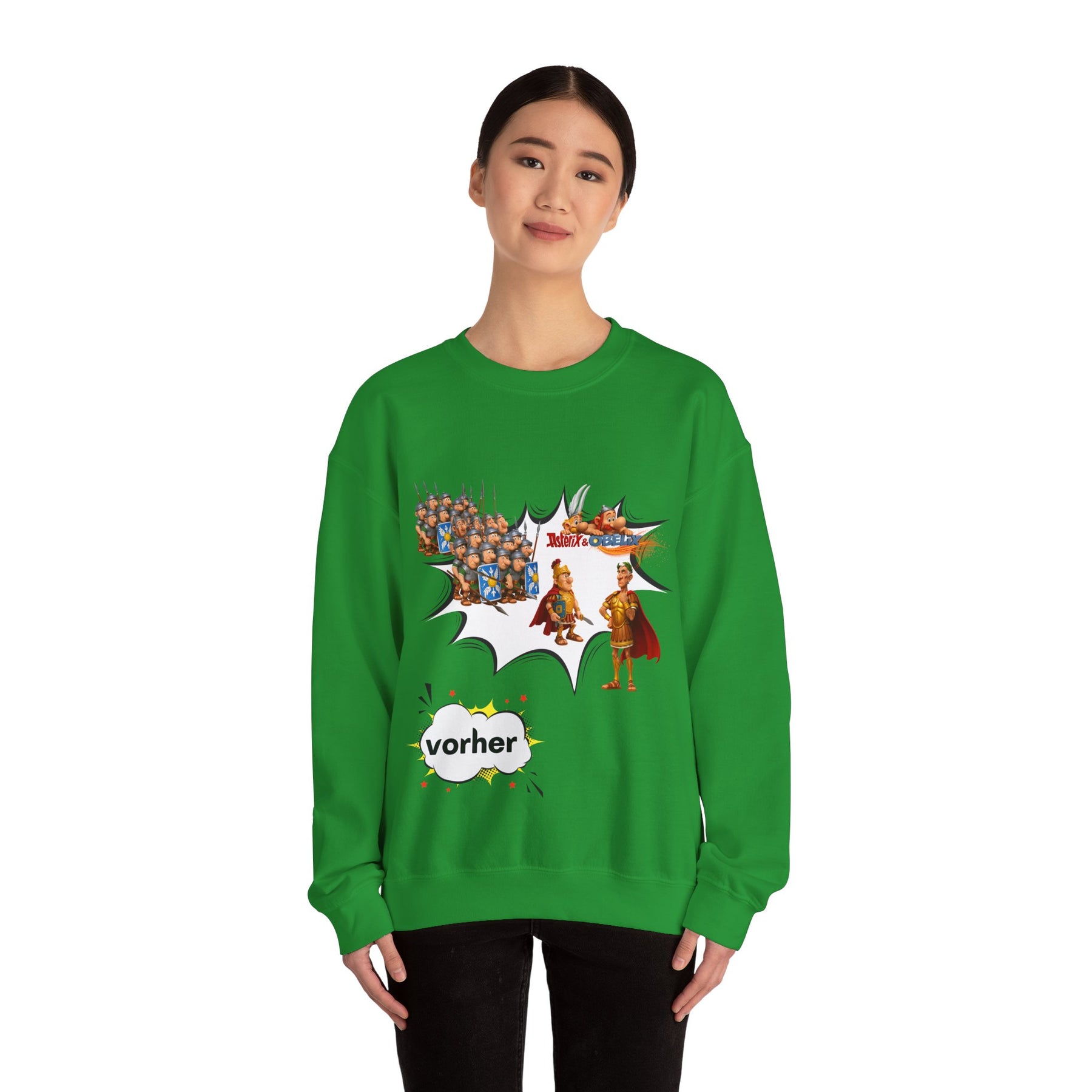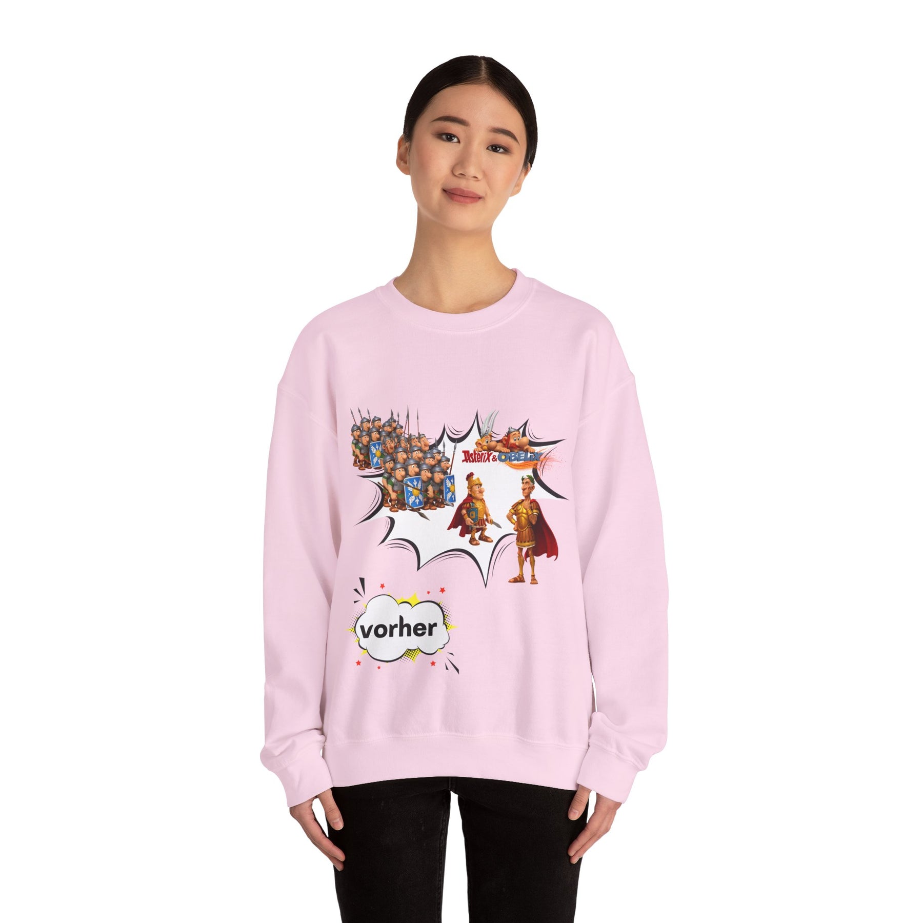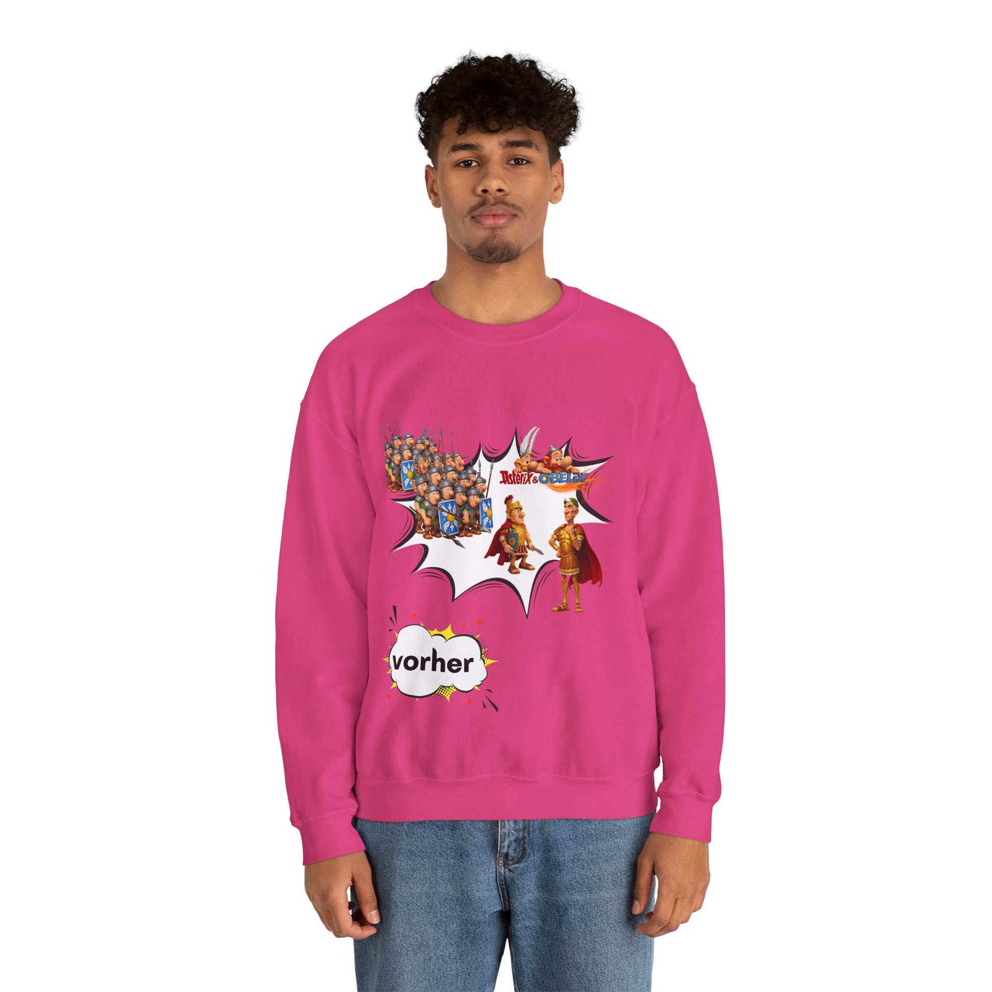 Vorderseite (before): Römer in Formation, Julius Cäsar an der Spitze – voller Selbstvertrauen und scheinbar unbesiegbar. Über ihnen das „Asterix & Obelix“-Logo. Doch wer die Gallier kennt, ahnt schon: Das wird nicht lange so bleiben.