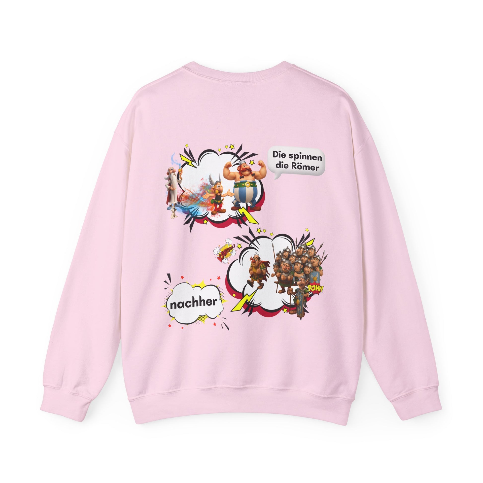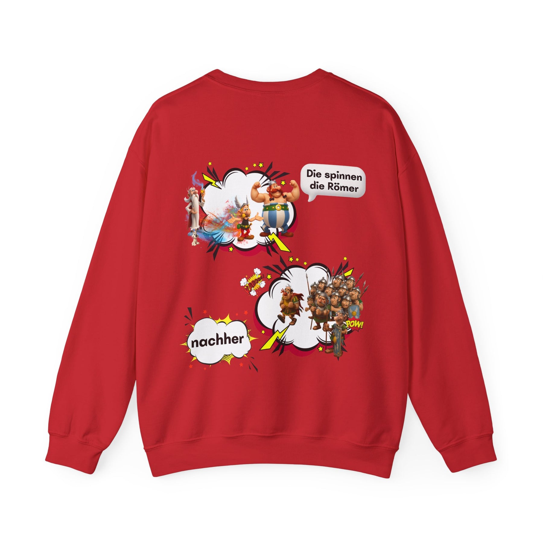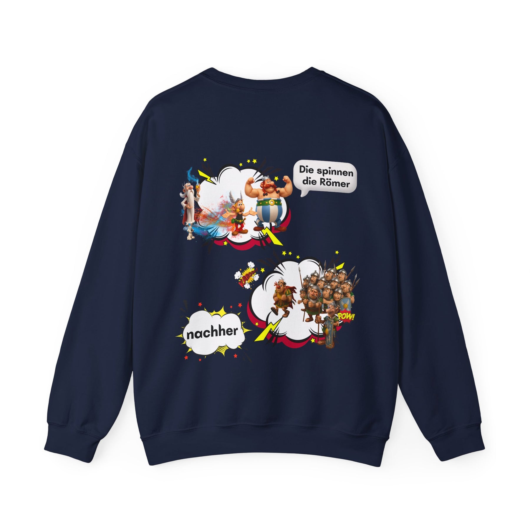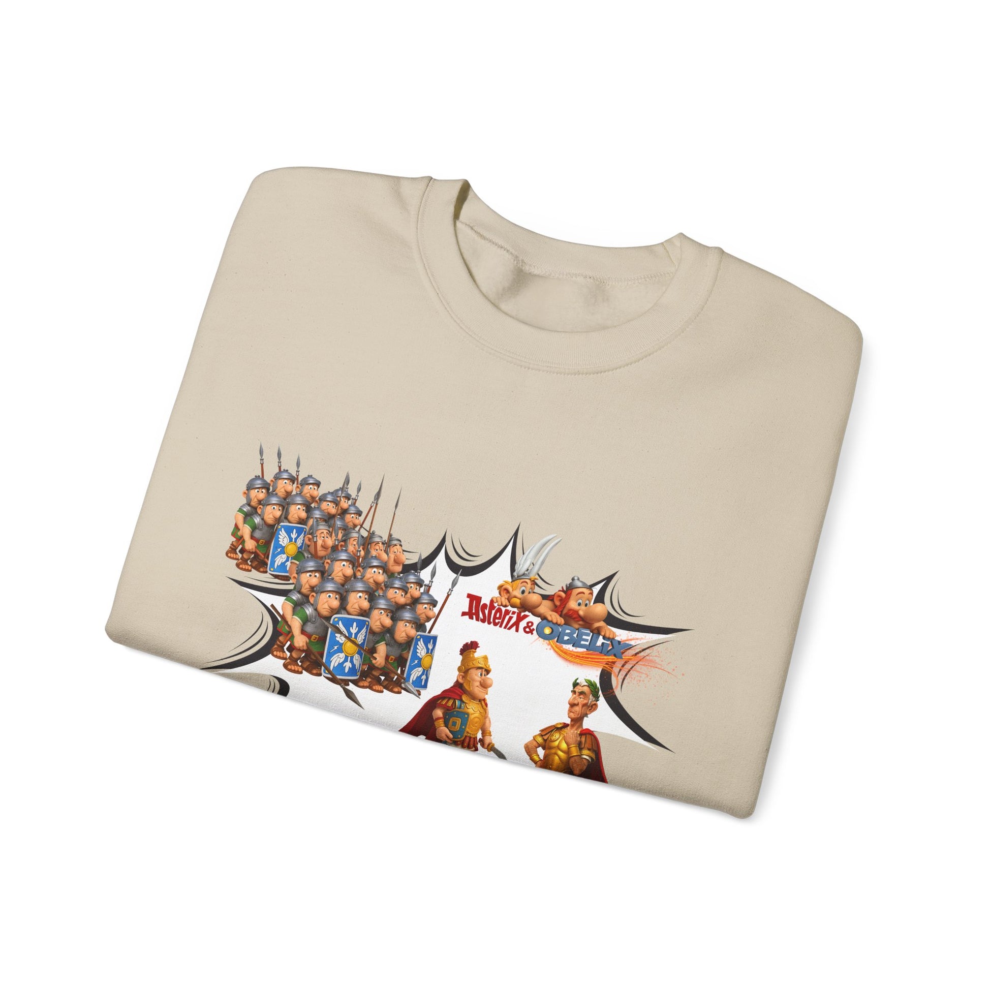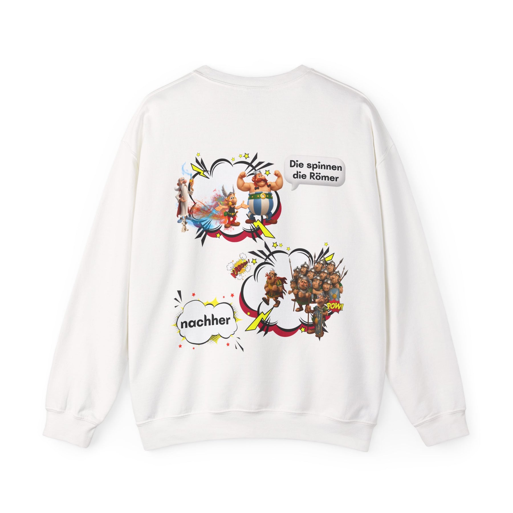Asterix, Obelix, Miraculix, Idefix & Co. haben zugeschlagen – und die Römer sehen nicht mehr ganz so kampfbereit aus. „Kaboom! Pow!“ im Comic-Stil unterstreichen das Chaos, während Obelix stolz die Muskeln spielen lässt. Ein humorvoller Vorher-Nachher-Gag für alle Fans der Kult-Comics.