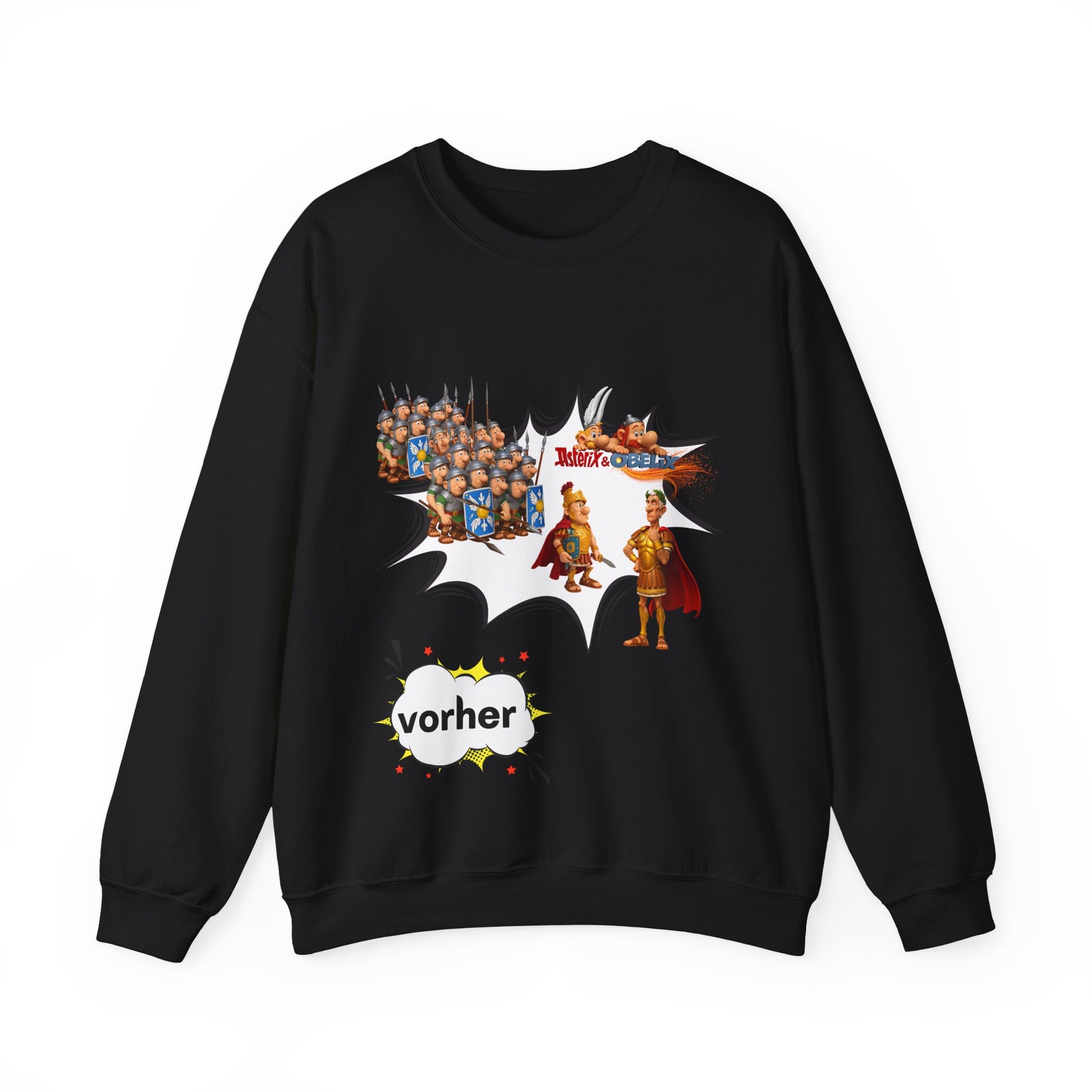 Asterix, Obelix, Getafix, Dogmatix & friends have struck – and the Romans don’t look quite as ready for battle anymore. “Kaboom! Pow!” in comic style capture the chaos, while Obelix proudly flexes his muscles. A playful before-and-after gag for all fans of the legendary comics.