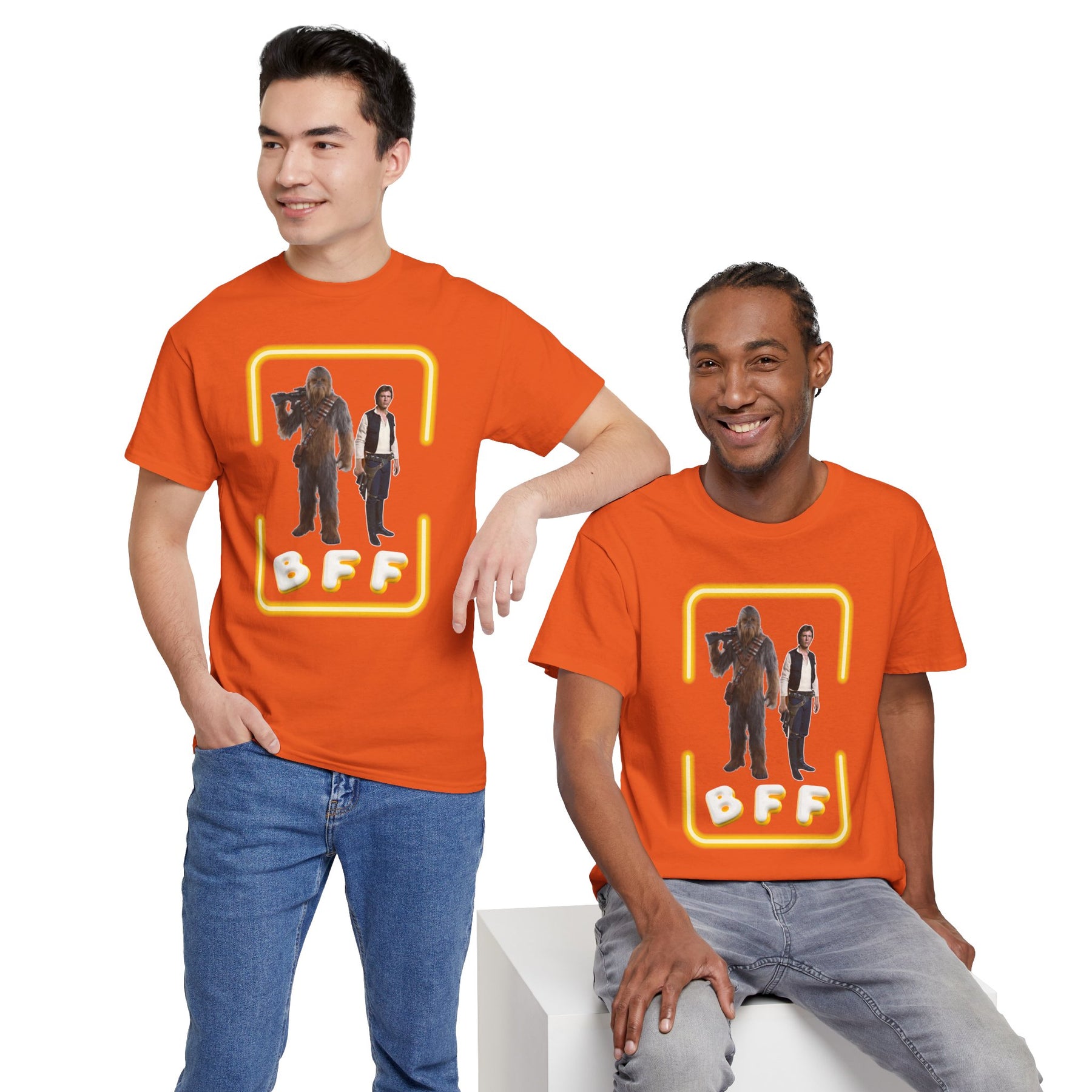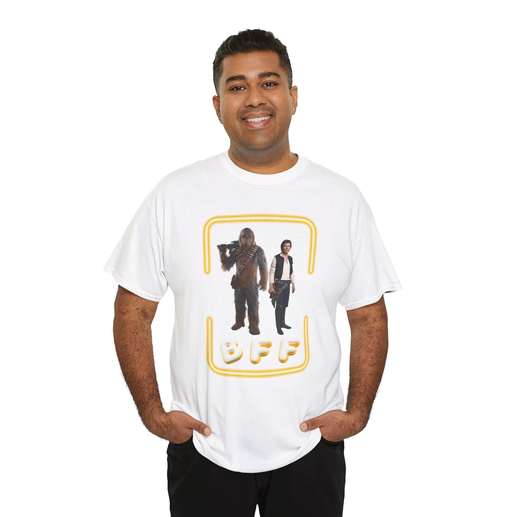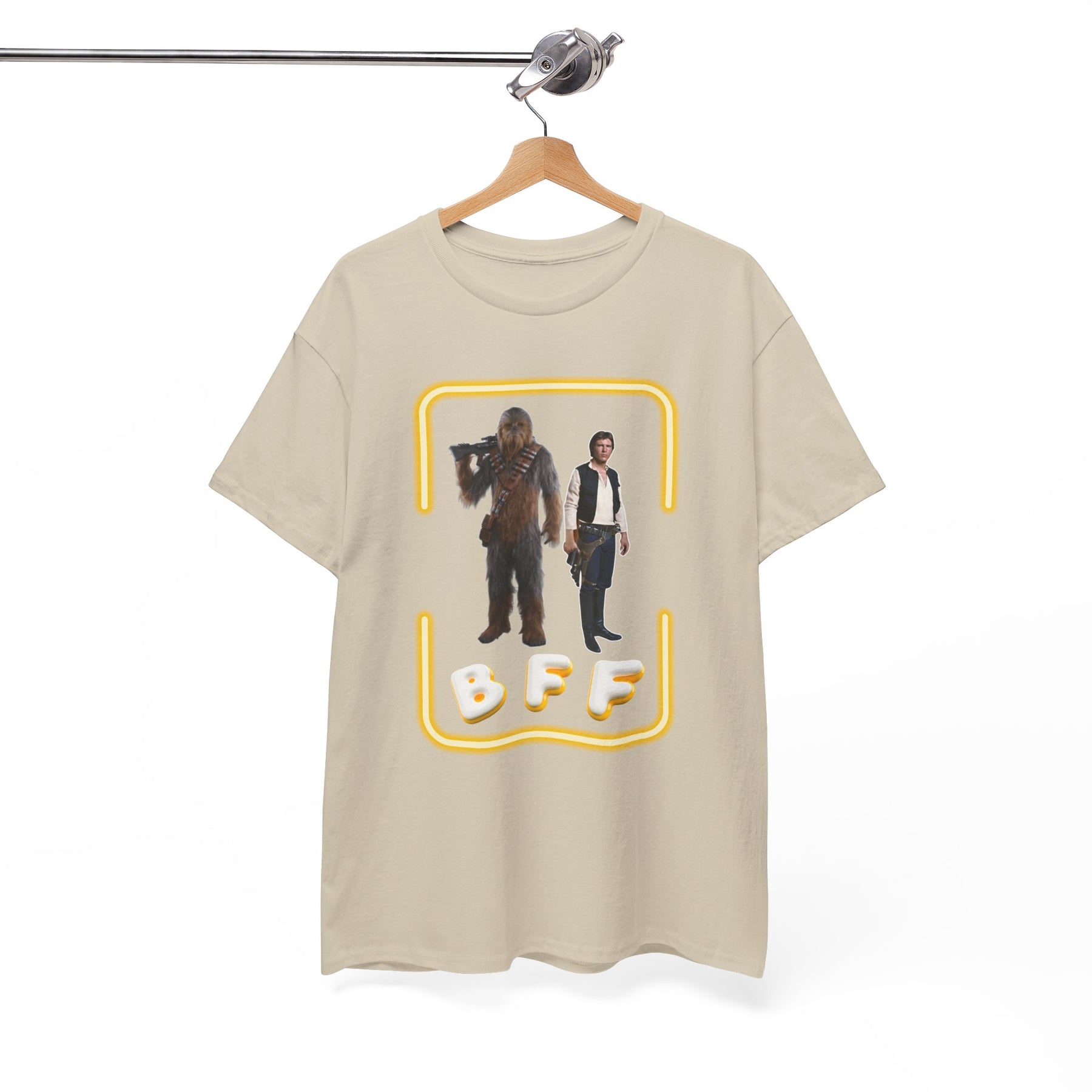This tee honors a friendship that's stronger than carbonite. Whether you're smuggling spice or just surviving Mondays, BFF means "Best Force Friends" – obviously.
