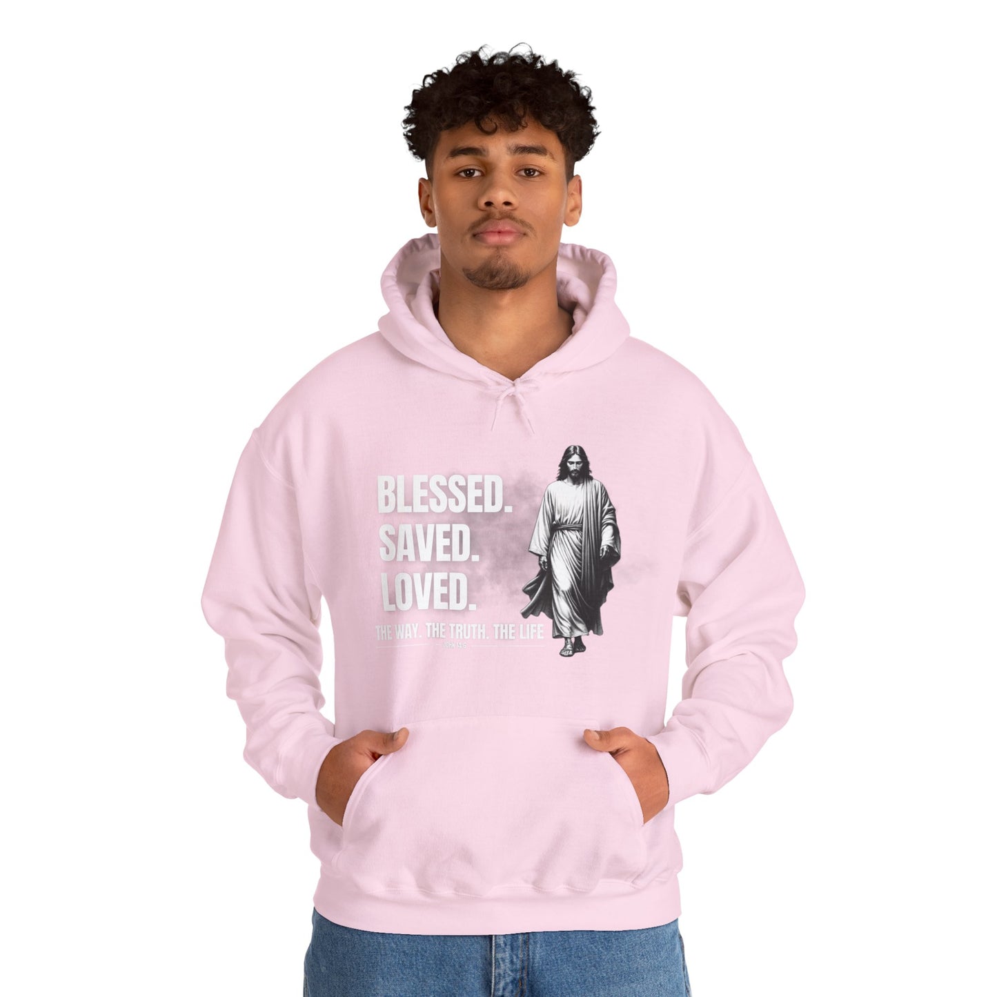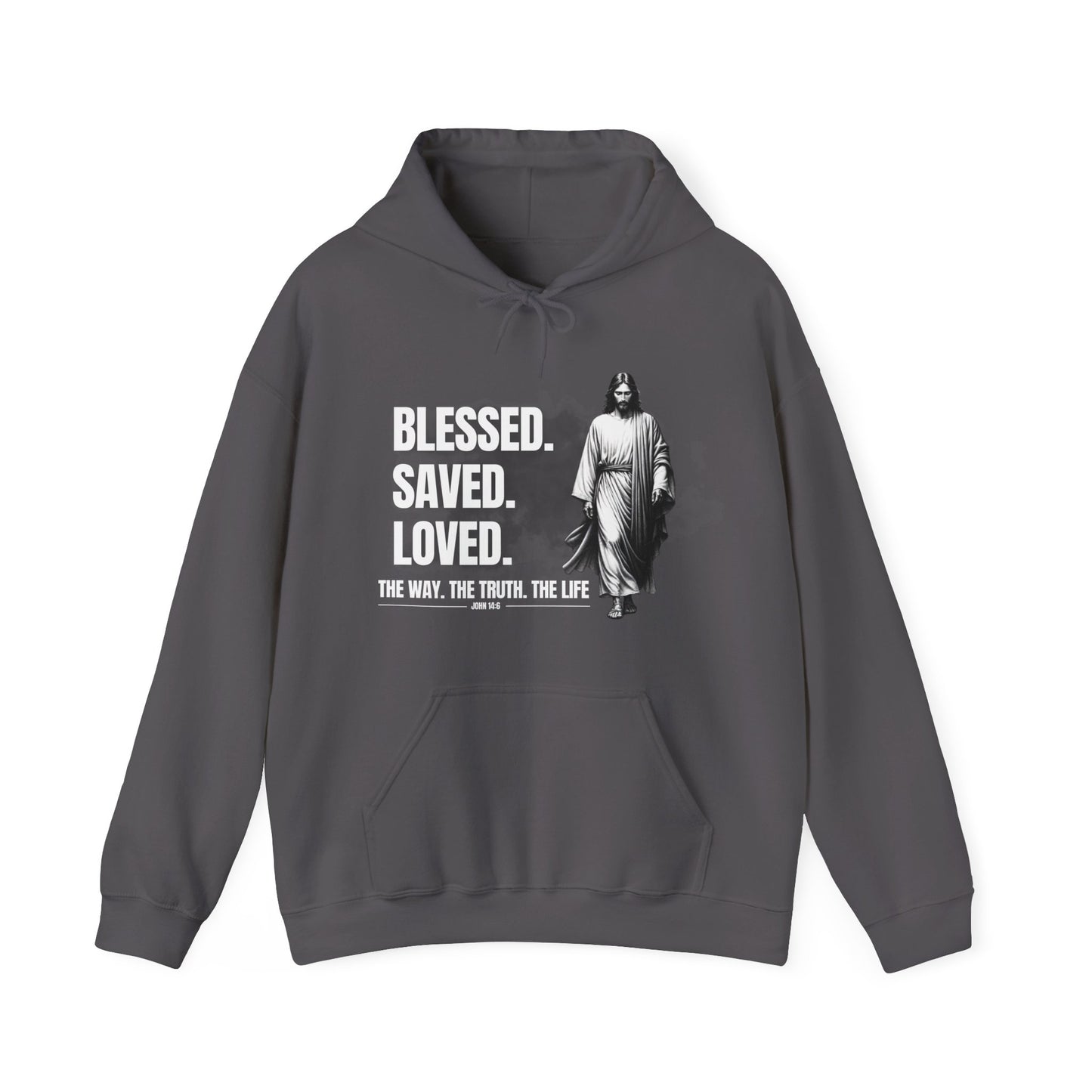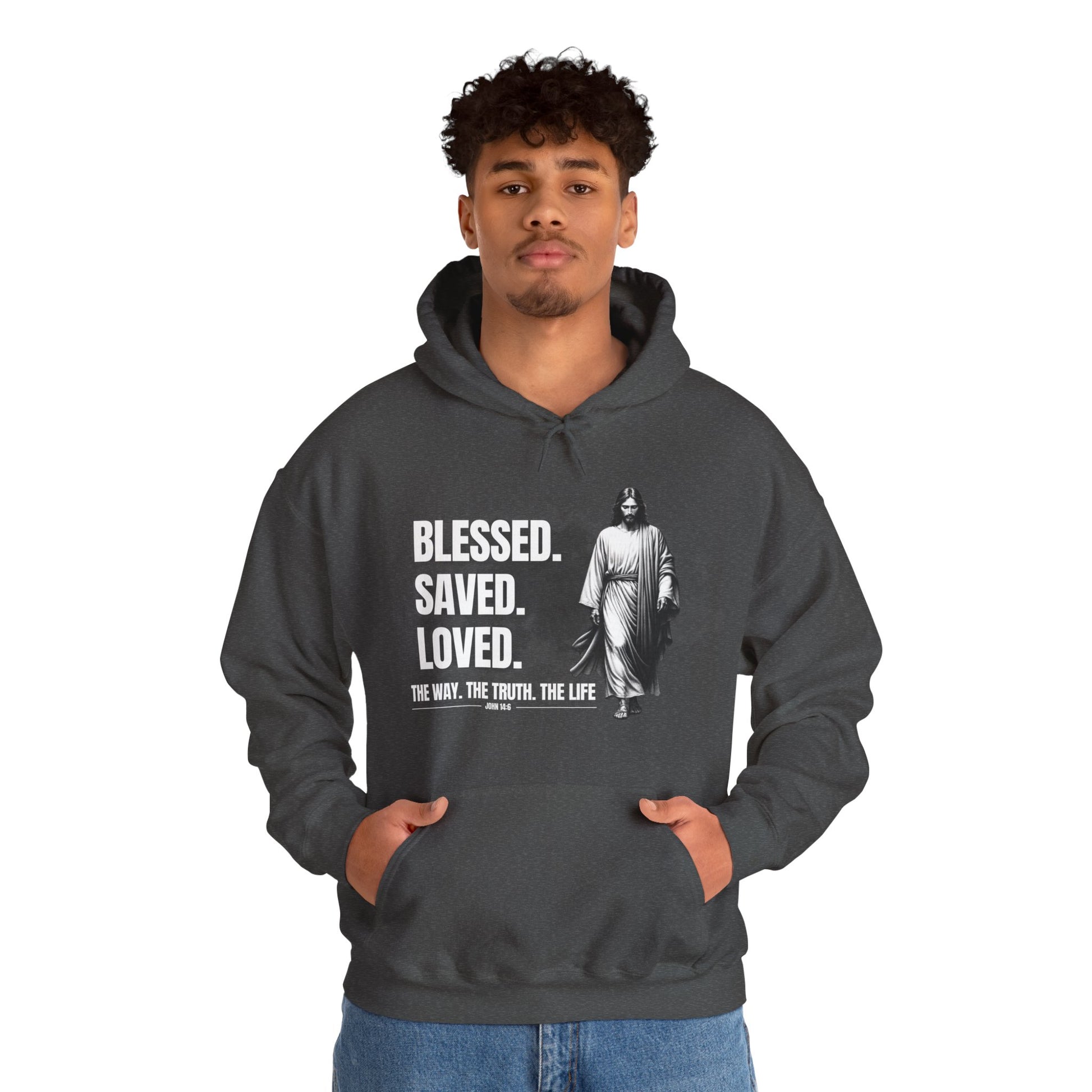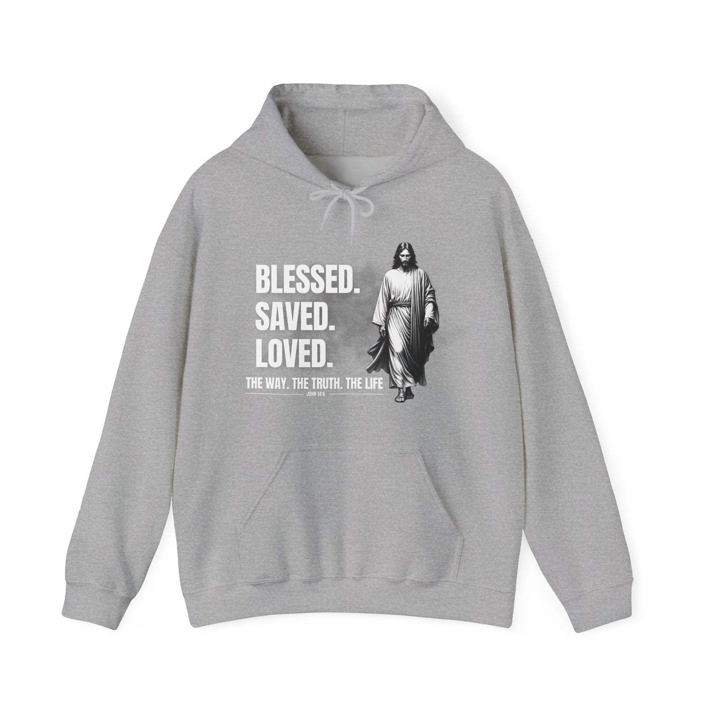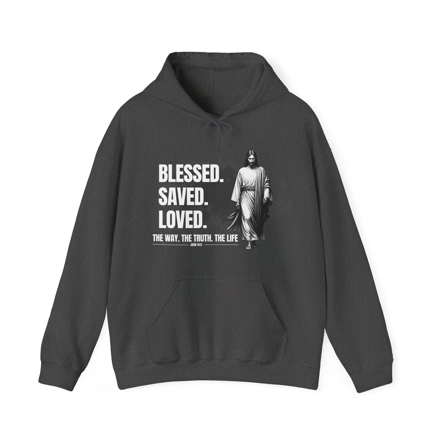 Blessed, Saved, Loved Hoodie - Unisex Heavy Blend Sweatshirt for Comfort and Faith Jesus