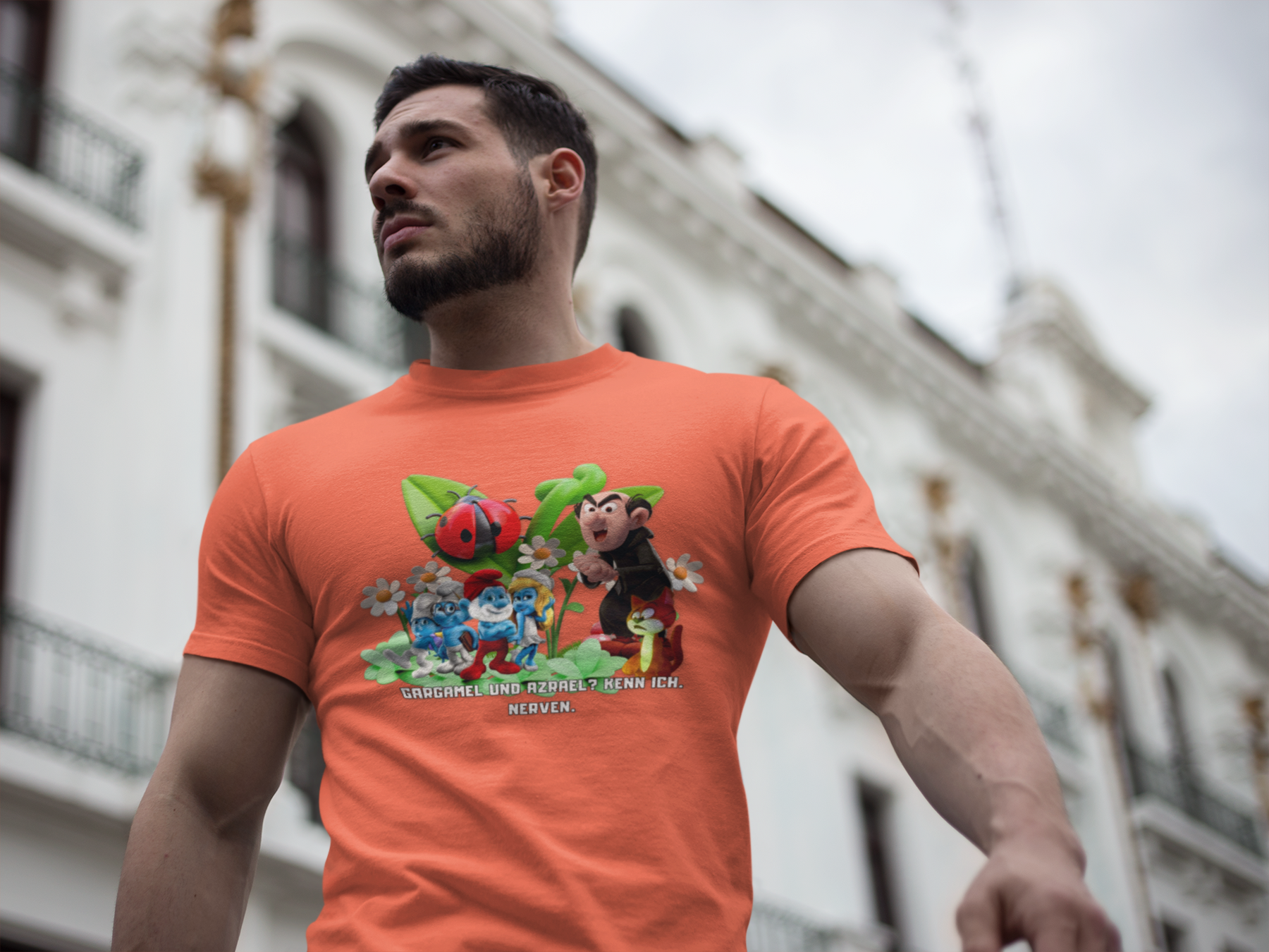 🔵 🇩🇪 Schlümpfe T-Shirt – "Gargamel und Azrael? Kenn ich. Nerven."