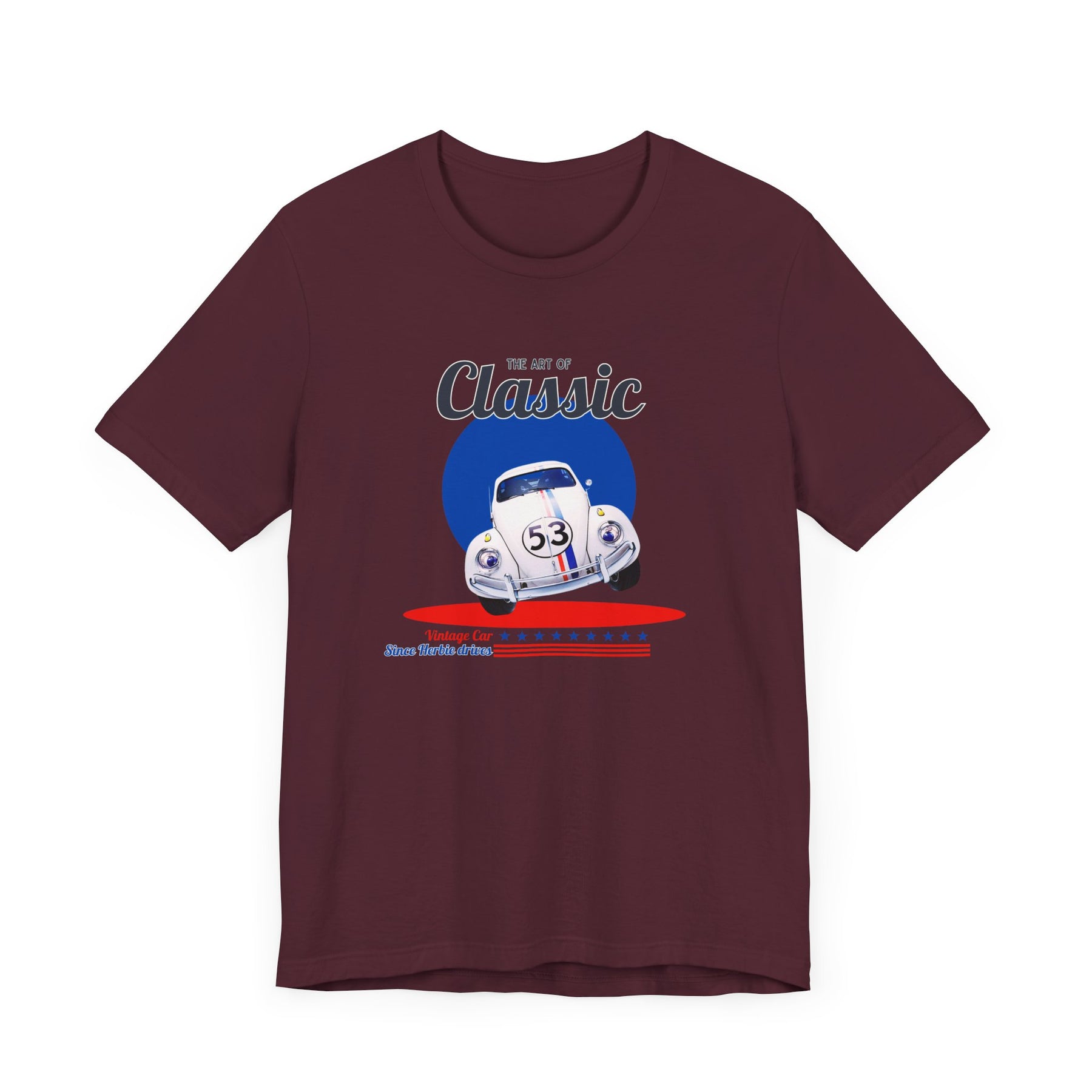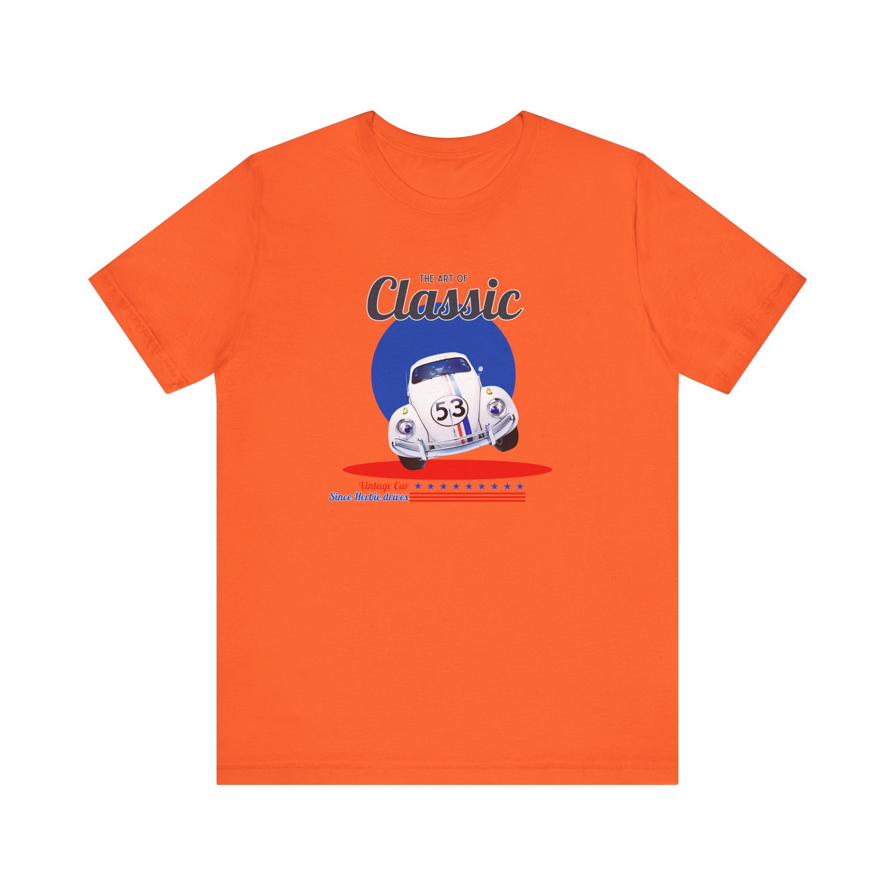 This design is a tribute to timeless legends – led by the most iconic 53 in car history: Herbie. With retro colors, an unmistakable look, and American vibes, this print brings pure nostalgia to your tee. For everyone who knows: real legends don't rust.