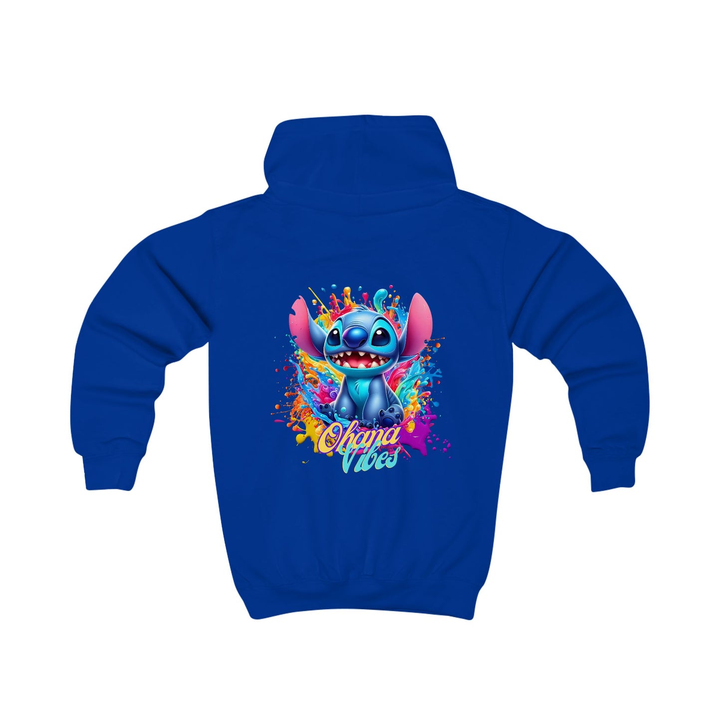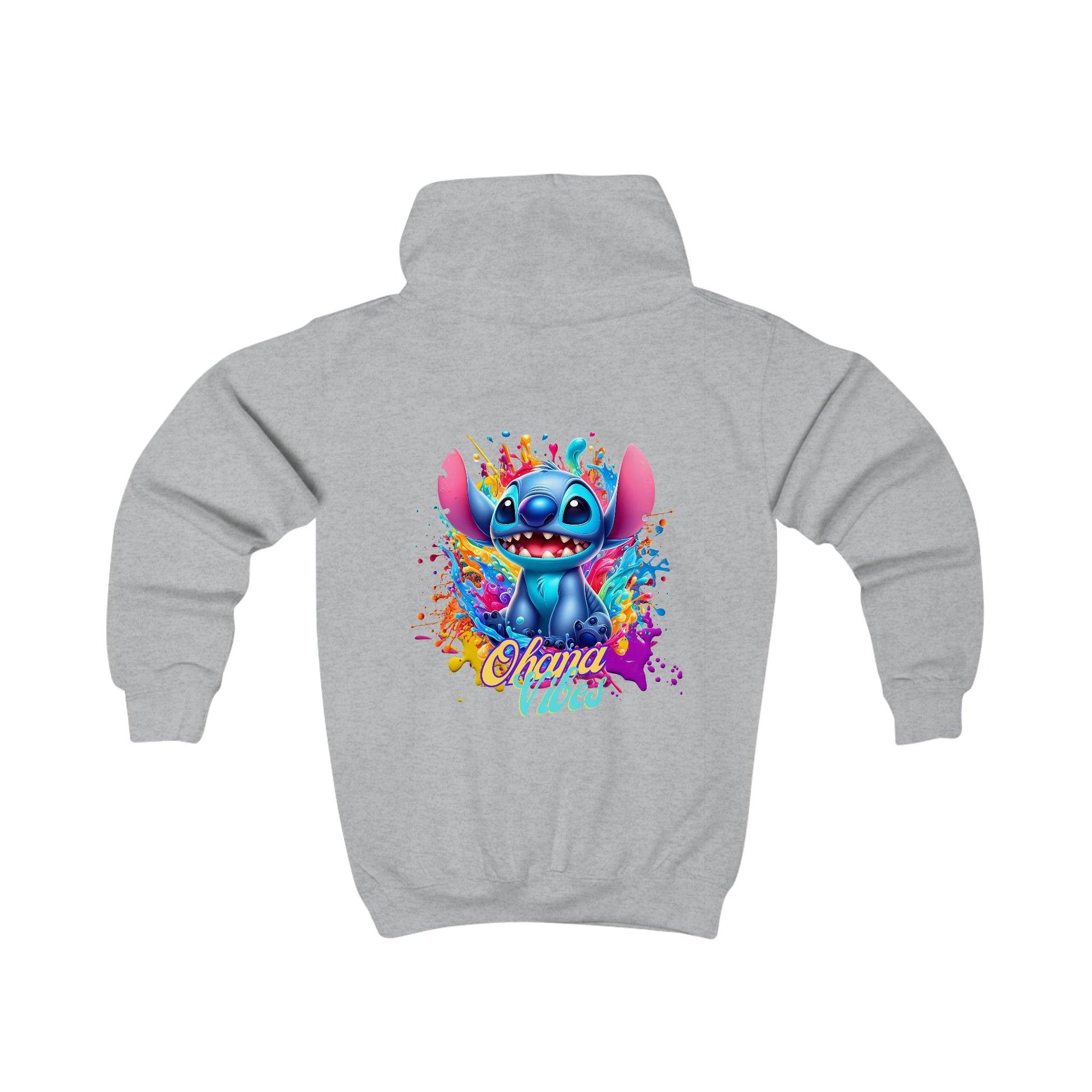 This design brings the cheeky, lovable Stitch in a vibrant color splash look to your tee or hoodie â available either in a heart frame as a symbol of pure love or with the âOhana Vibesâ text as a reminder that family (no matter how crazy) is everything.