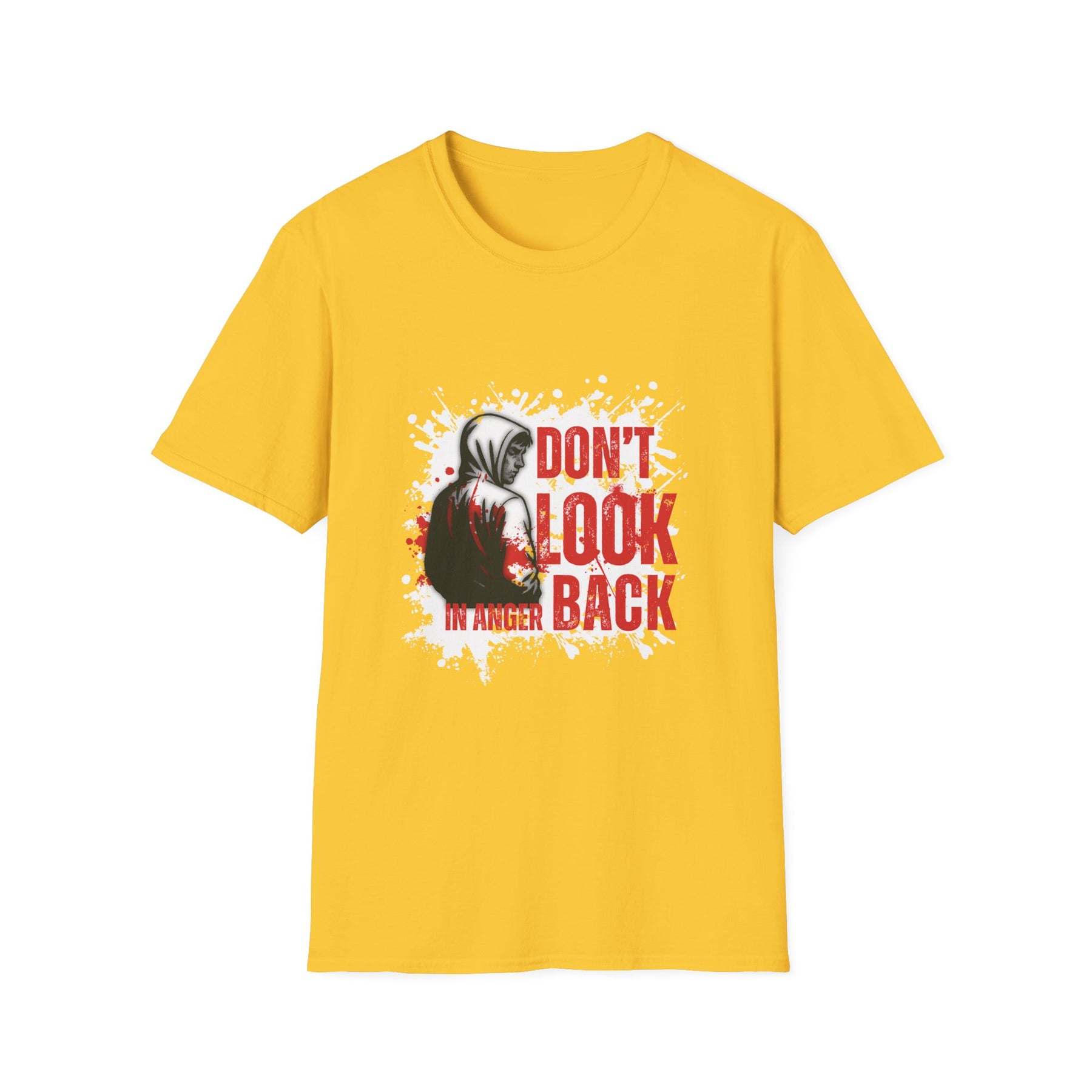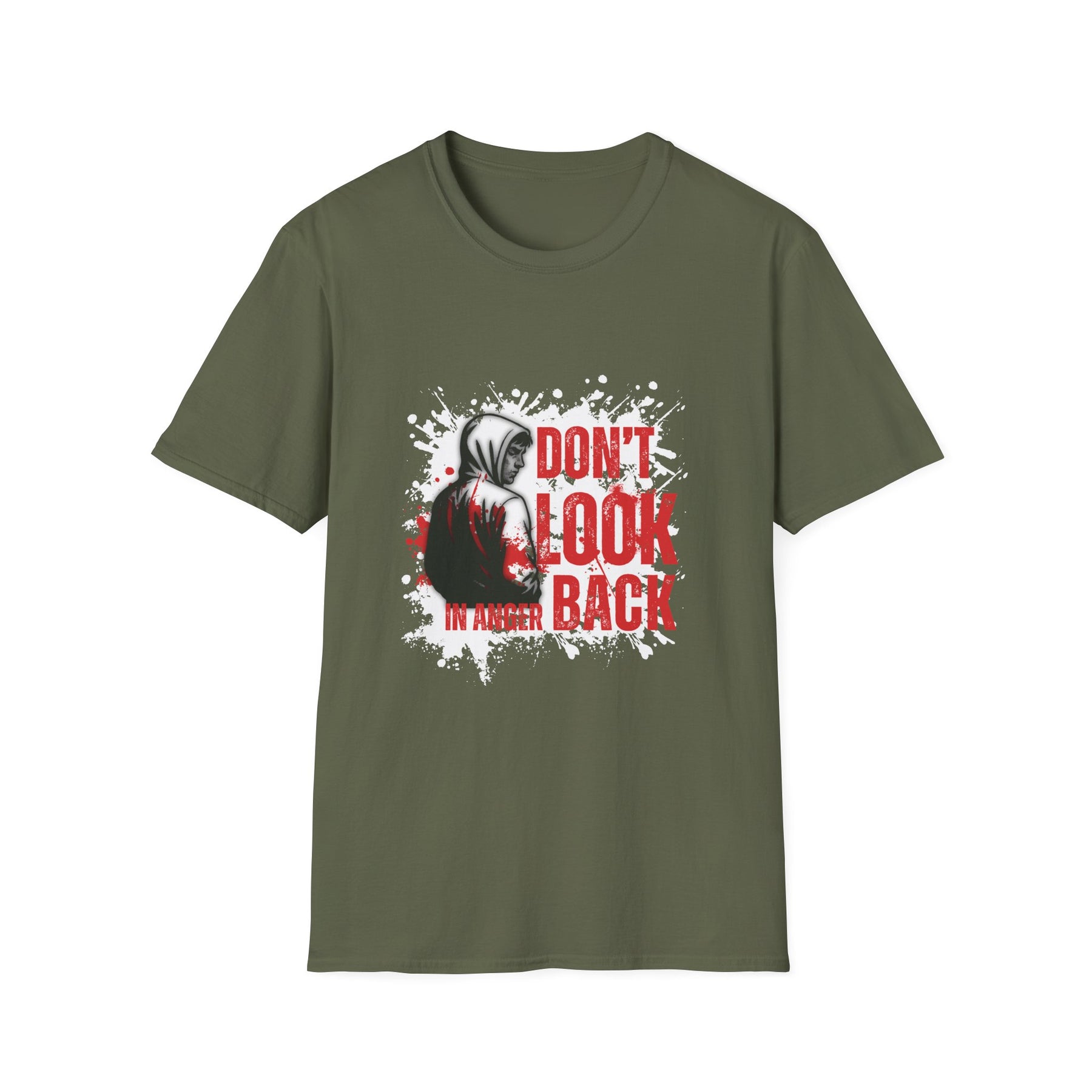 Inspired by the legendary Oasis hit "Don't Look Back in Anger," this design reminds us what really matters: not to look back with anger, but to move on with dignity.