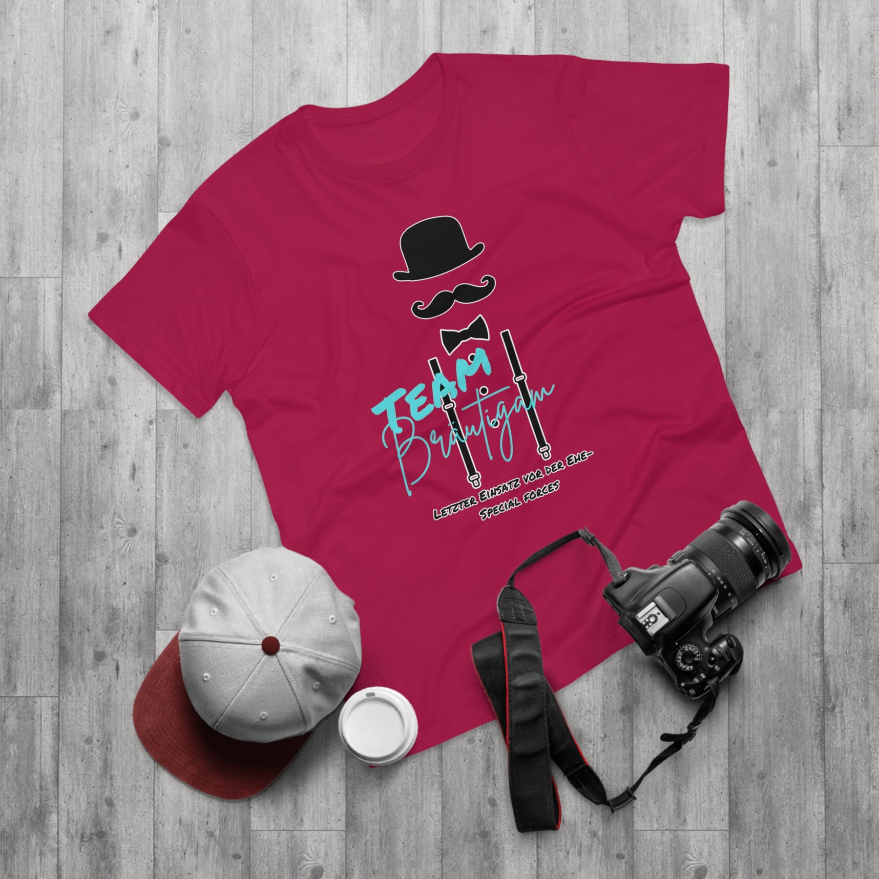 Here comes the groom team – better dressed than the evening is long. With sunglasses, a tuxedo, and a top hat motif, this shirt shows: We celebrate with style, attitude, and a touch of madness. Whether on a pub crawl, a party boat, or a night at the casino – this outfit is ready for anything (except sober).