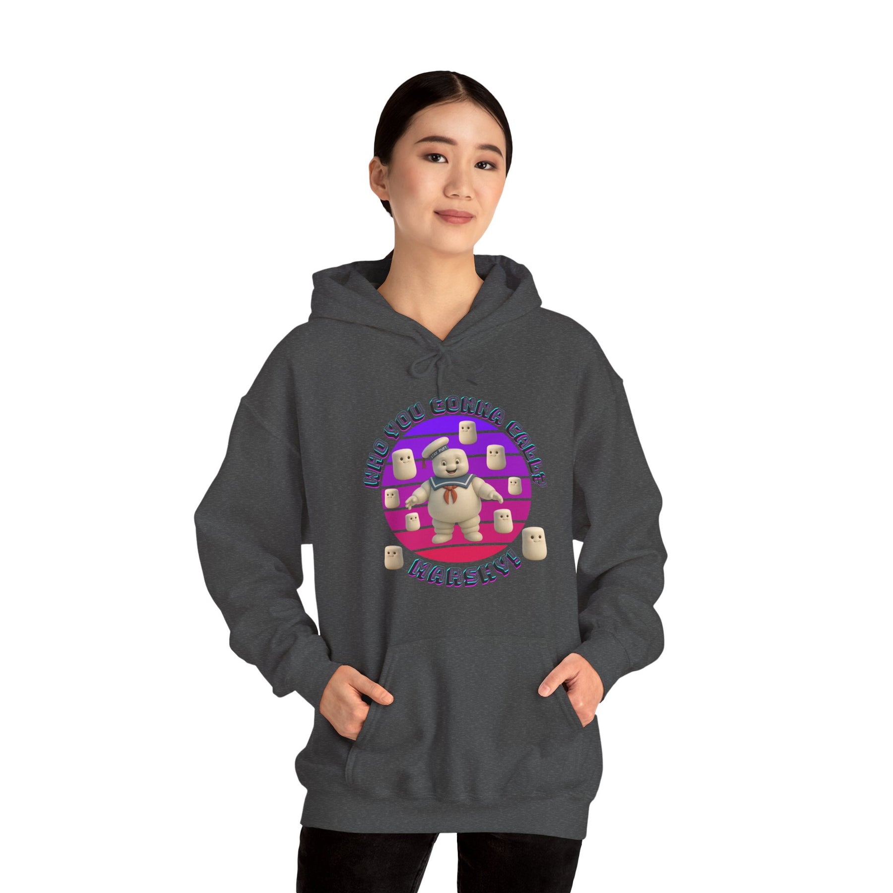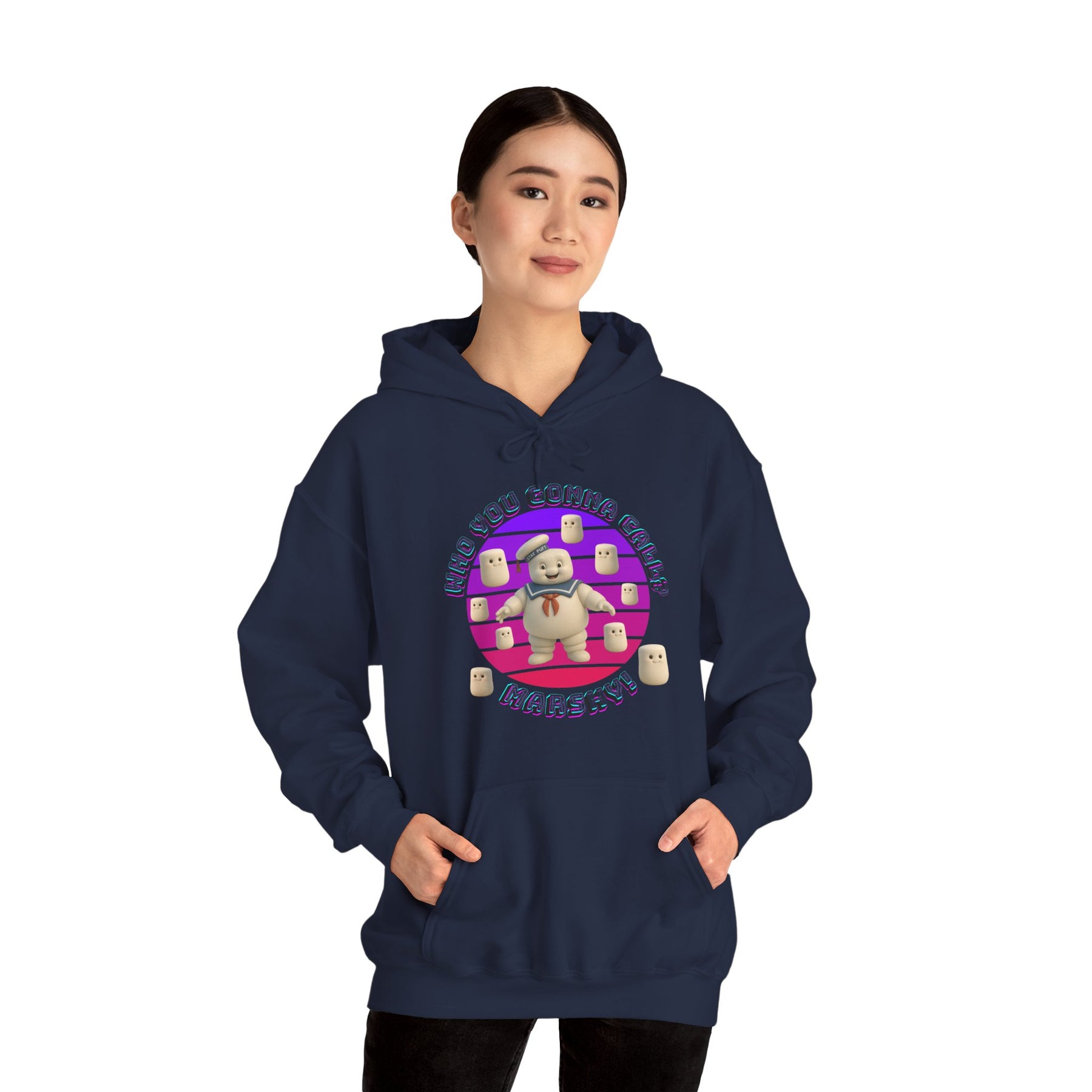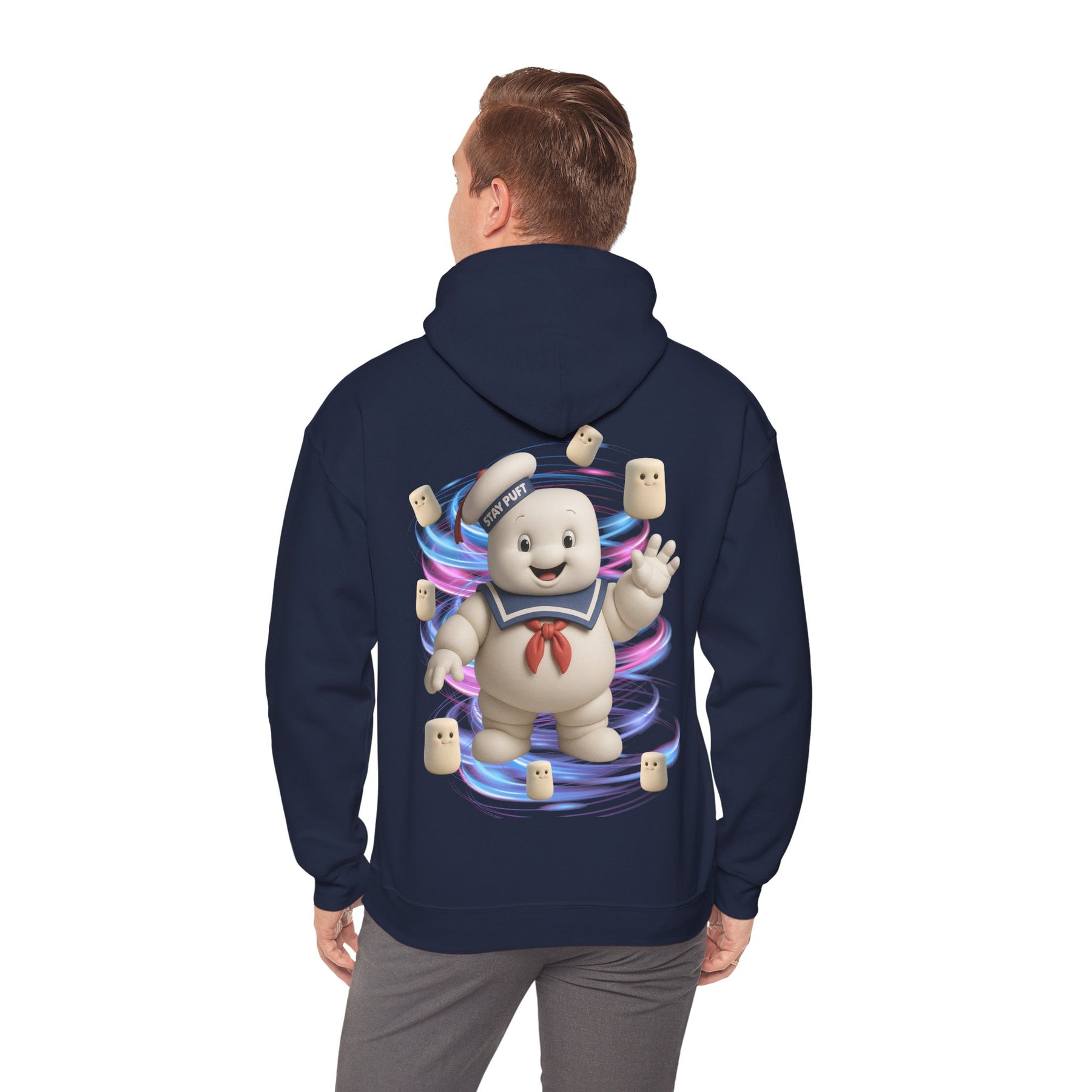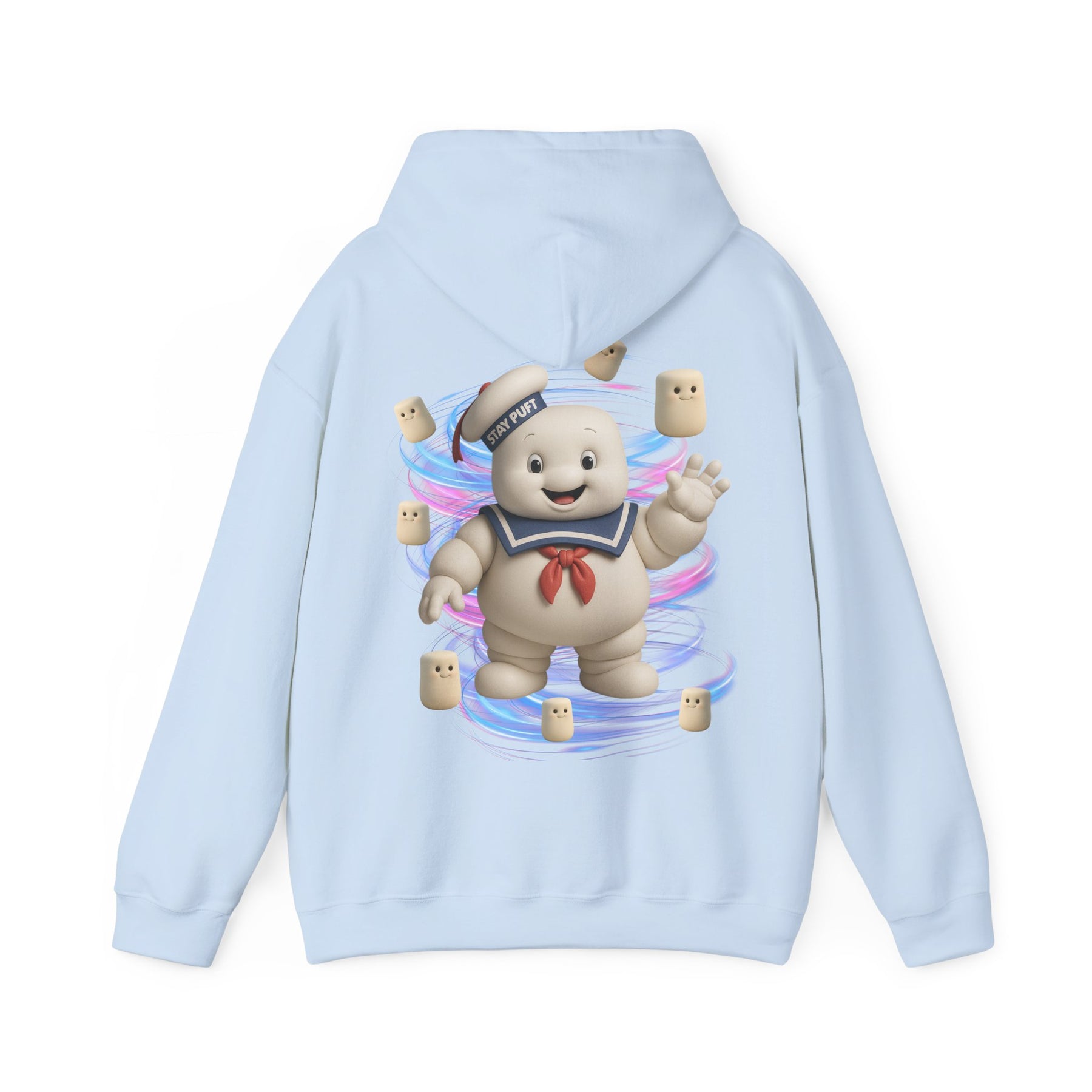 Der kultige Marshmallow Man aus Ghostbusters kommt in süßer Begleitung und mit einem Augenzwinkern direkt auf dein Hoodie.