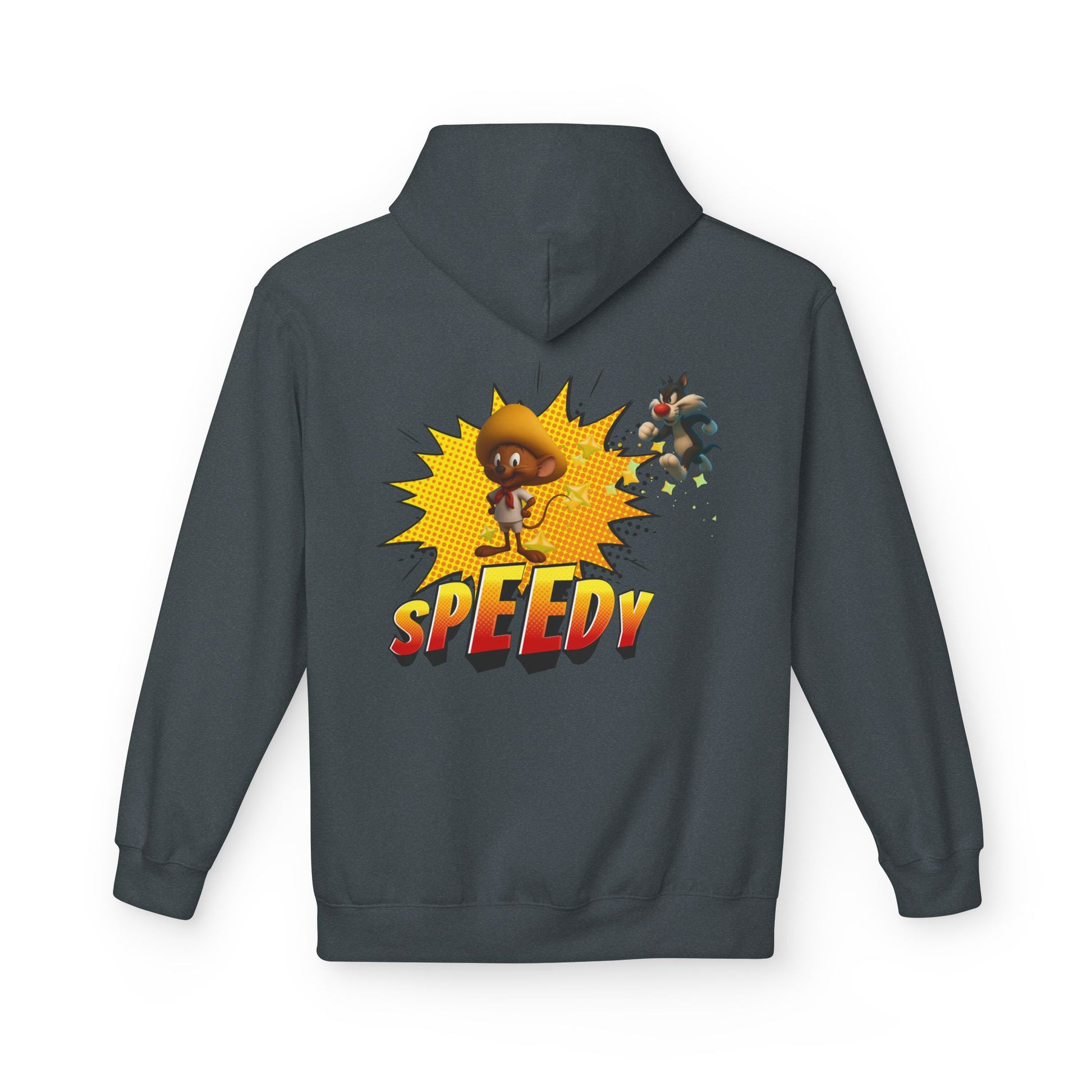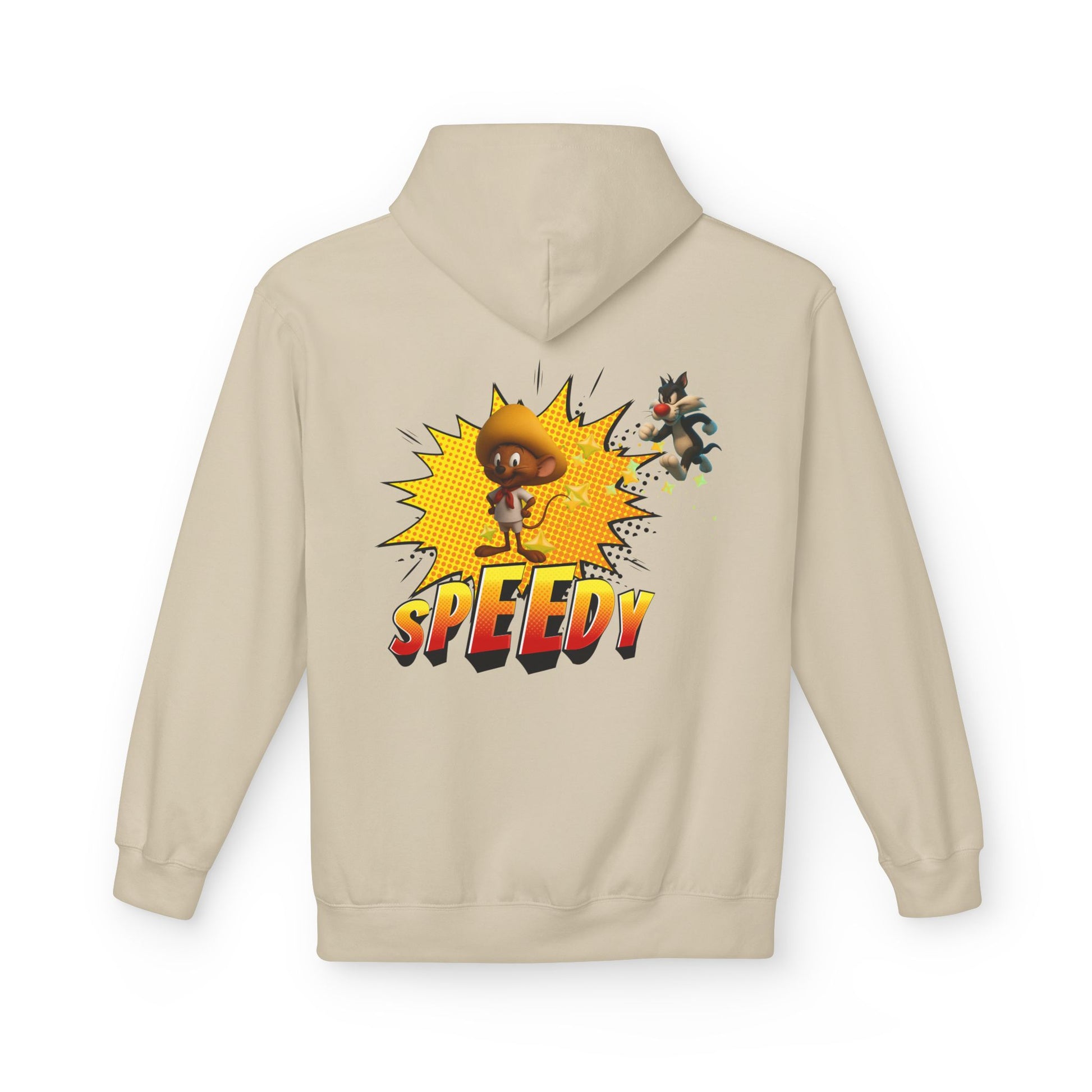This hoodie brings full cartoon energy to the streets: front features Speedy Gonzales in bold pop-art style with Sylvester hopelessly chasing him â back features his iconic battle cry âArriba, Arriba! Ăndale, Ăndale!â. Perfect for fans of speed, humor, and legendary cartoon moments.