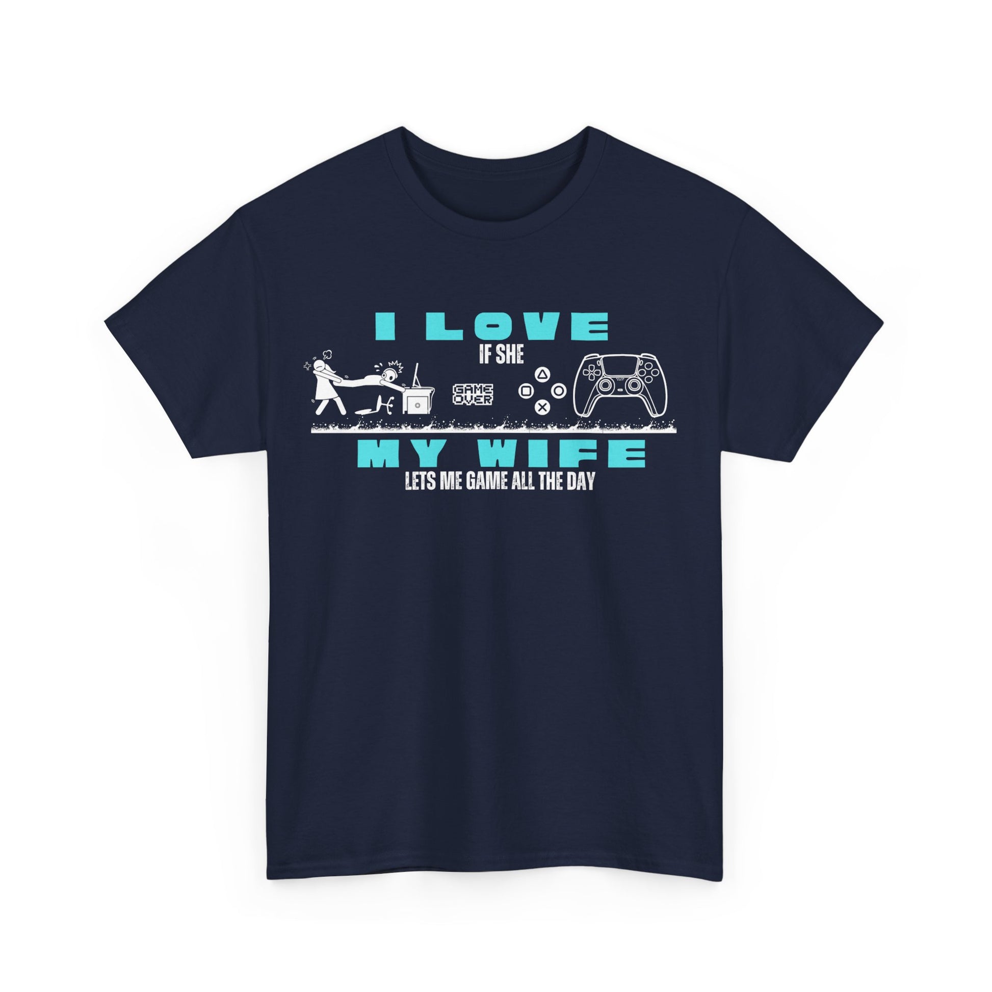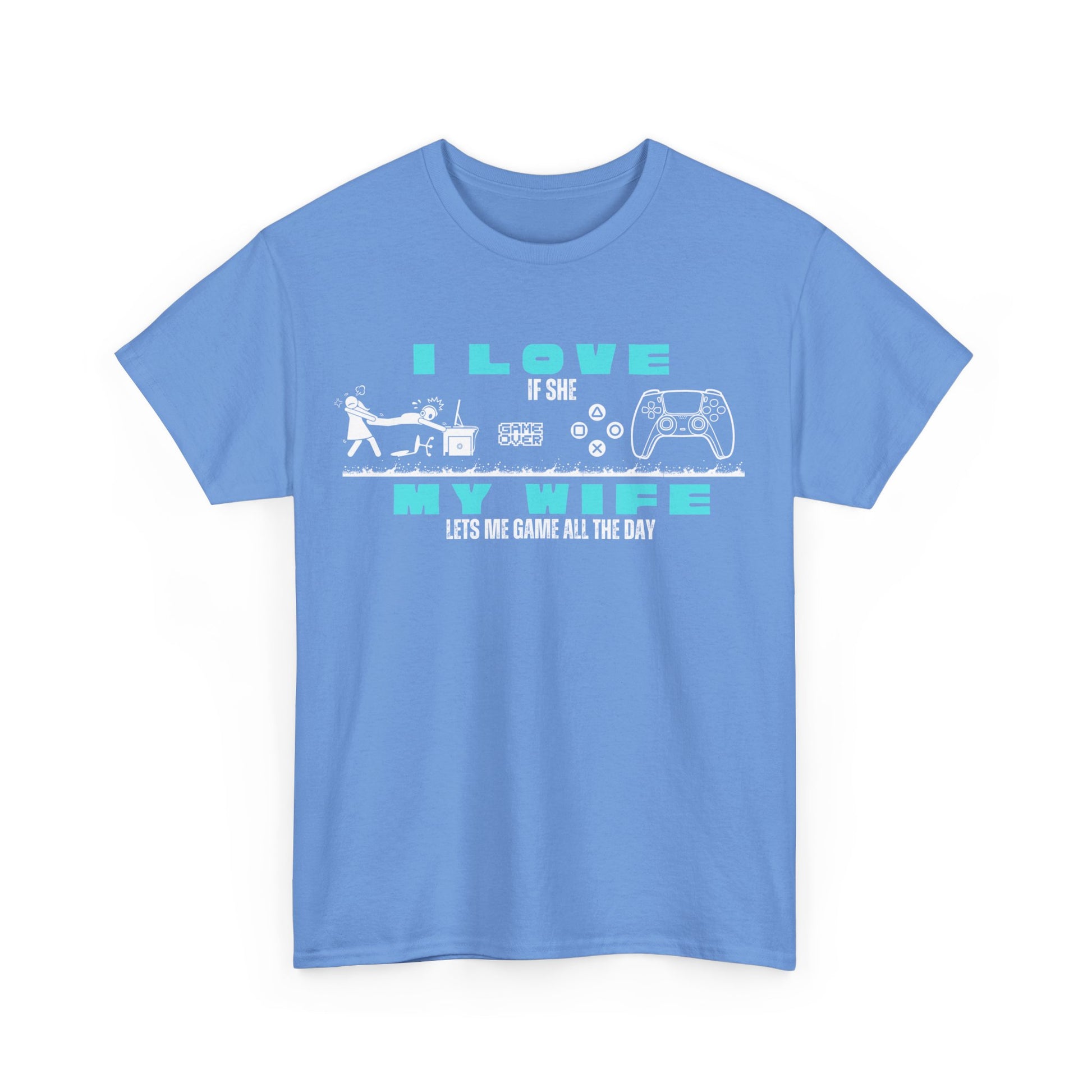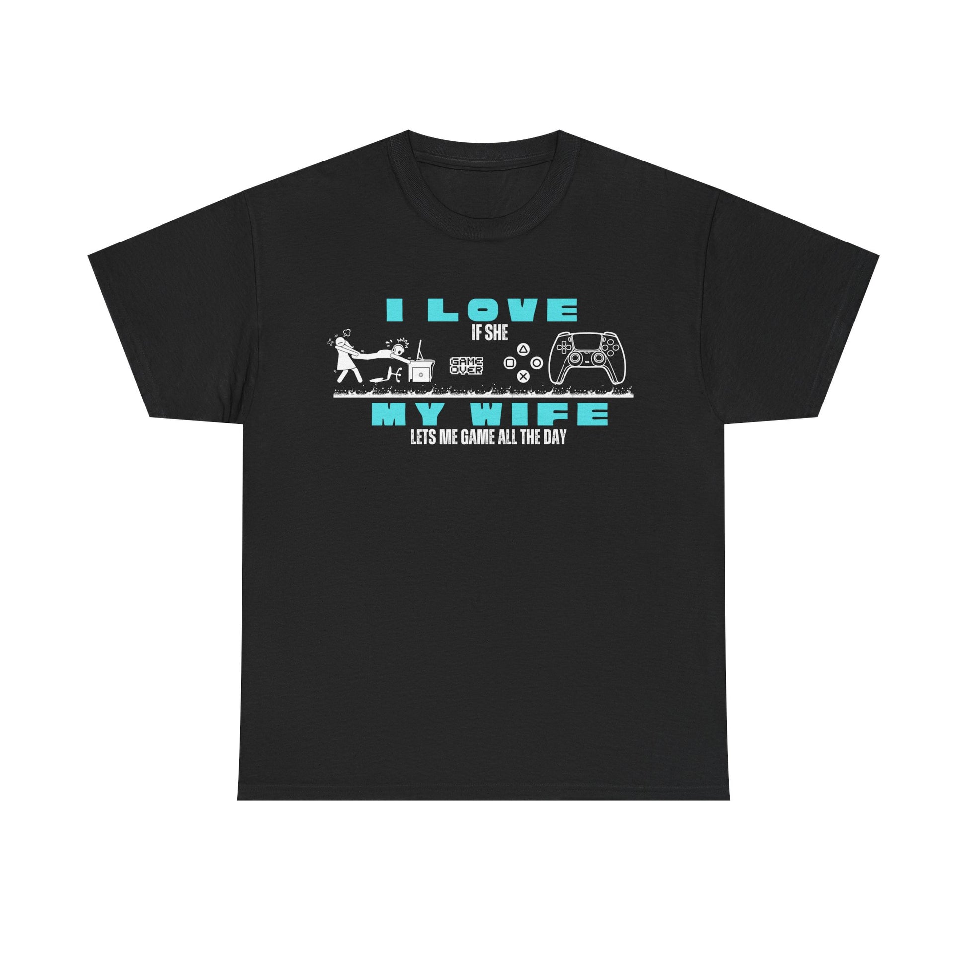đŹđ§ T-Shirt â I love my wife... when she lets me play games all day. đŽâ¤ď¸đď¸
