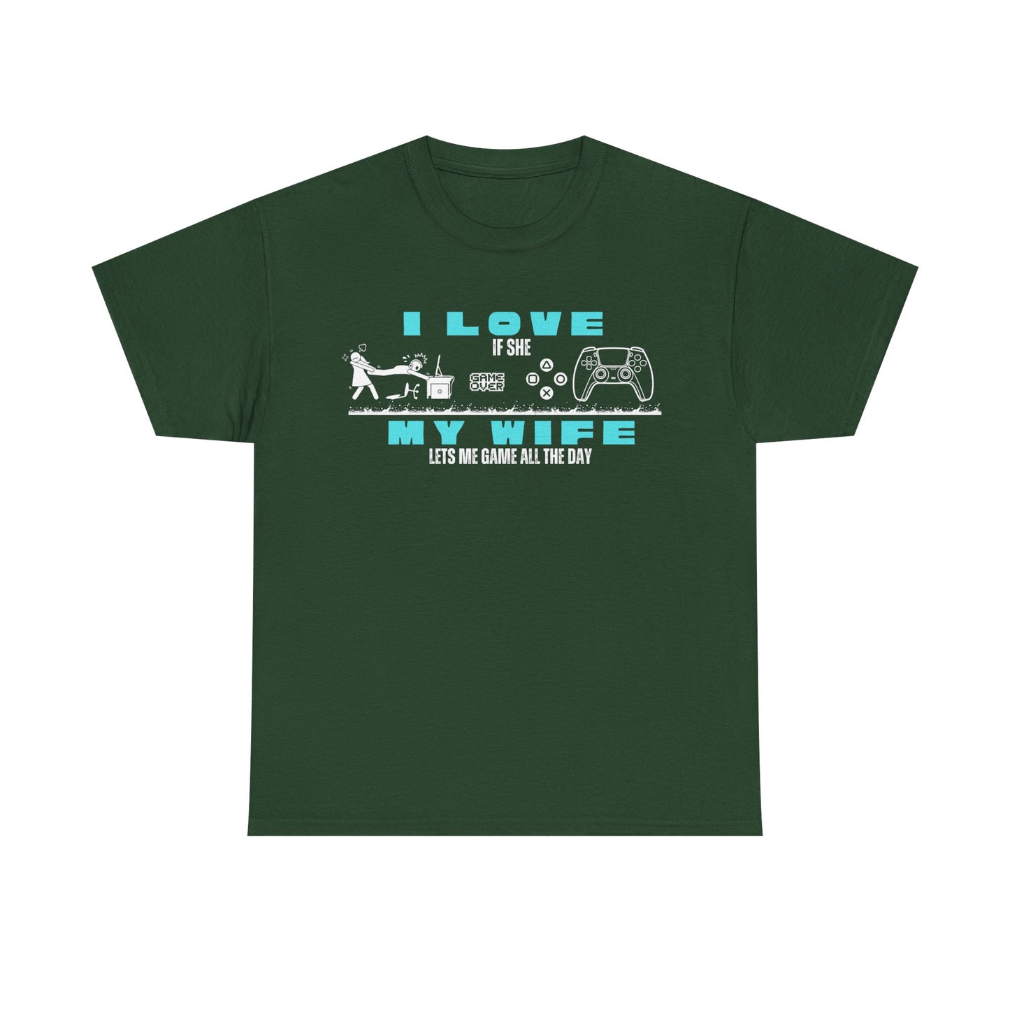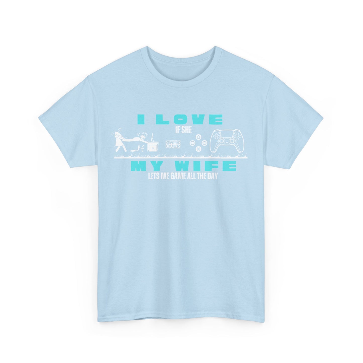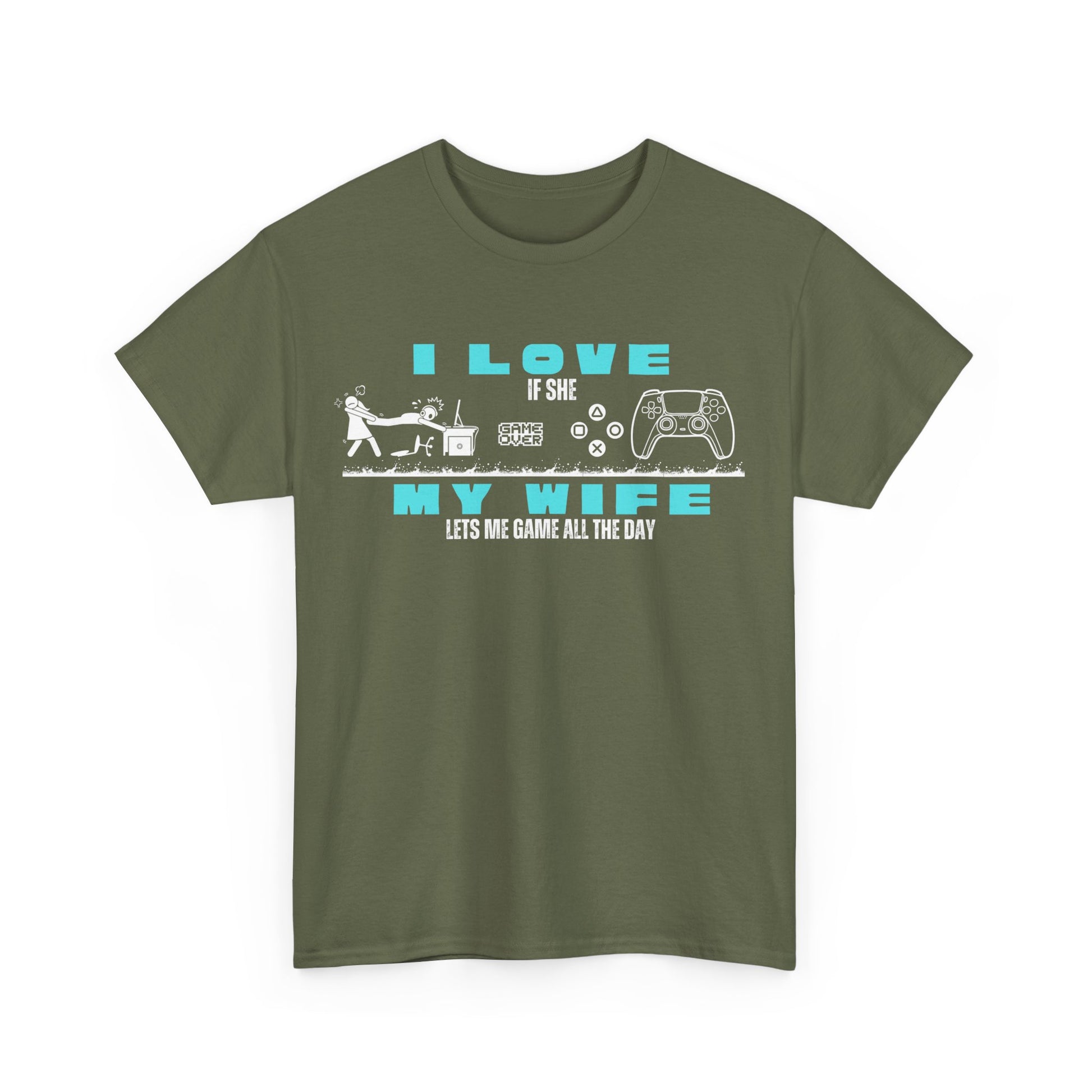 đŹđ§ T-Shirt â I love my wife... when she lets me play games all day. đŽâ¤ď¸đď¸