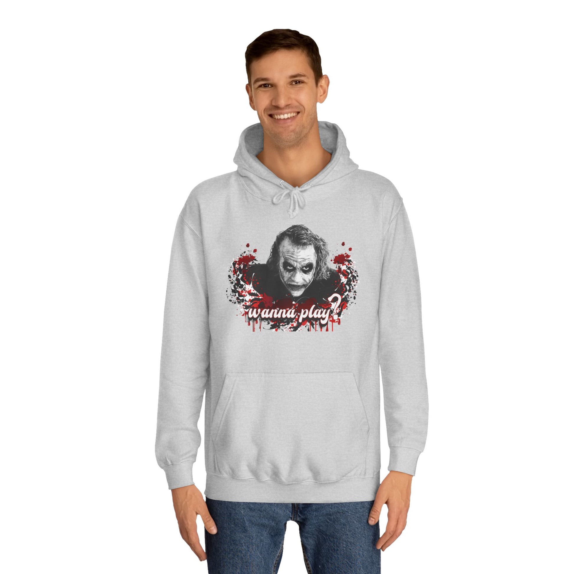 This design isn't for the faint-hearted. With the intense Joker stare, blood-red splatters, and the provocative âwanna play?â text, it walks the line between madness, art, and raw expression. Perfect for those who embrace chaos â or wear it with flair.