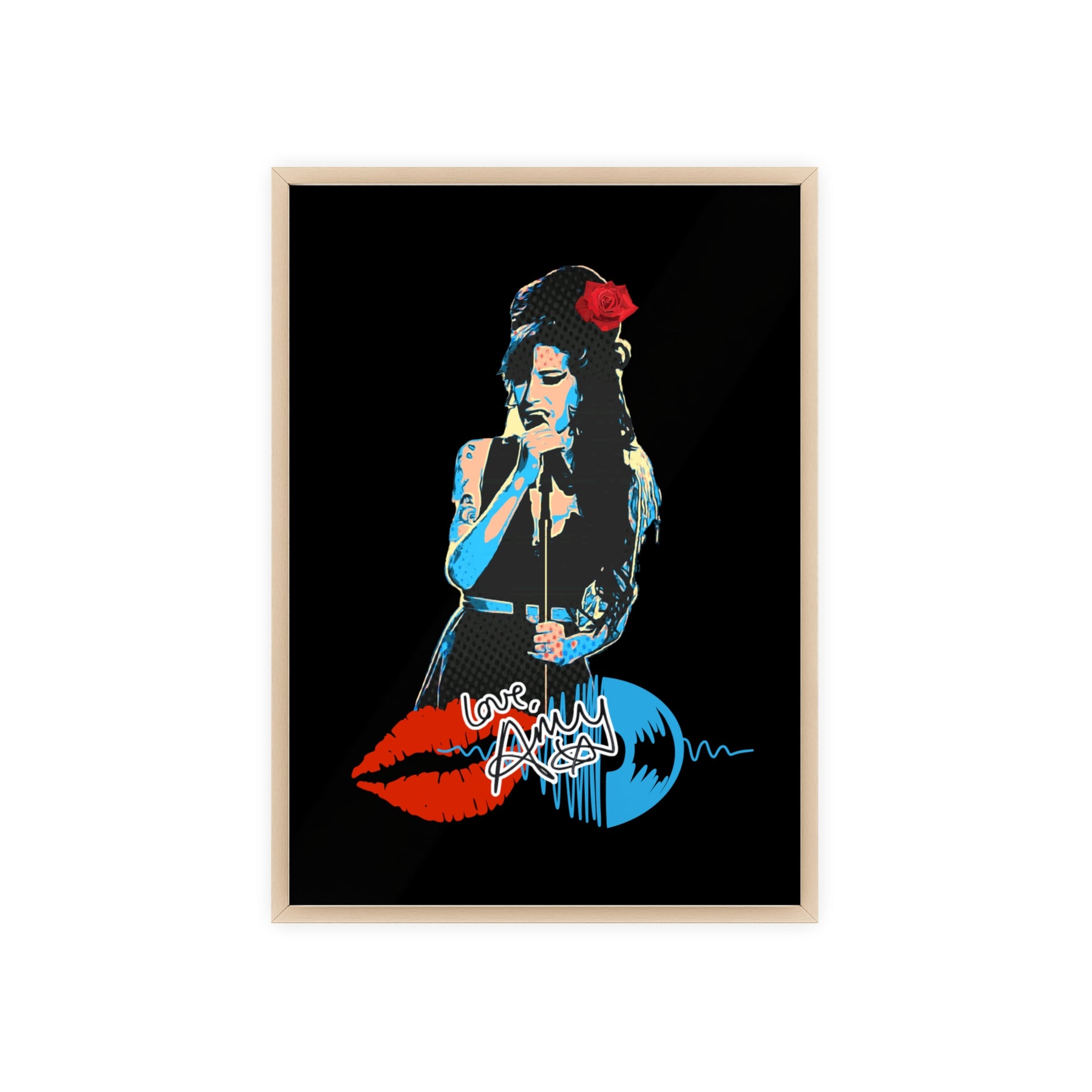 Love Amy Winehouse Poster with Wooden Frame - Vibrant Wall Art for Music Lovers