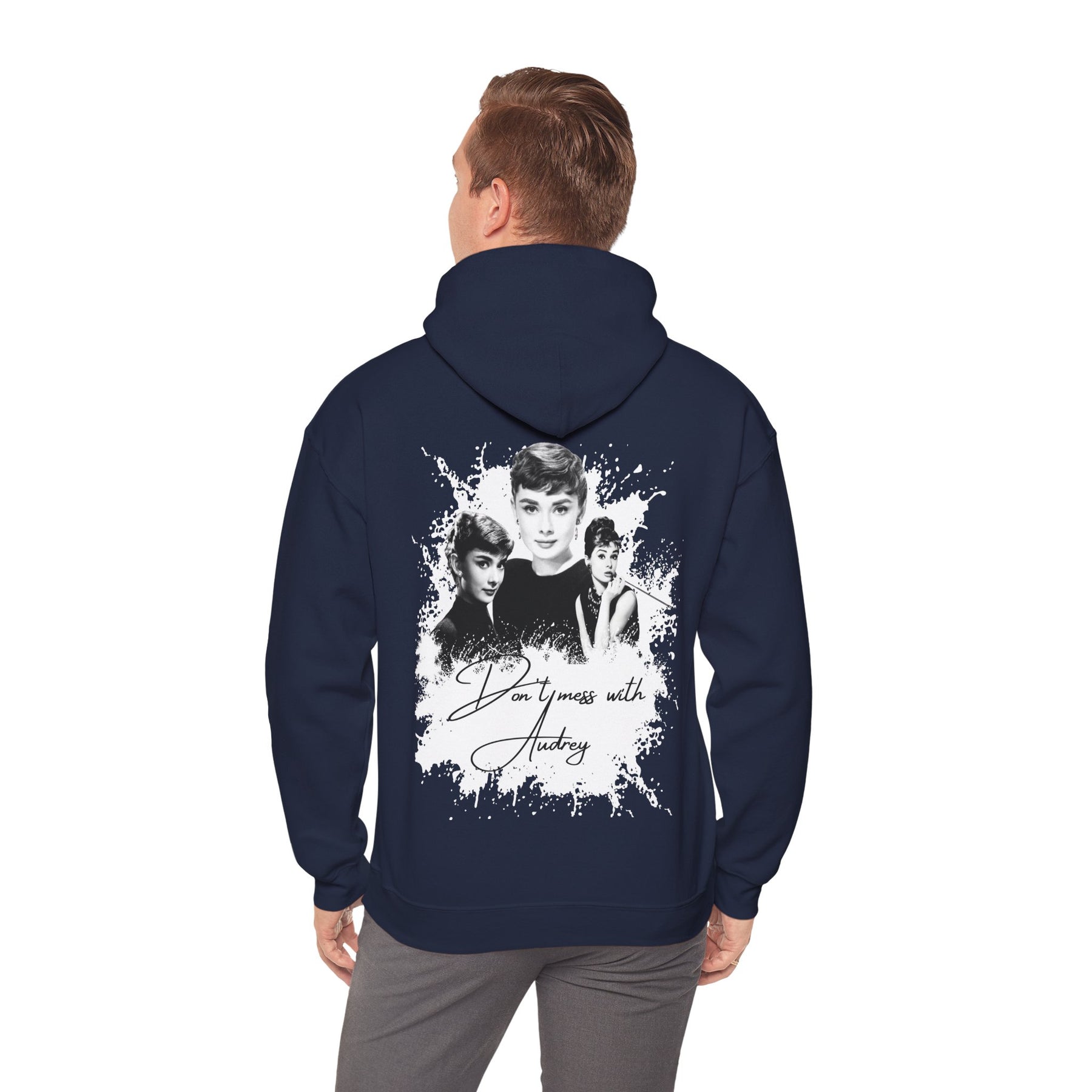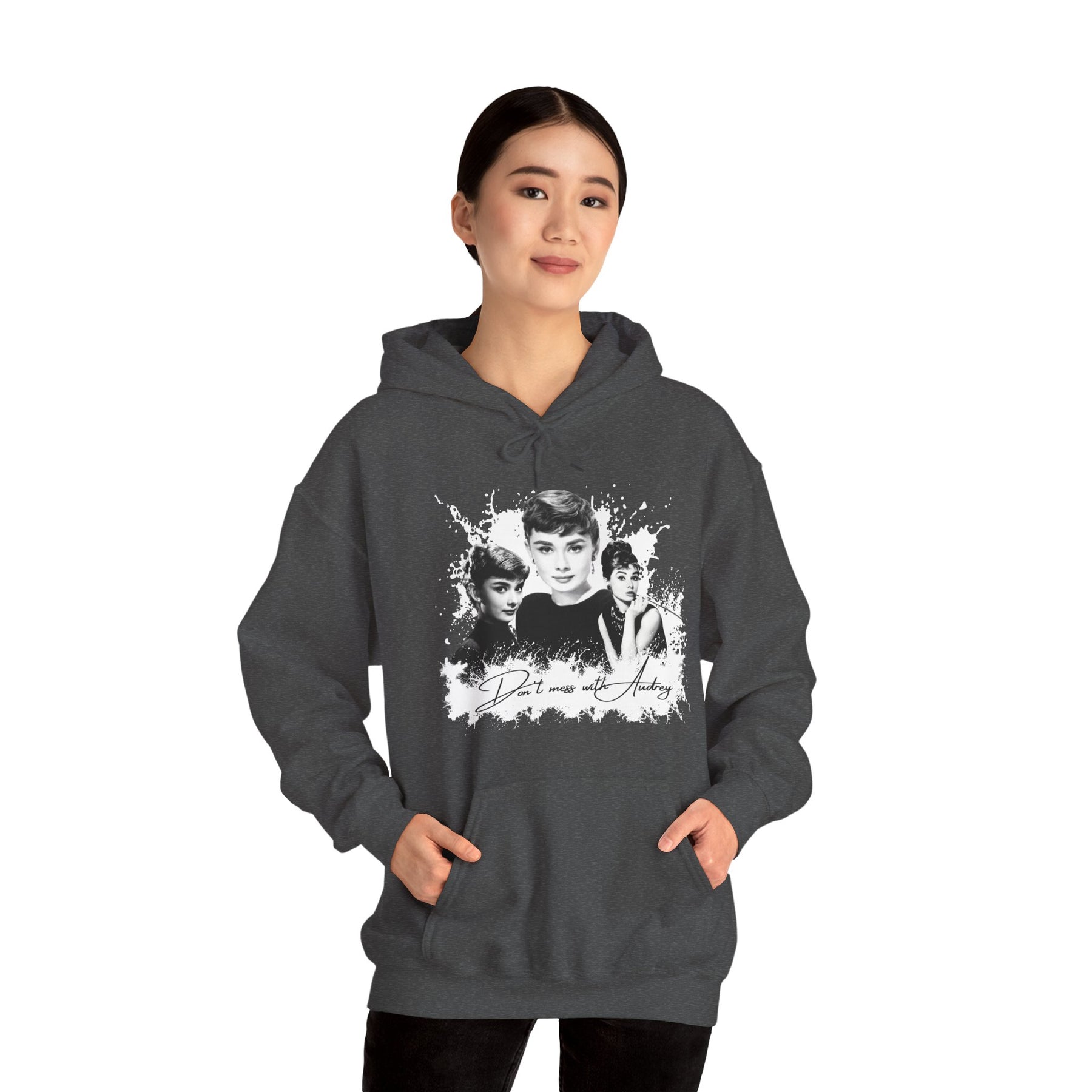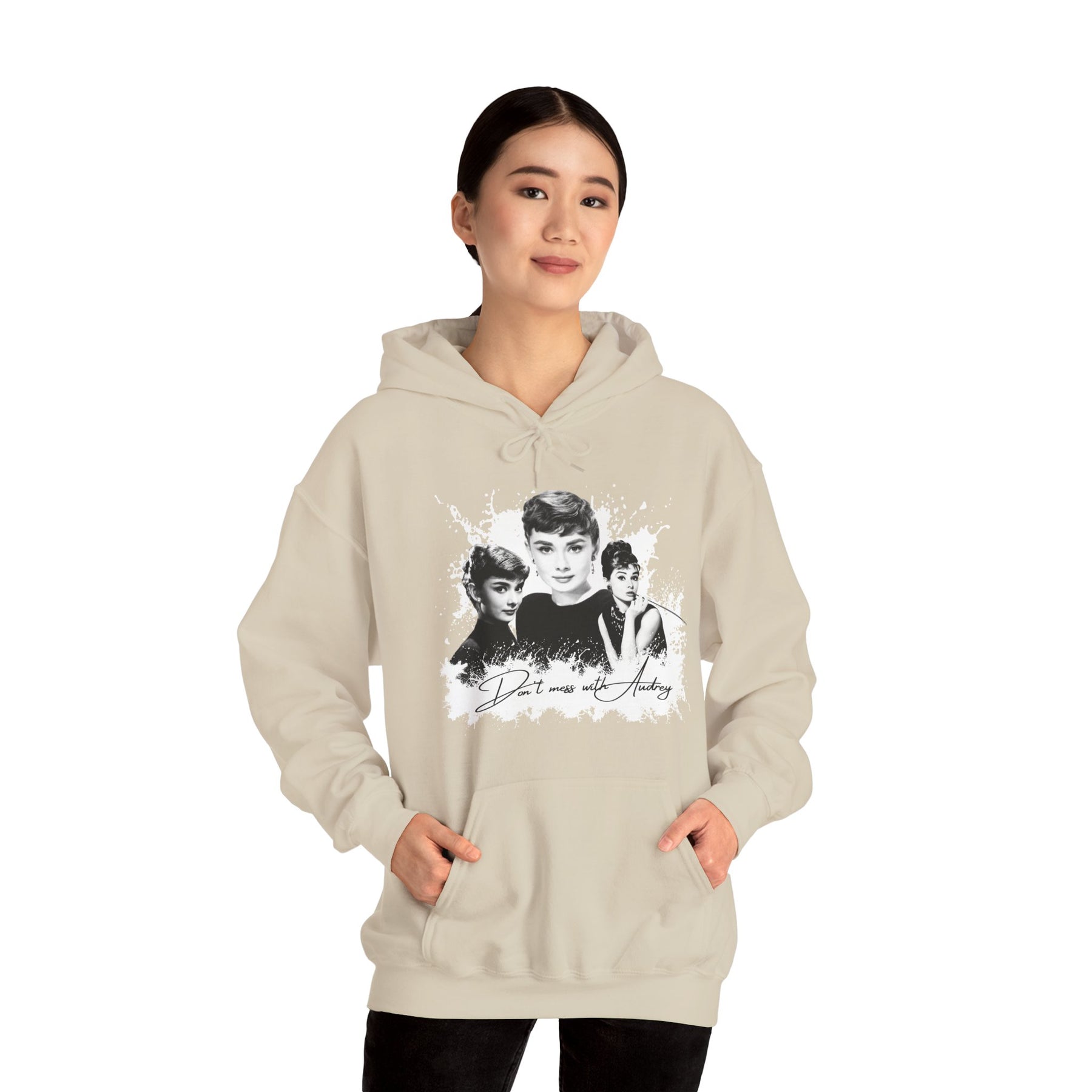 Classy. Cozy. Unapologetic. This Audrey Hepburn-inspired hoodie says what others only think: “Don't mess with Audrey.” For those who know that true power doesn't shout – it sips espresso, holds its head high, and wears timeless style with a wink.