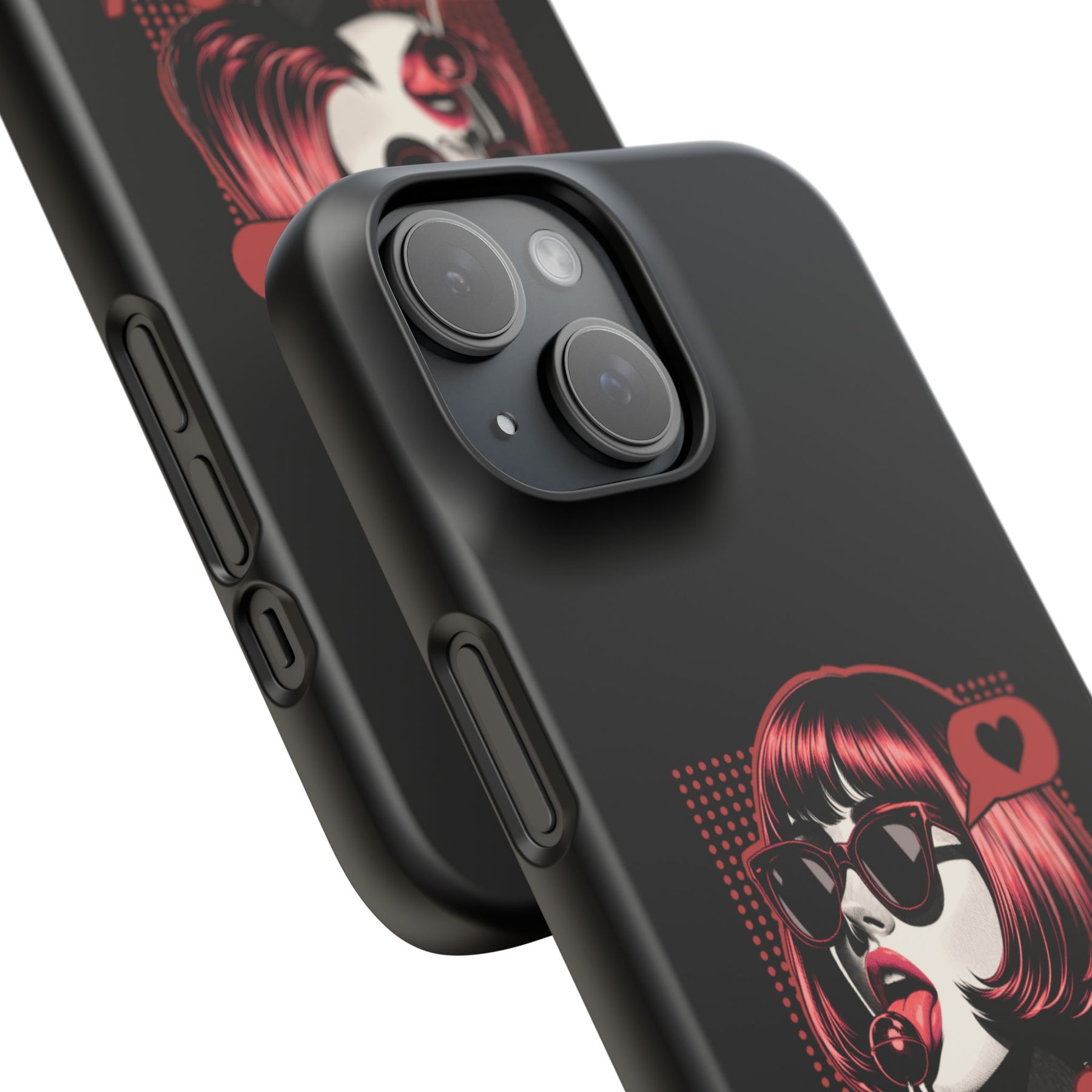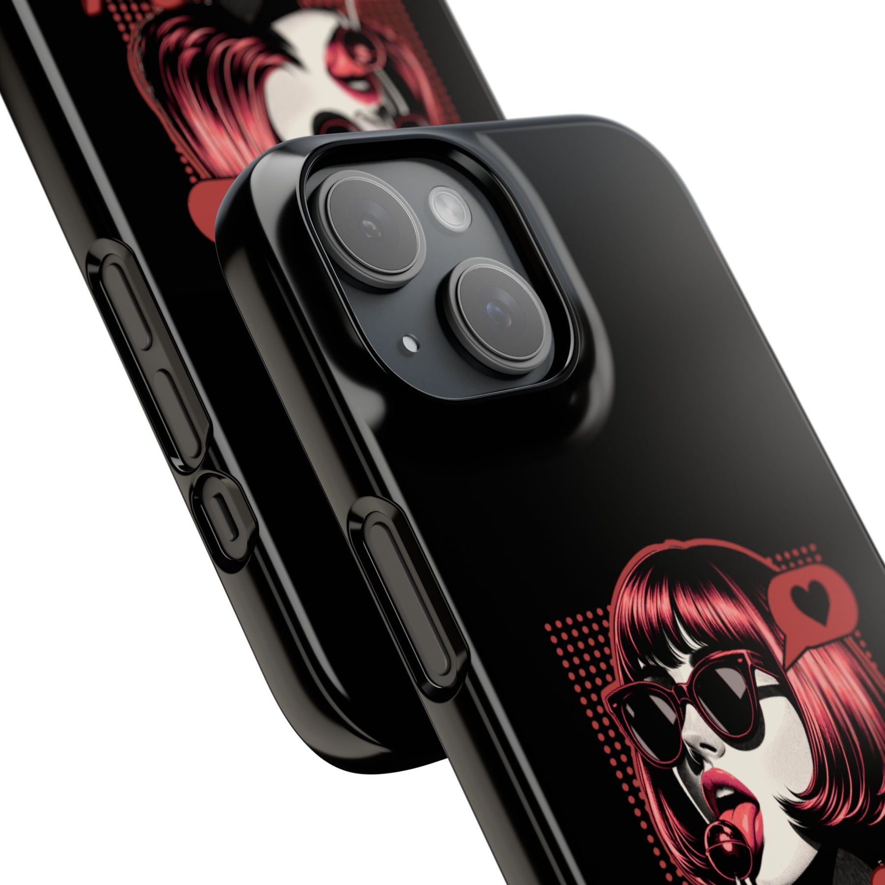 Pop art meets sass: This case is made for fierce women with a love for all things retro. Featuring a bold bob, shades, and a cherry lollipop – it adds confidence and vintage flair to your everyday. For the girls who know what they want (and how to style it).