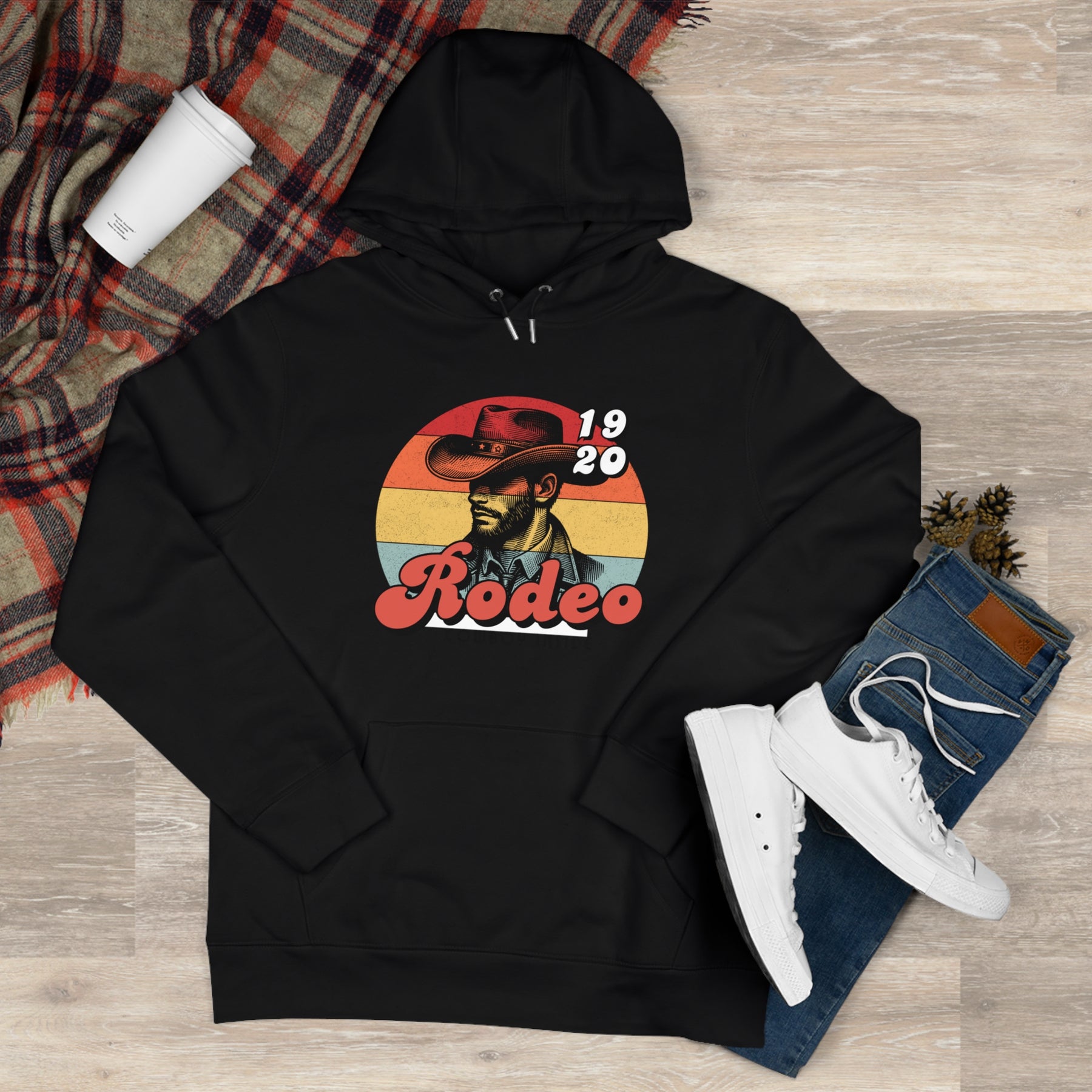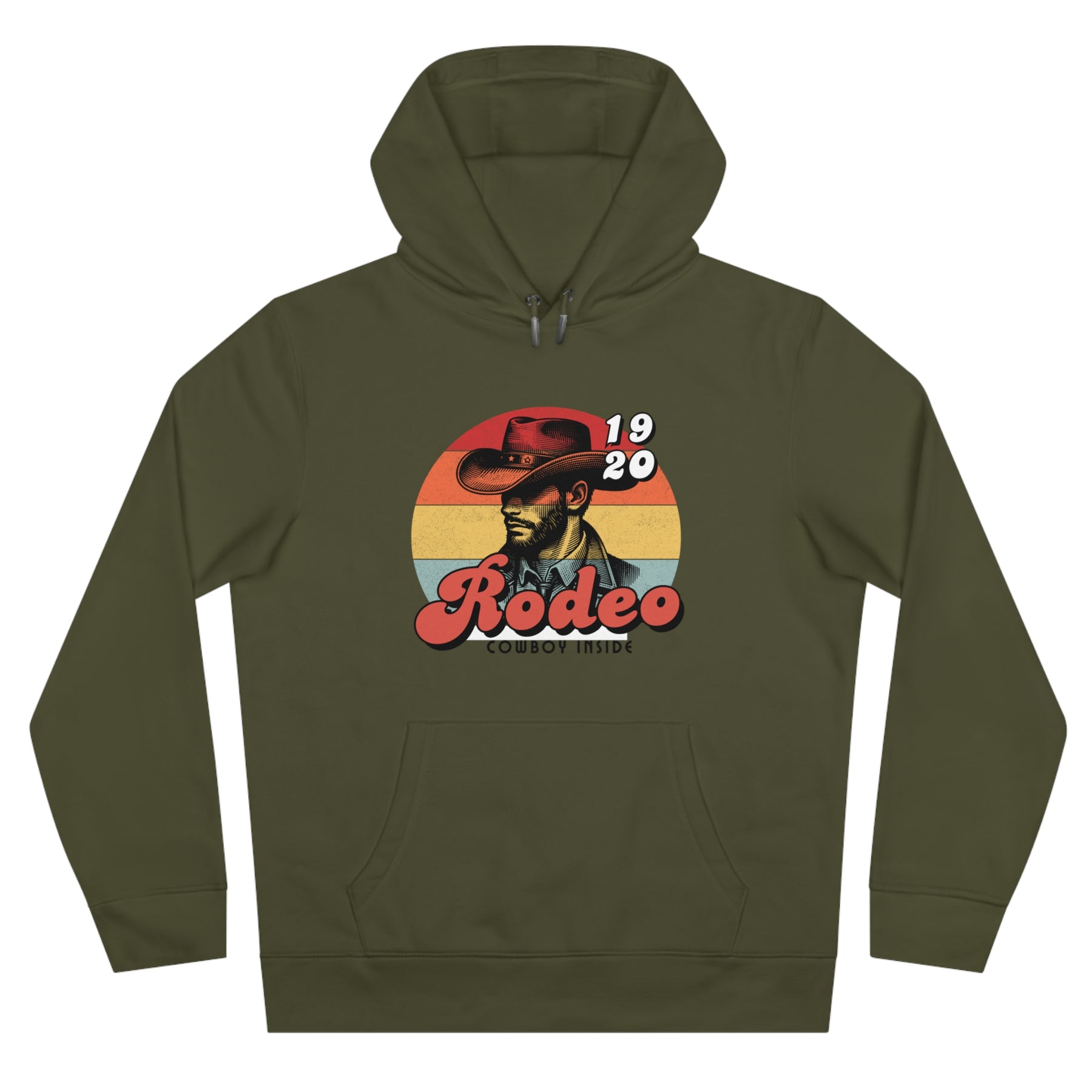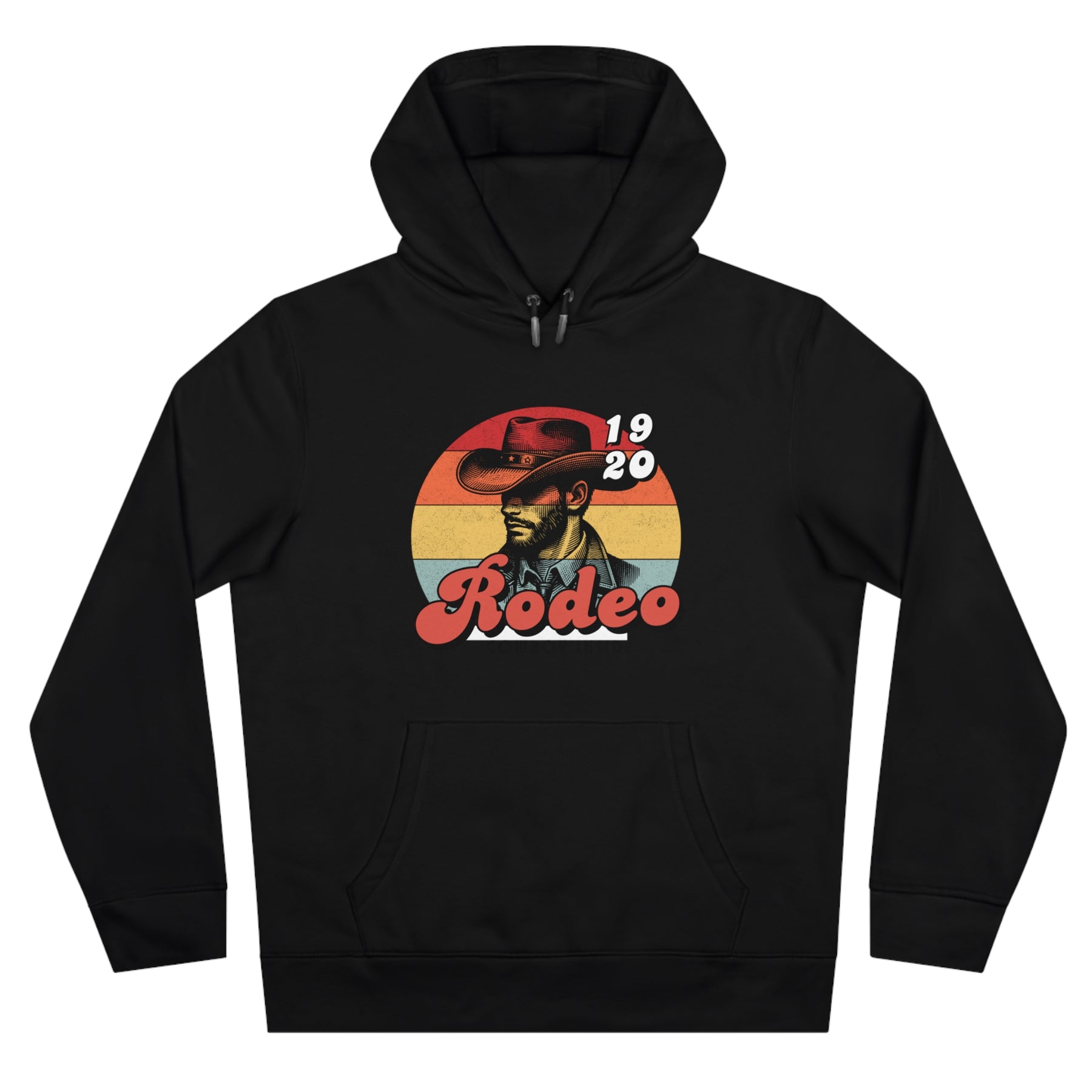 Front print: vintage or bold cowboy with iconic hat