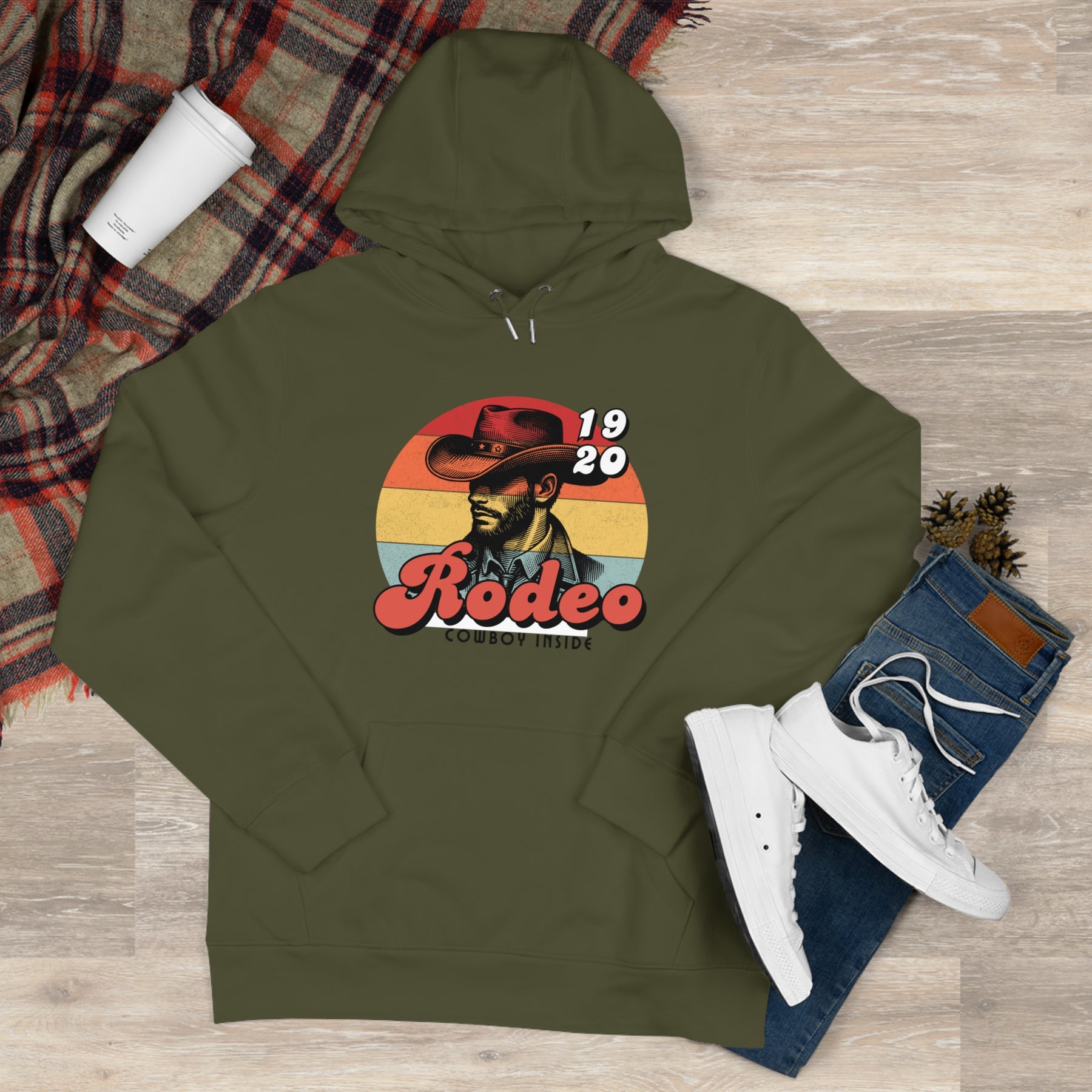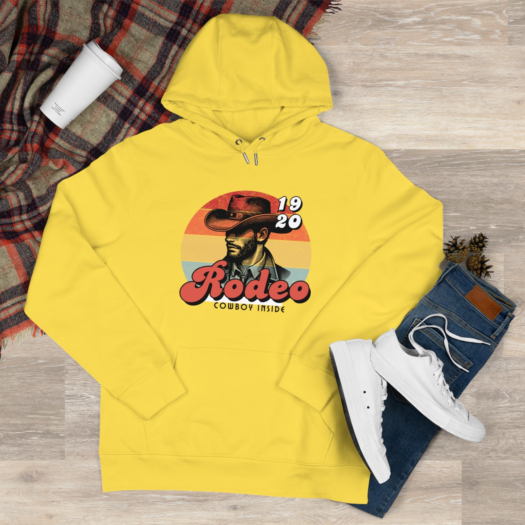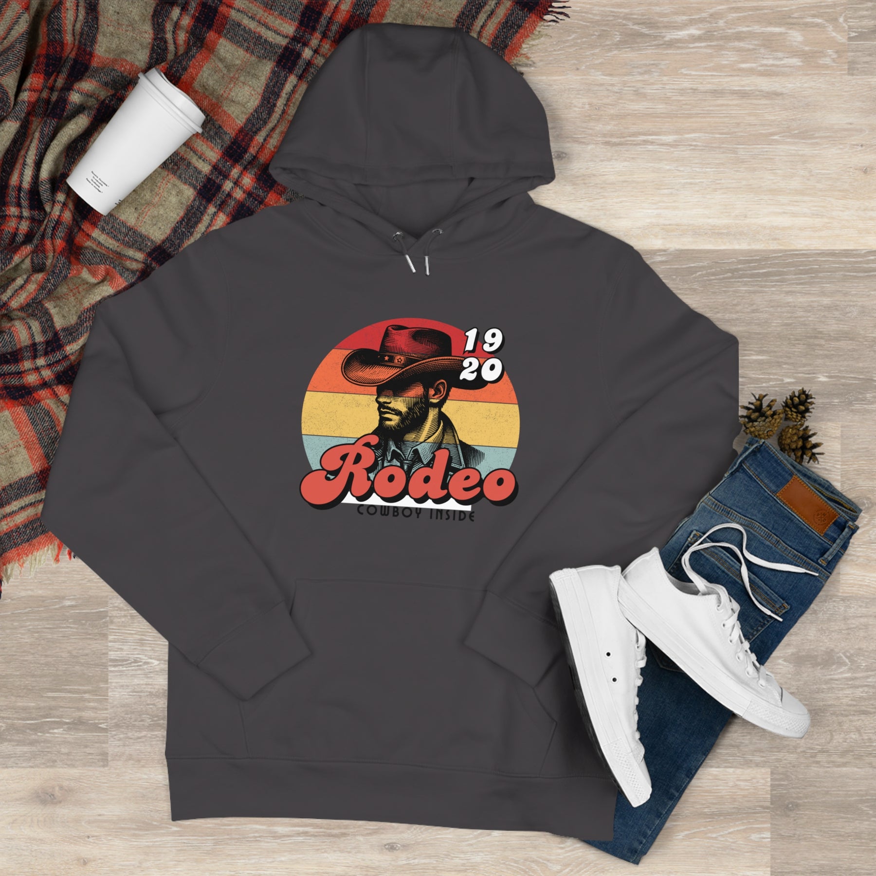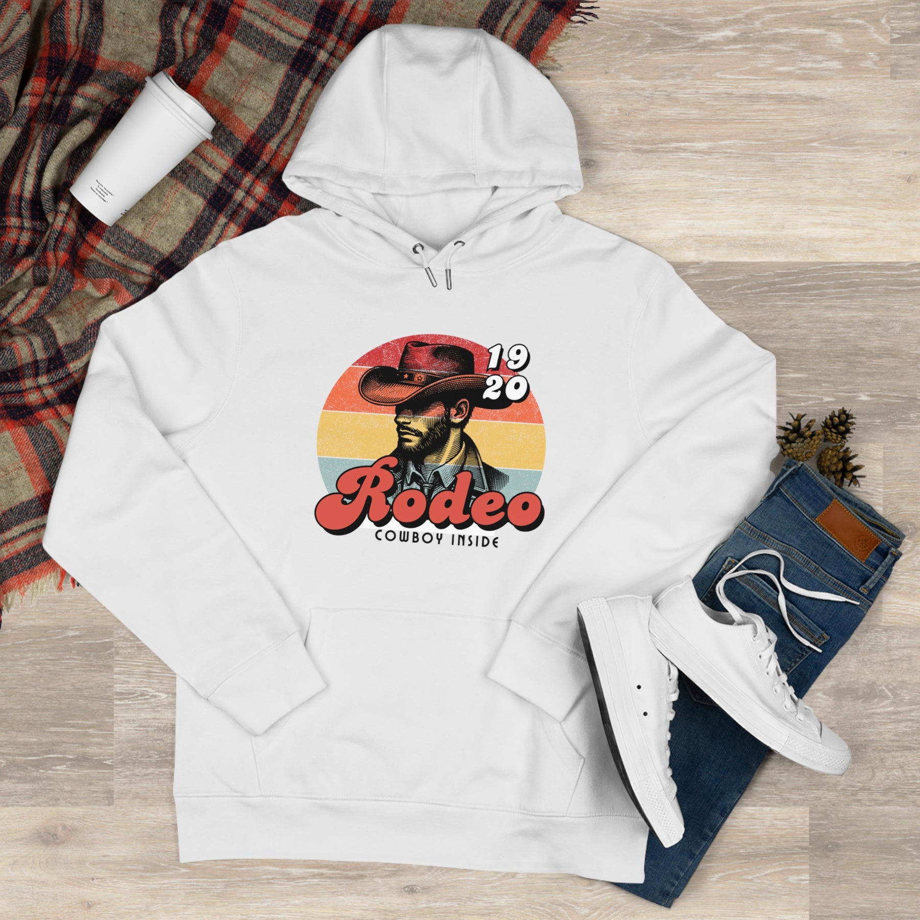 Front print: vintage or bold cowboy with iconic hat
