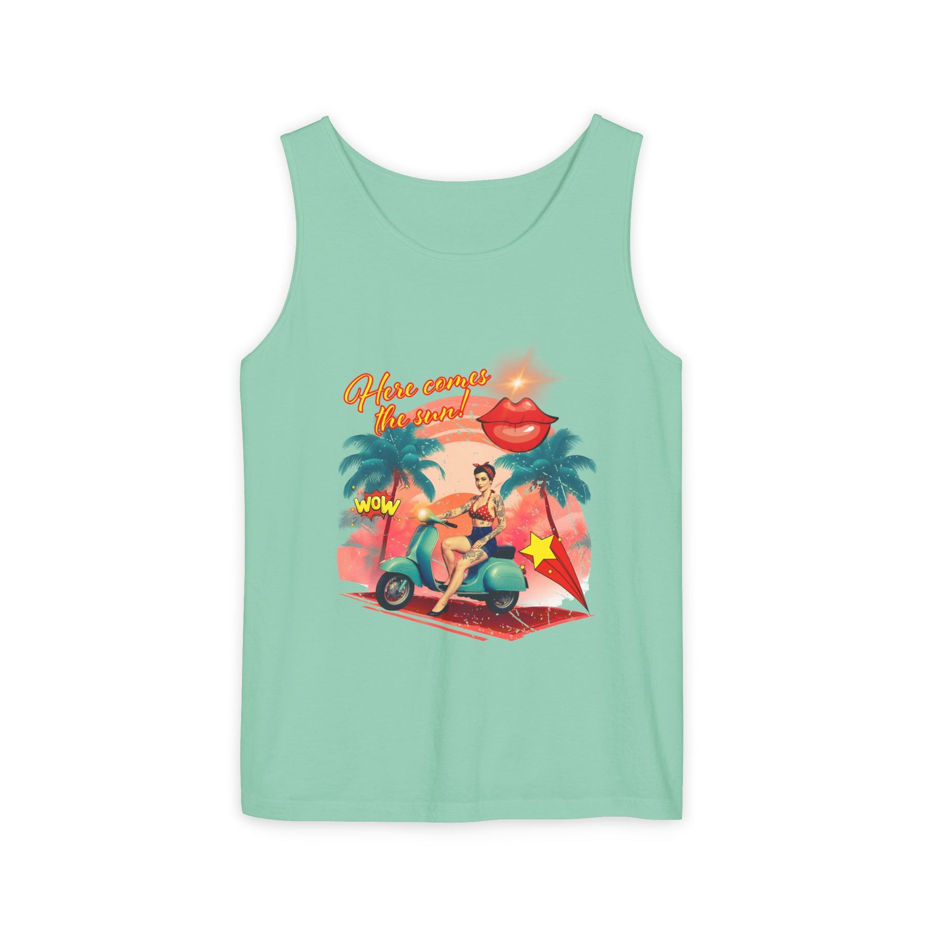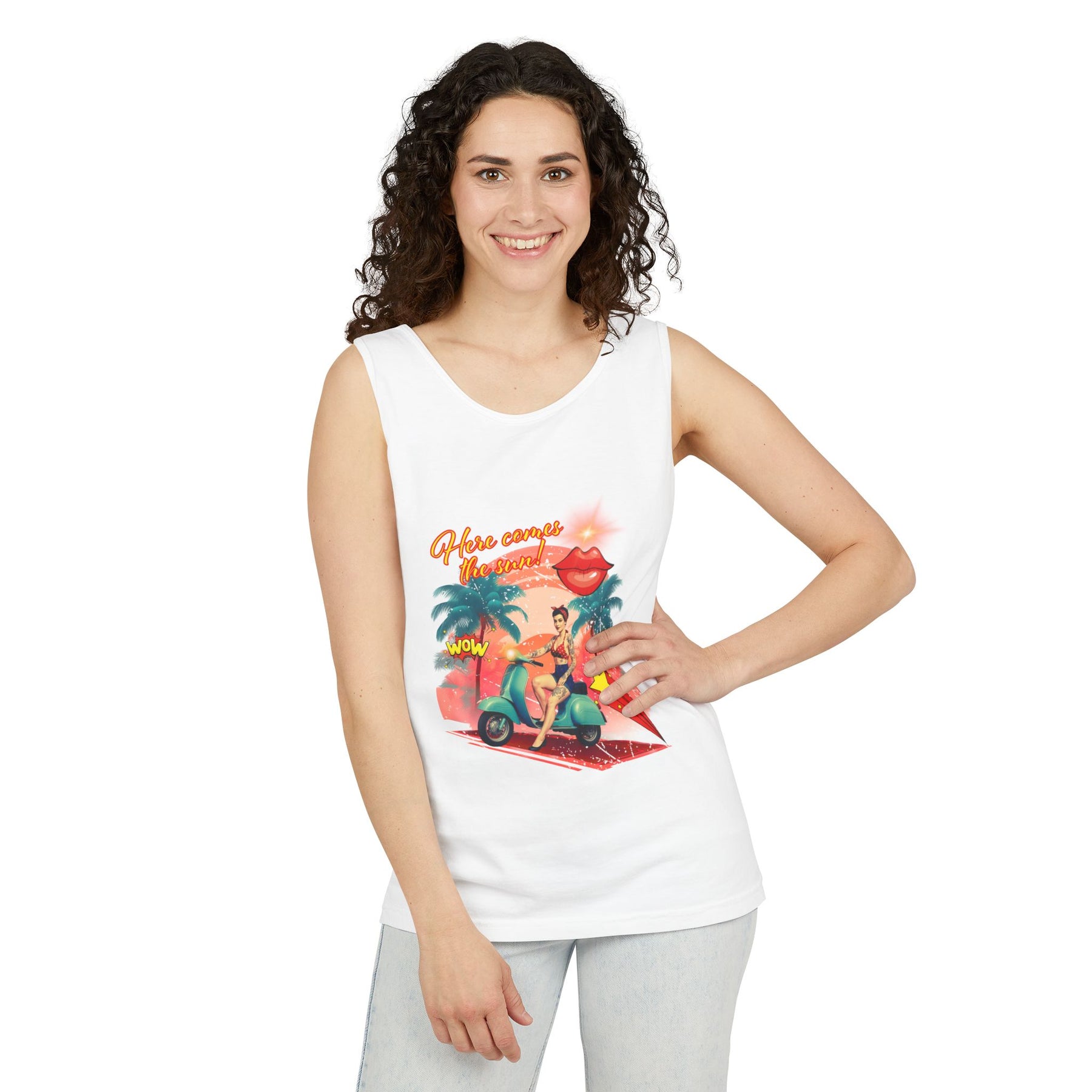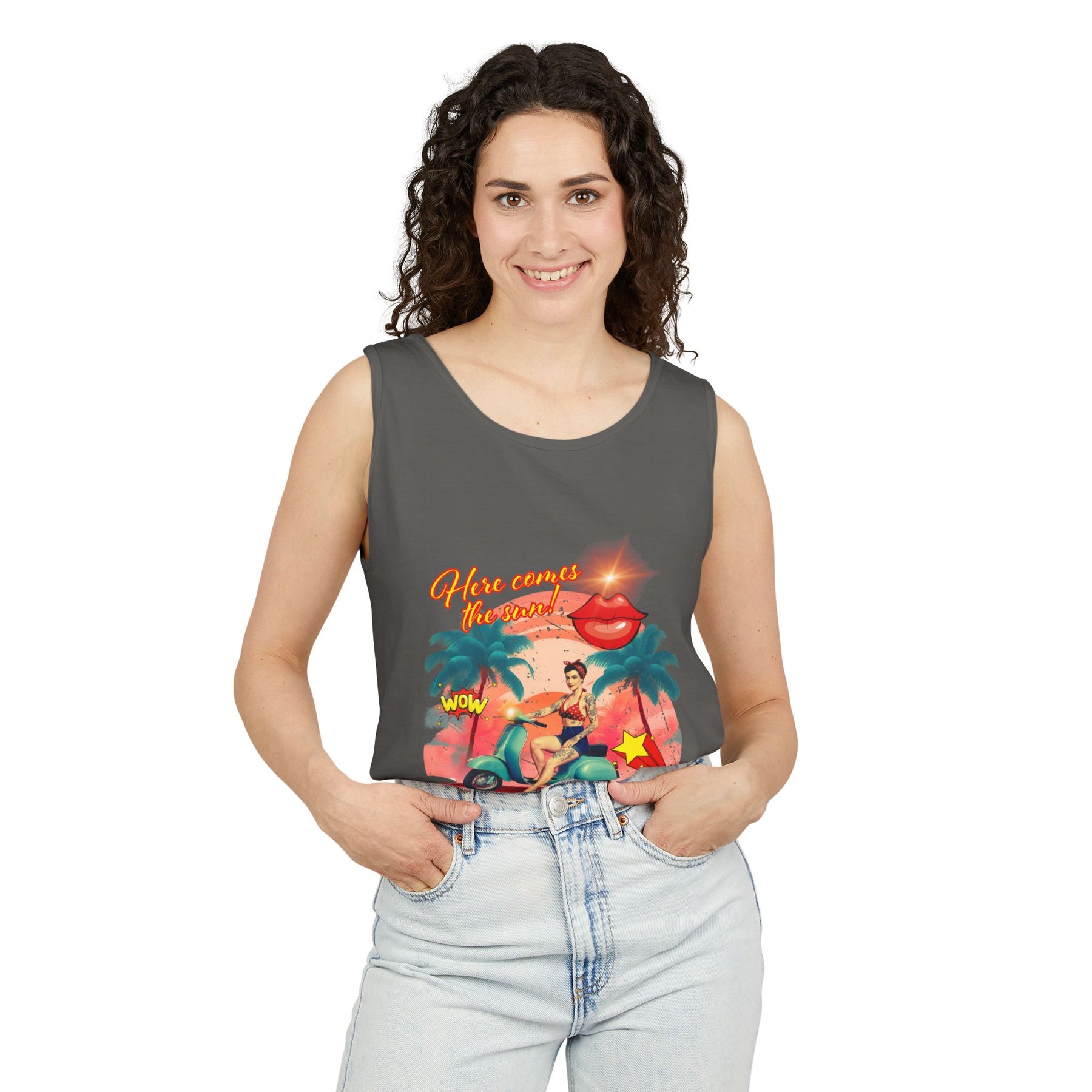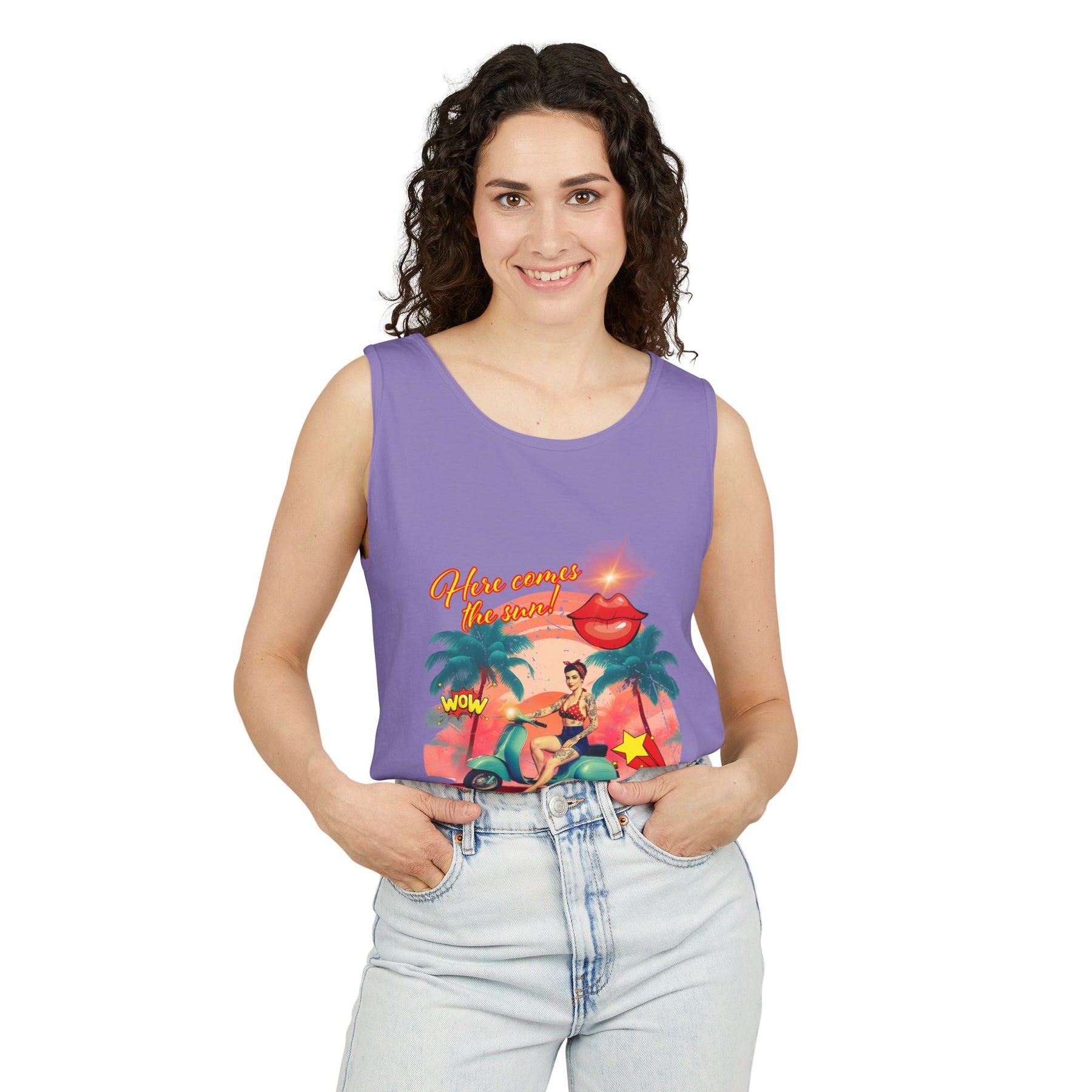 Introducing the ultimate summer tank top, perfect for soaking up the sun and embracing laid-back vibes. This design features a vibrant print that exudes fun and adventure, making it ideal for beach outings, casual gatherings, or just relaxing at home. The relaxed fit ensures comfort throughout the day, while the soft, garment-dyed fabric adds a unique touch to your wardrobe. Whether you're taking a stroll on the boardwalk or attending a summer barbecue, this tank top fits seamlessly into your lifestyle. It's also a great gift for friends and family during warm-weather celebrations, holidays, or just as a fun surprise to brighten someone's day!