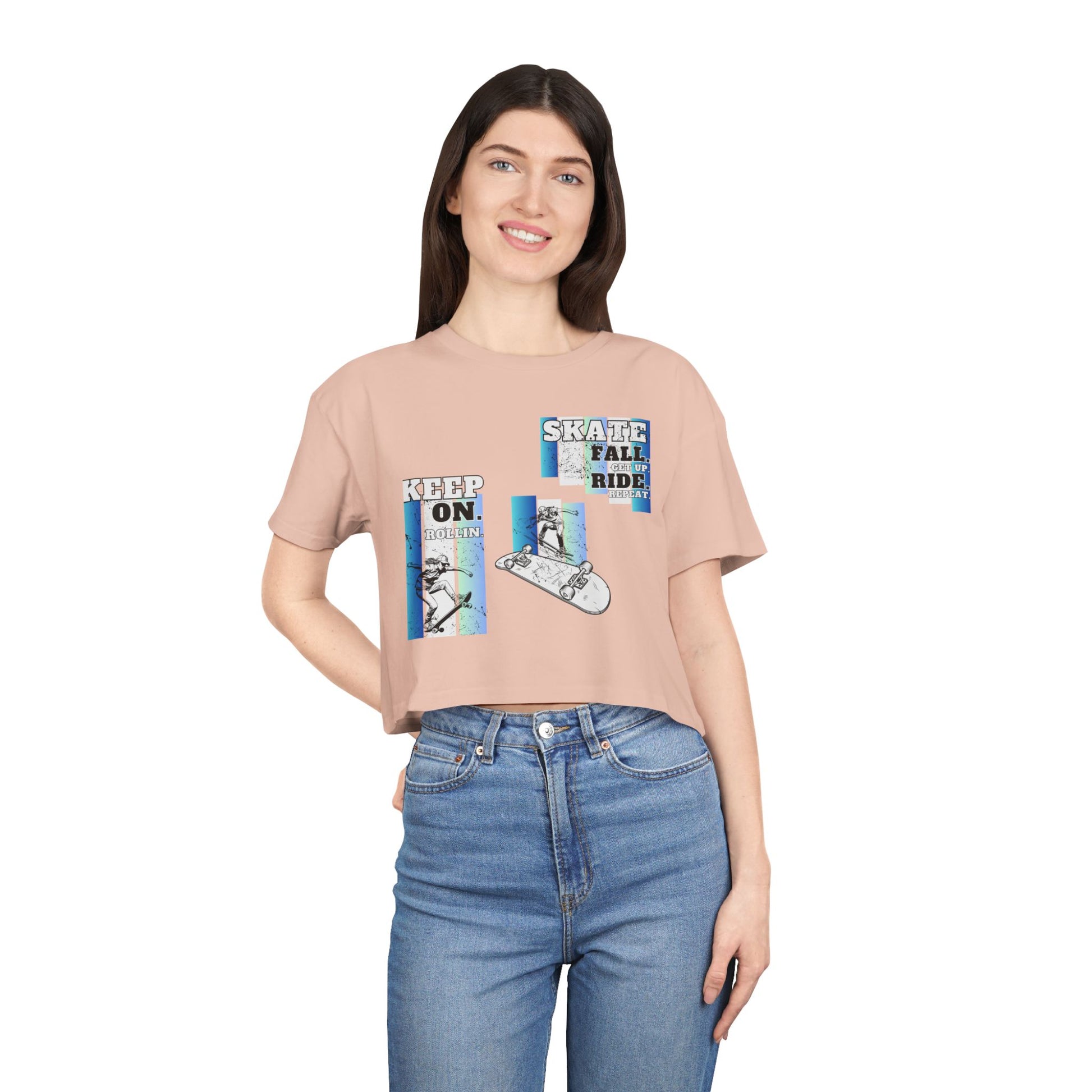 Skateboarding Women's Crop Tee - Keep On Skatin' & Fall Ride Graphic T-Shirt