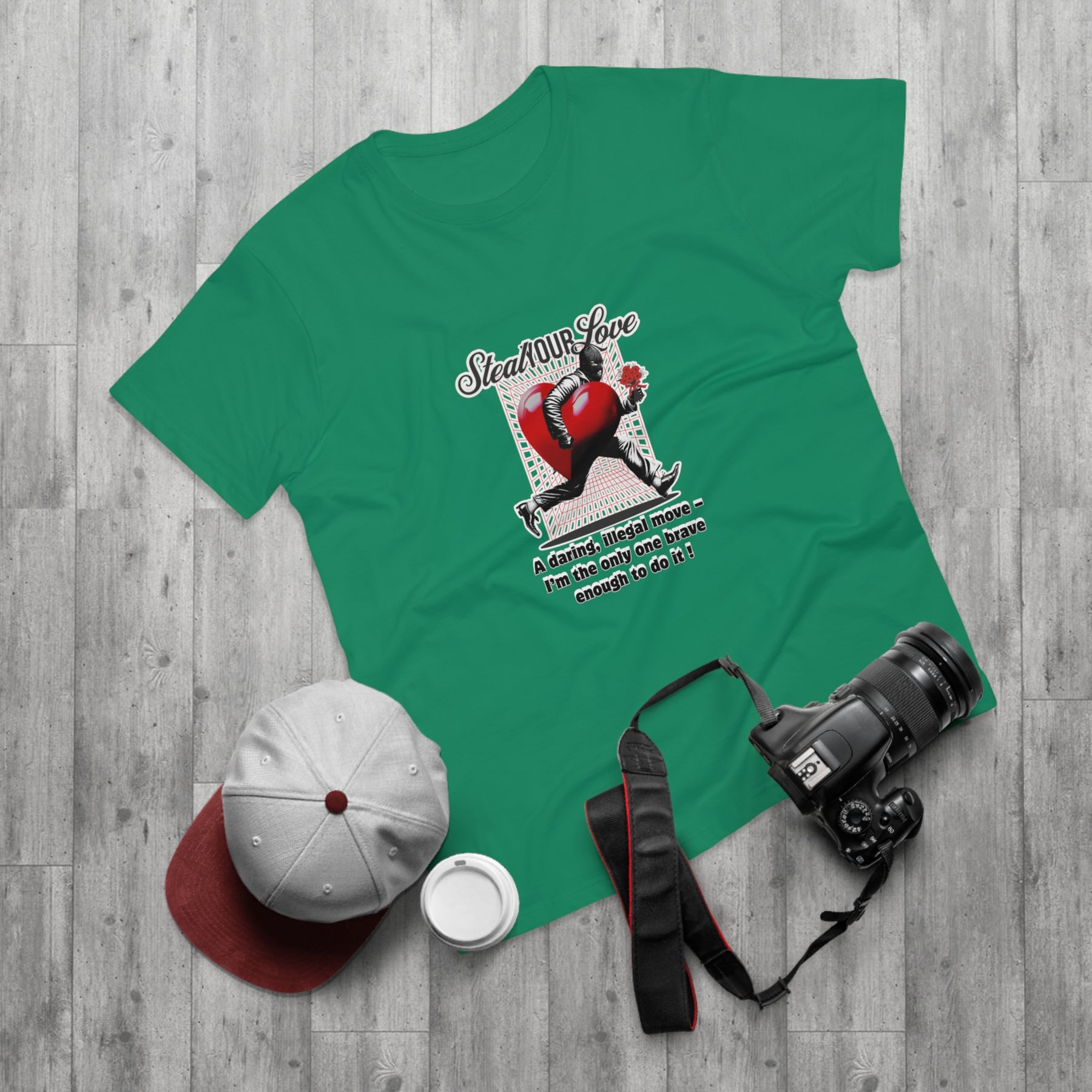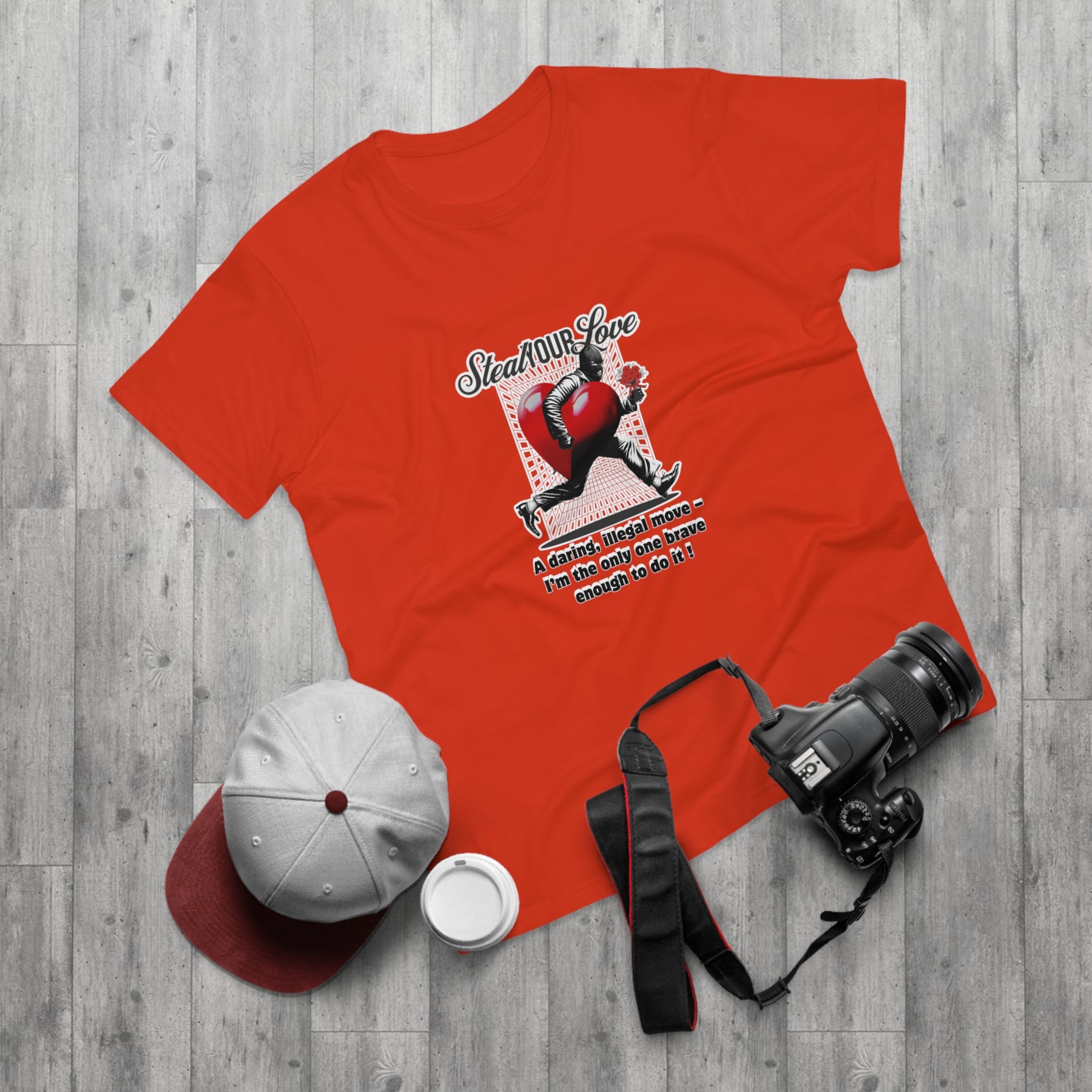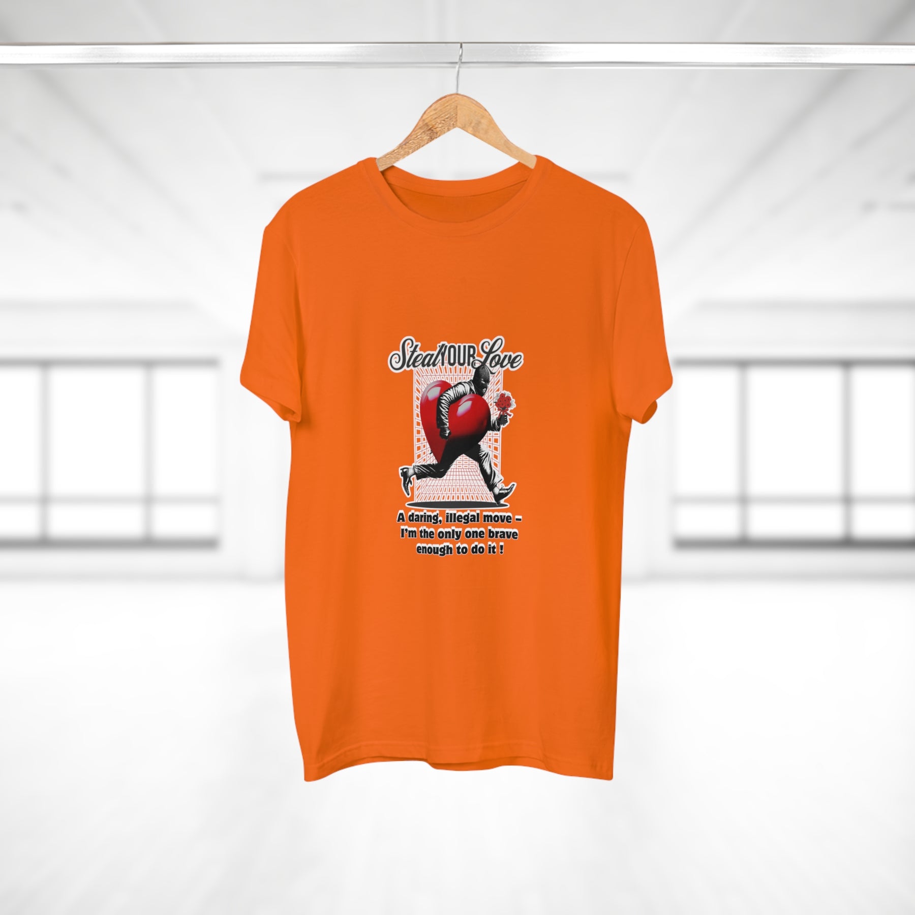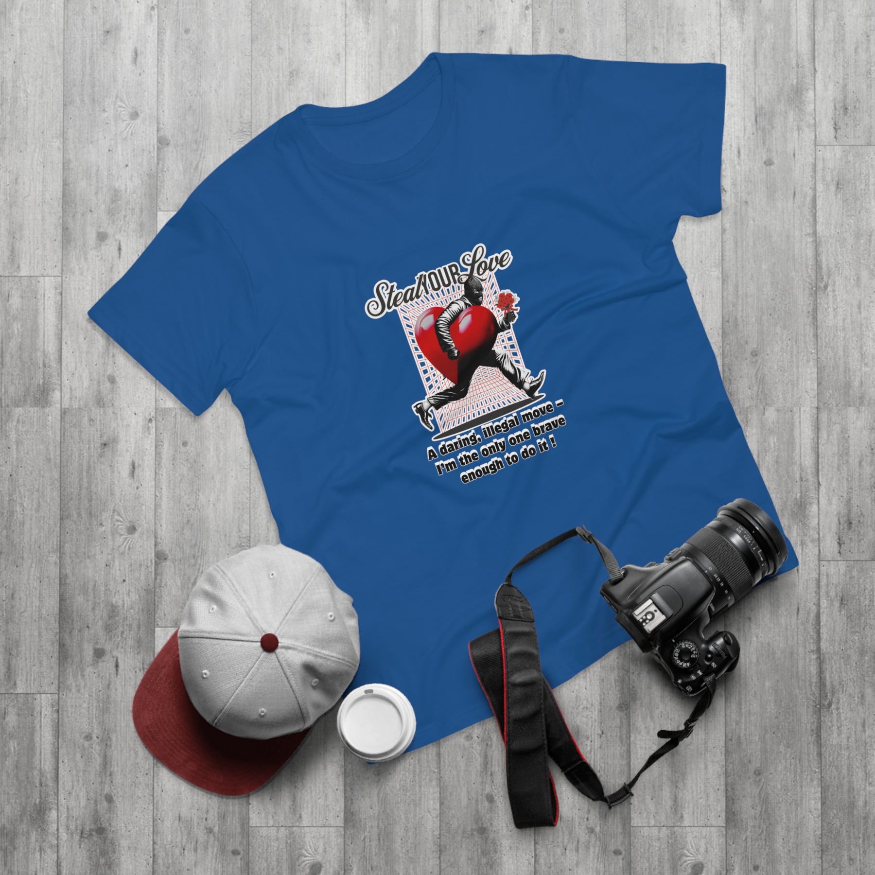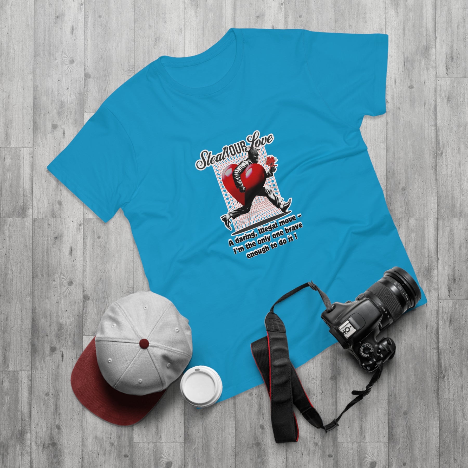 A cheeky crime of the heart: This shirt tells the story of someone brave enough to risk it all for love. The heart thief with a flower captures charm, wit, and a touch of rebellion. A perfect design for anyone who believes that true love is worth the risk – and maybe even a little mischief.