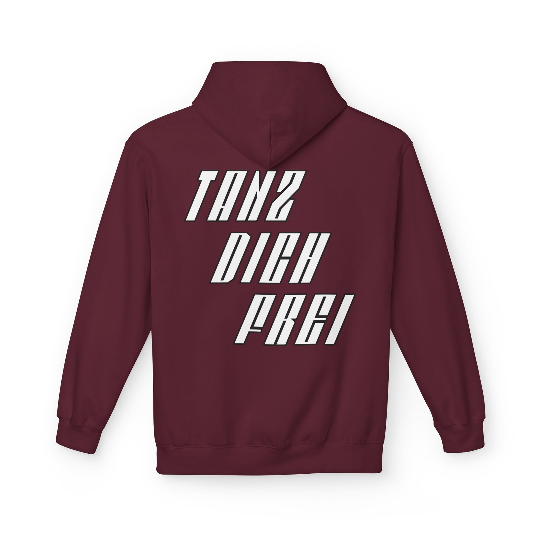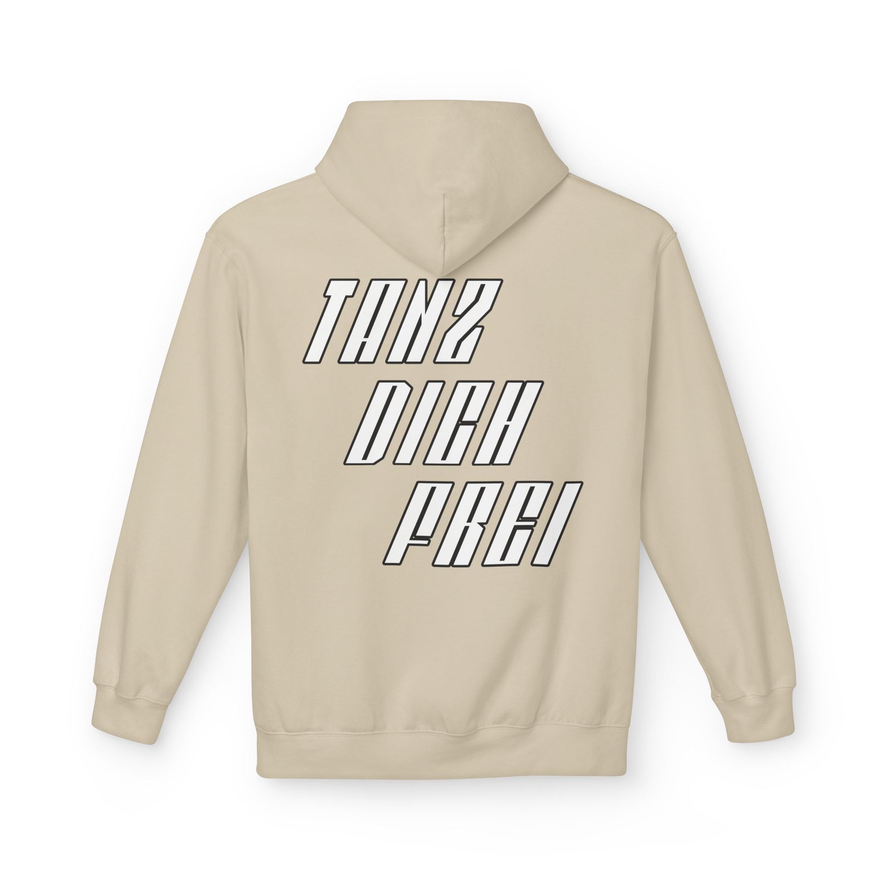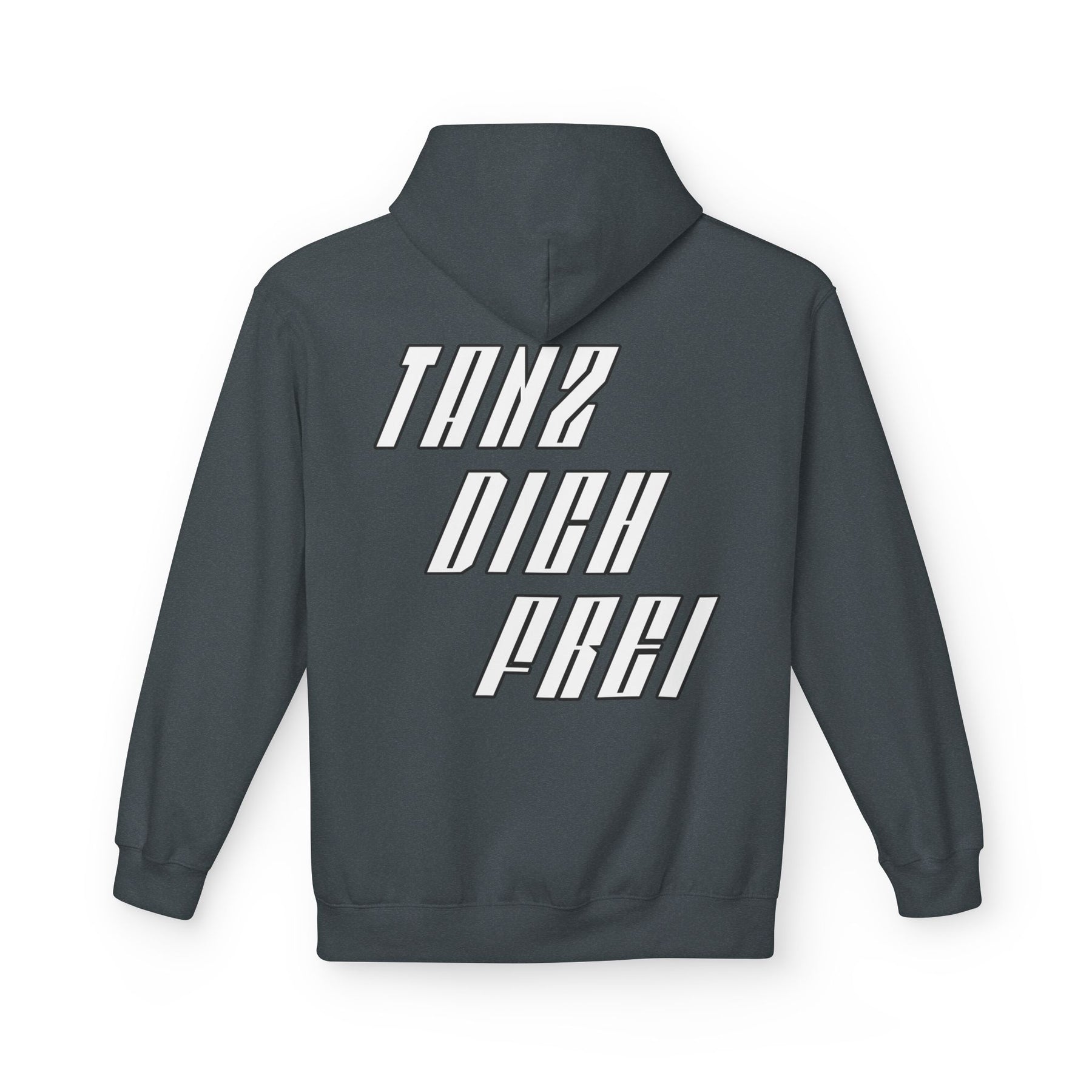 🖤 Der Schriftzug „Tanz dich frei“ umrahmt, worum’s geht: Freiheit im Beat.