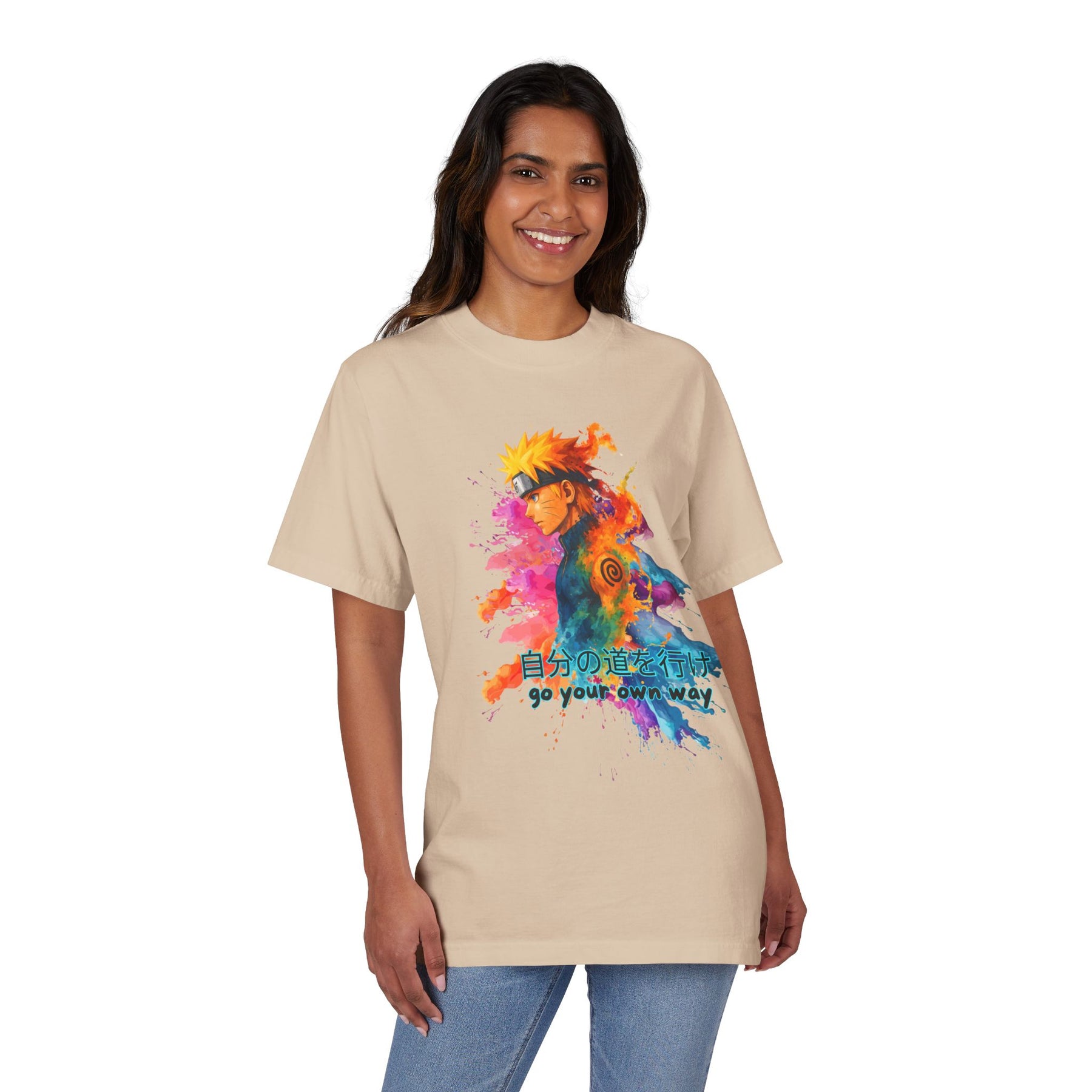 With the Japanese quote自分の道を行け (Jibun no michi o yuke) , meaning “Go your own way,” this tee is a tribute to individuality, courage, and the quiet power of doing your thing – anime style.