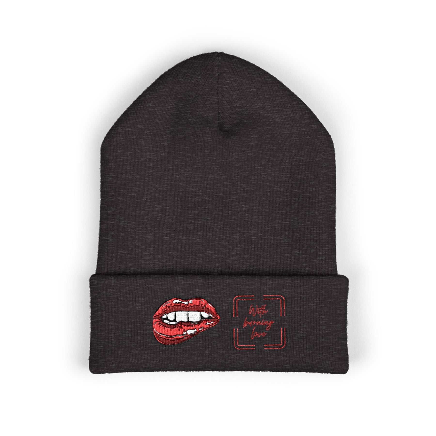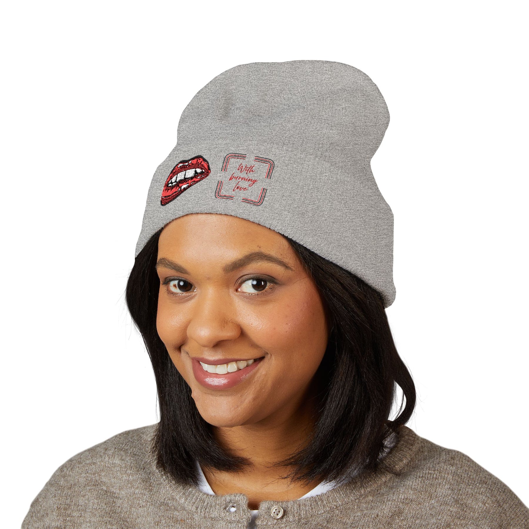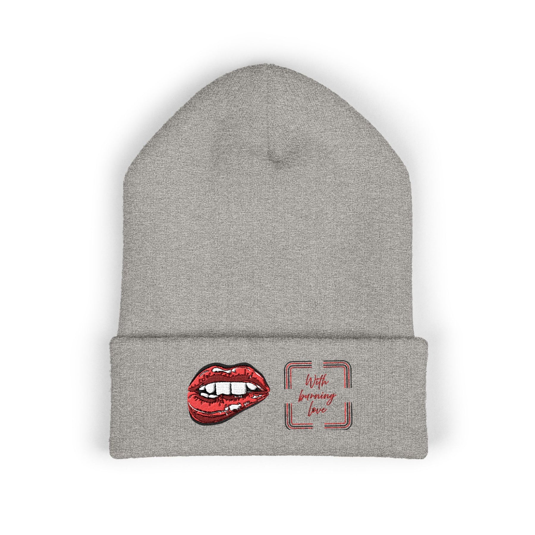 Eine kuschelige Beanie mit umgeschlagenem Rand, bestickt mit einem frechen Lippenmotiv und einem kleinen Spruch – perfekt für alle, die Stil und Selbstbewusstsein lieben. Der 30 cm lange Rand sorgt für Struktur und Wärme, während die Stickereien der Beanie Struktur und Persönlichkeit verleihen, die auch nach vielen Wäschen erhalten bleiben. Das leichte und dennoch wärmende Acryl-Strickmaterial hält kühle Morgenstunden angenehm warm, ohne empfindliche Haut zu reizen. Die Beanie sitzt tief über den Ohren und lässt sich leicht unter andere Kleidungsstücke stecken. Sie ist der ideale Begleiter für Spaziergänge, den nächtlichen Kaffeegenuss und die Stadt, wenn Sie einem schlichten Outfit einen dezenten, selbstbewussten Akzent verleihen möchten.