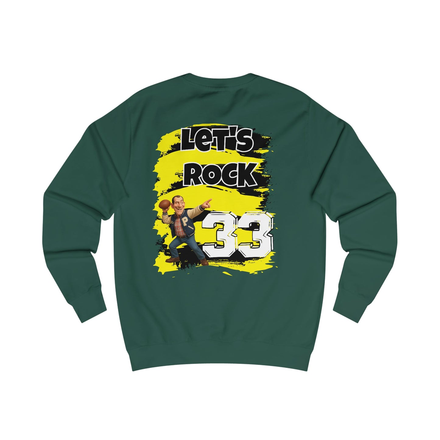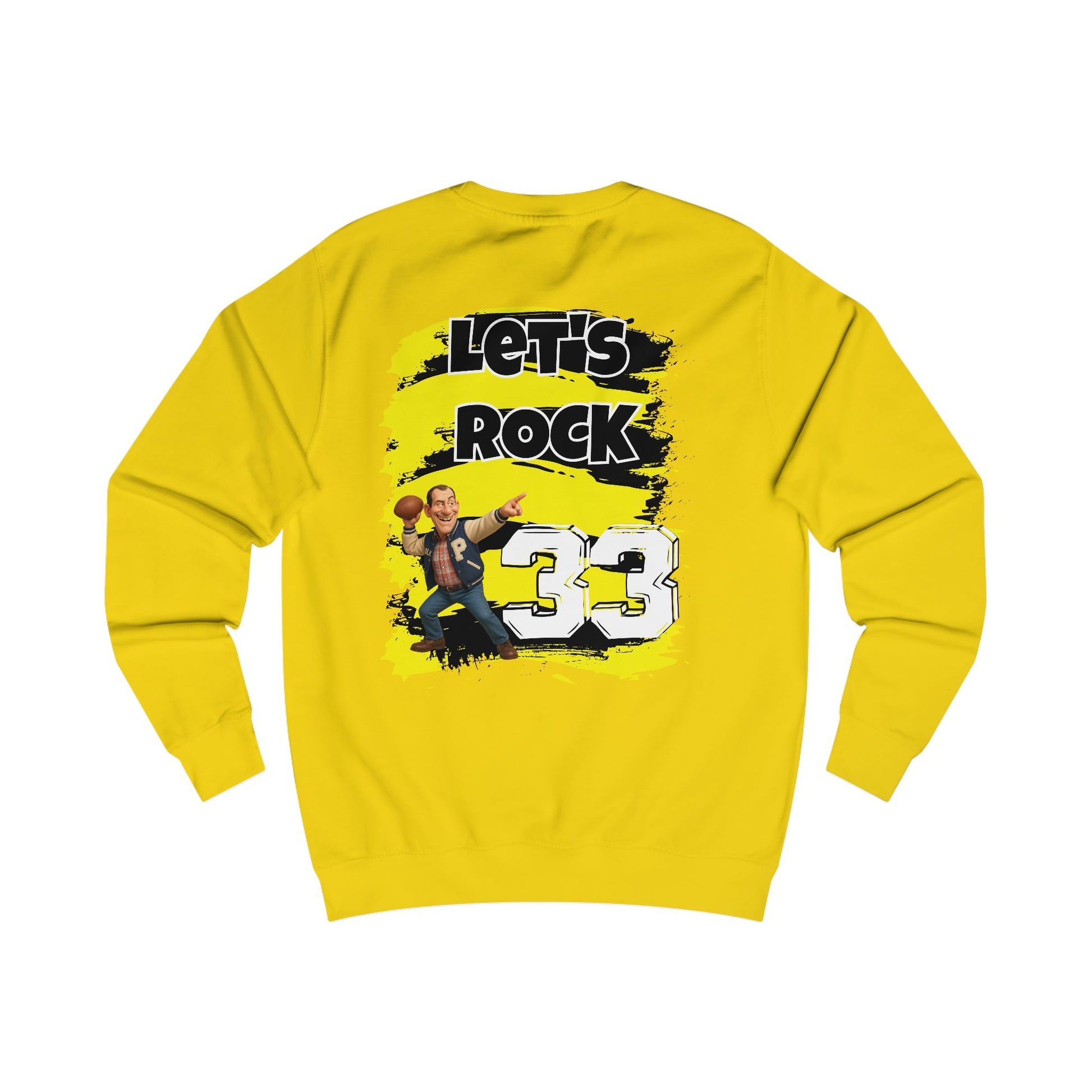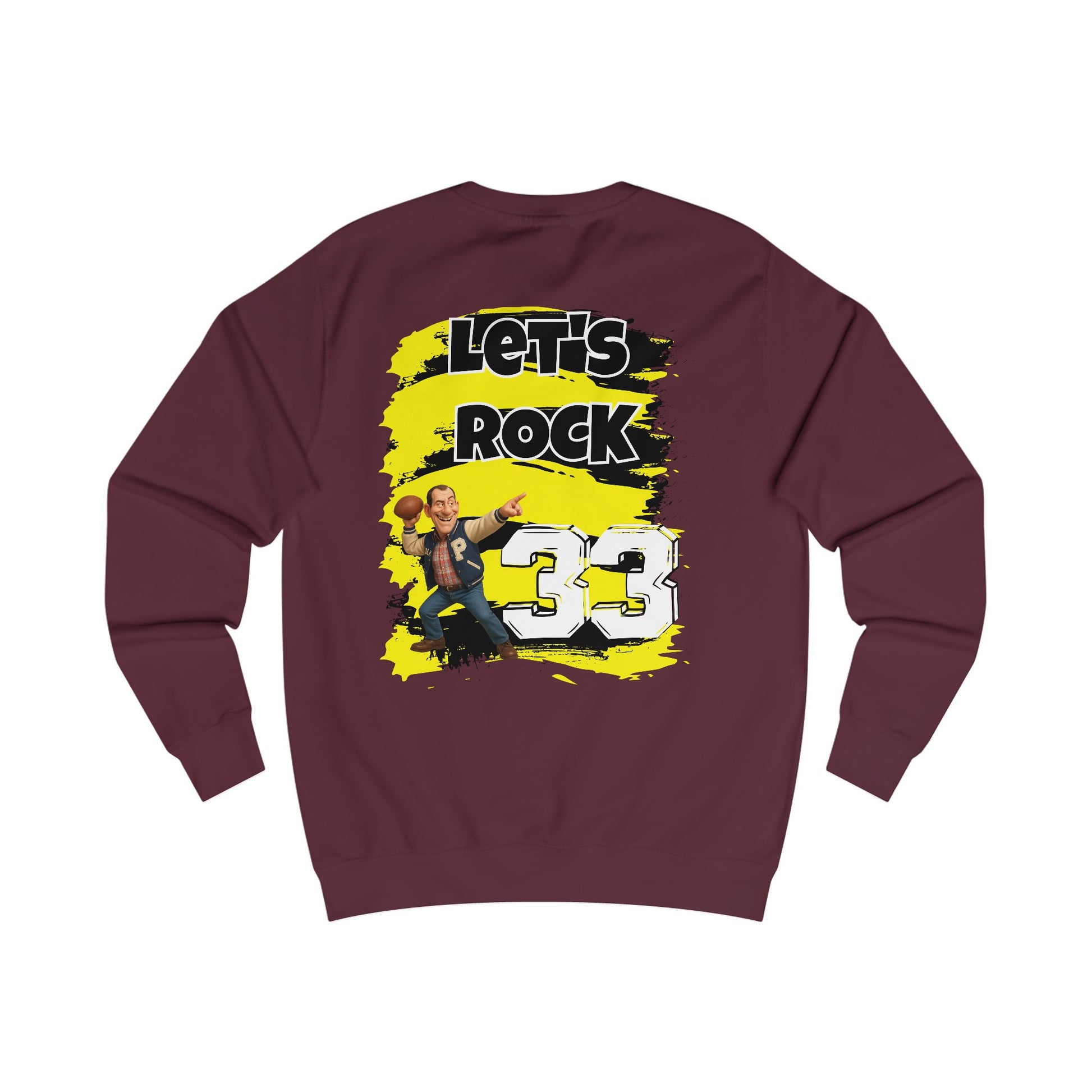 This sweater brings the humor of the 90s sitcom straight into your wardrobe. The front shows a colorful comic-style illustration: women, high heels, shoeboxes, and pure chaos â just like in the iconic shoe store. On the back, Al Bundy strikes his famous âLetâs Rockâ football pose with the legendary number 33.