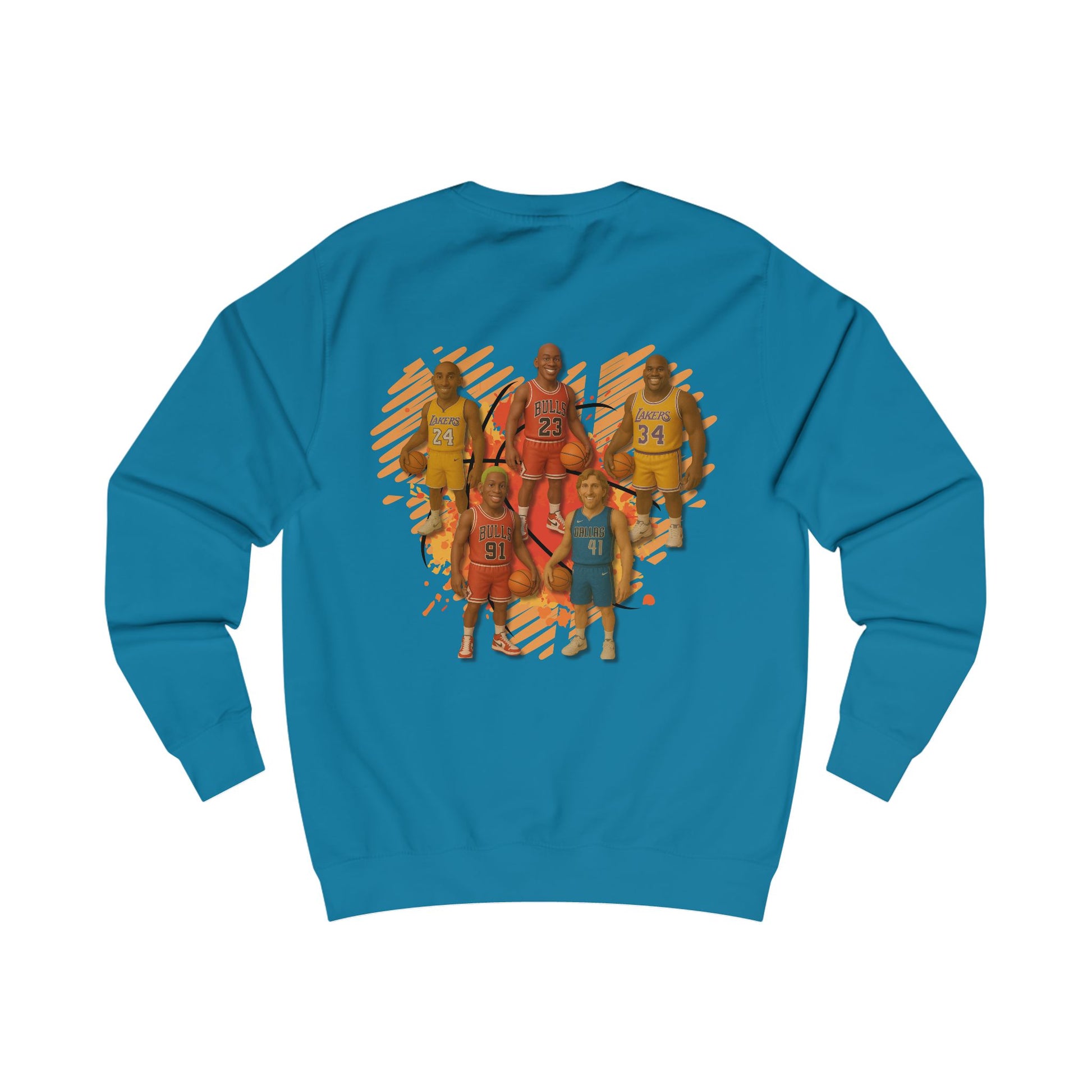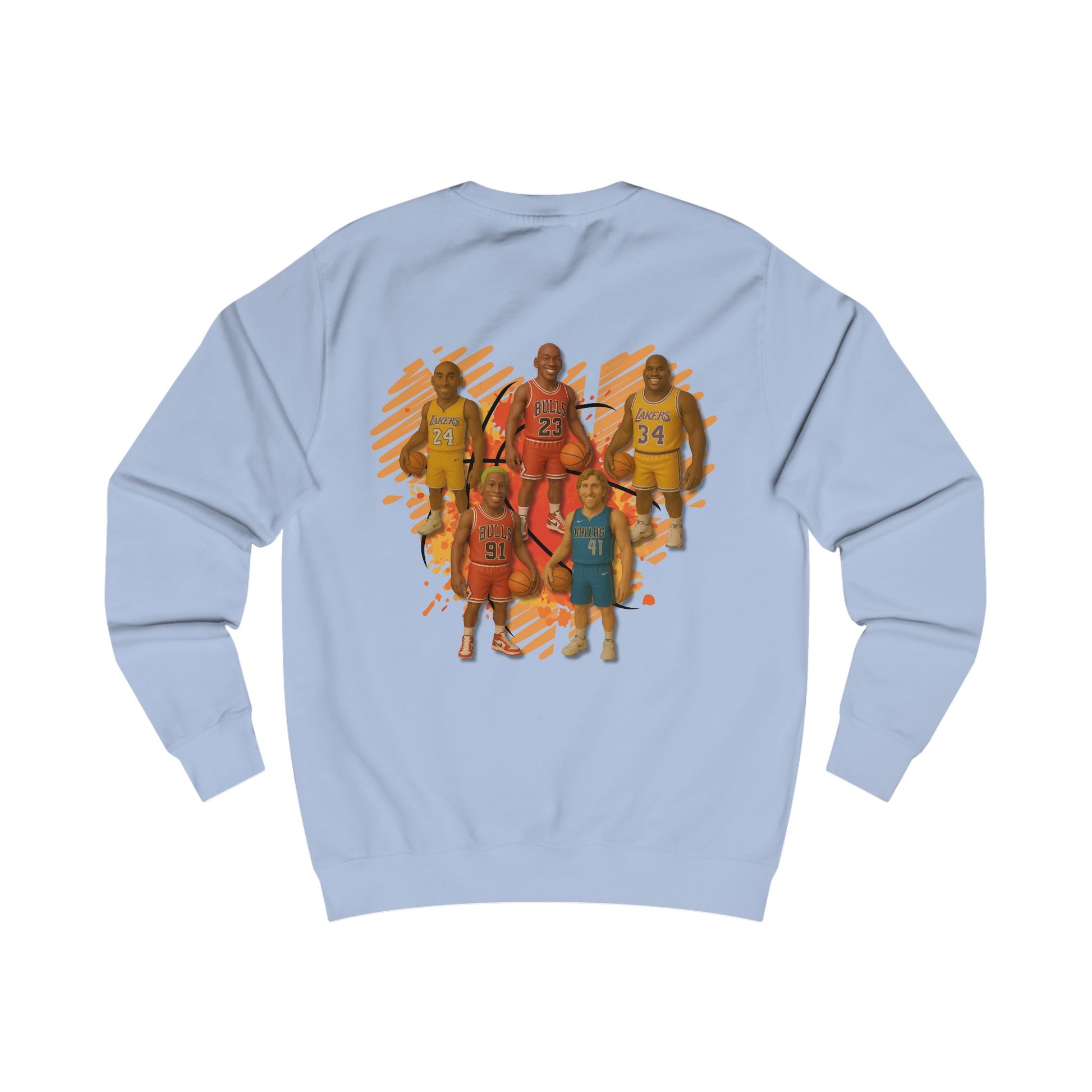 Jordan. Kobe. Shaq. Rodman. Und einer, der nicht mal nachfragt, ob er dazugehĂśren darf â er ist einfach da. Dieses Design feiert die GOATs des Basketballs im Mini-Figuren-Look mit satten Farben und orangem Scribble-Background. Retro trifft Swag, Game trifft Style.