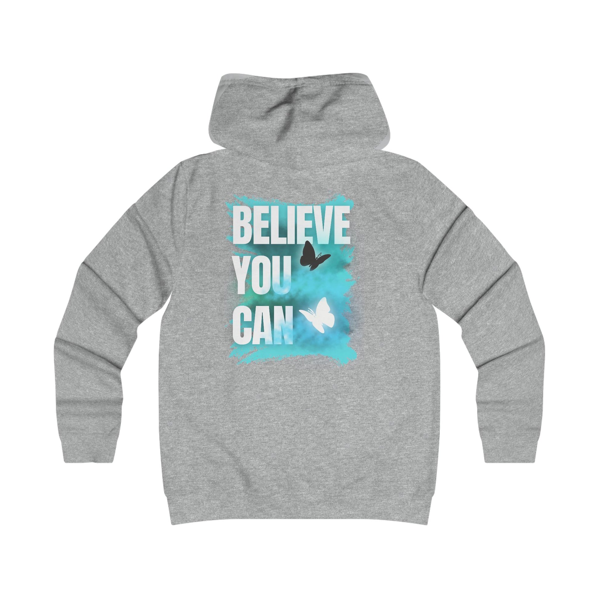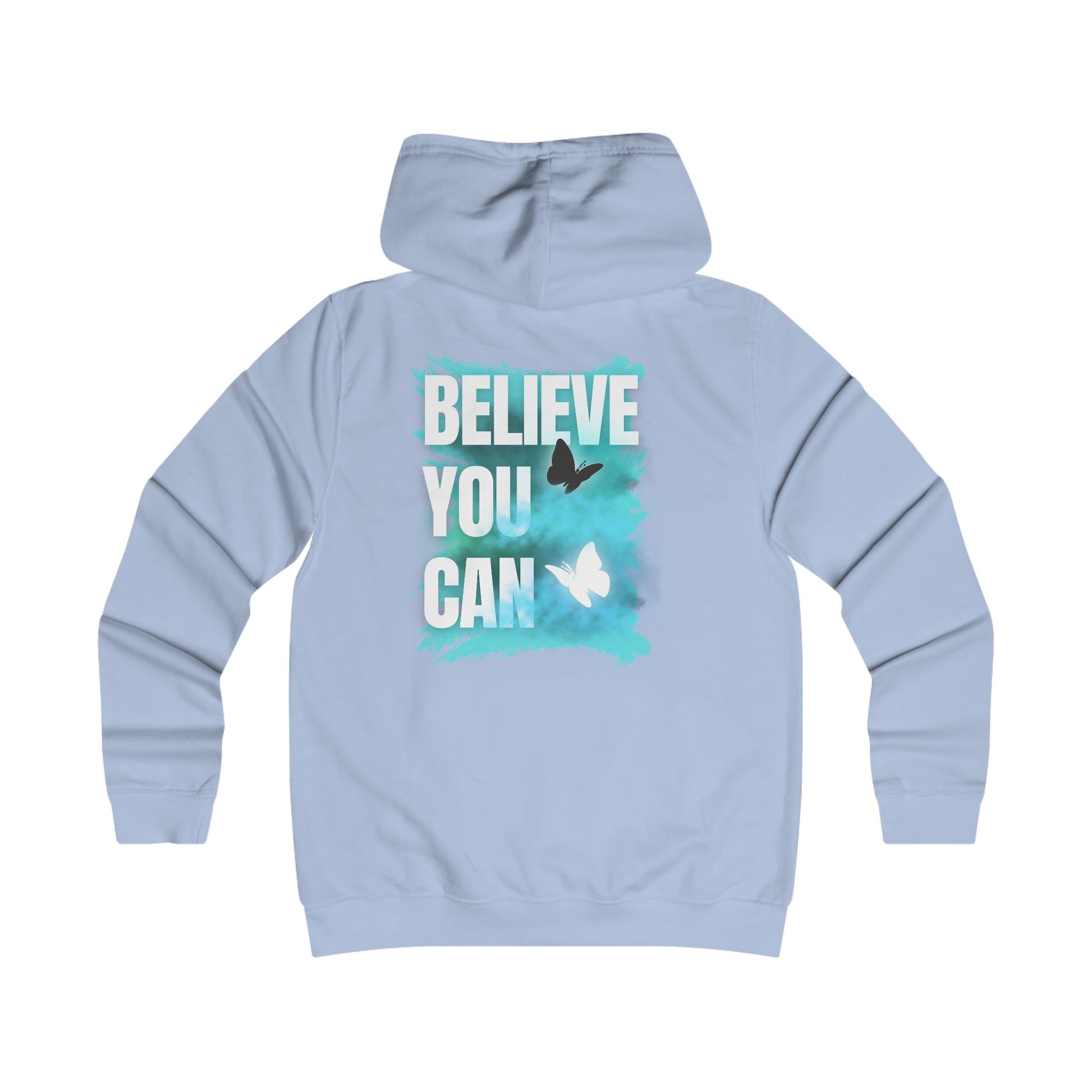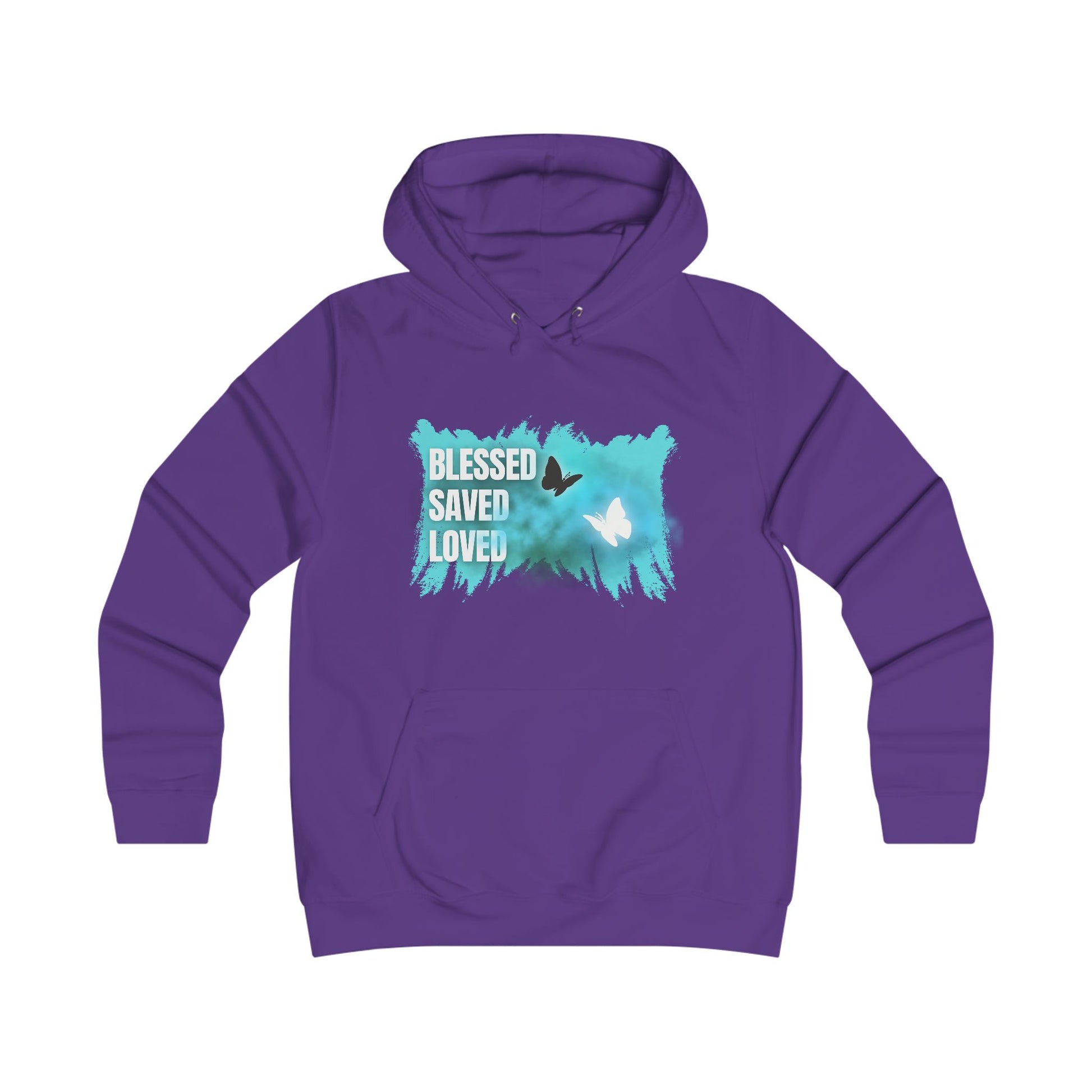 This hoodie combines faith and motivation in one unique design. The front features the message “Blessed. Saved. Loved.” reminding you of divine love and strength, while the back “Believe You Can” inspires confidence and courage.