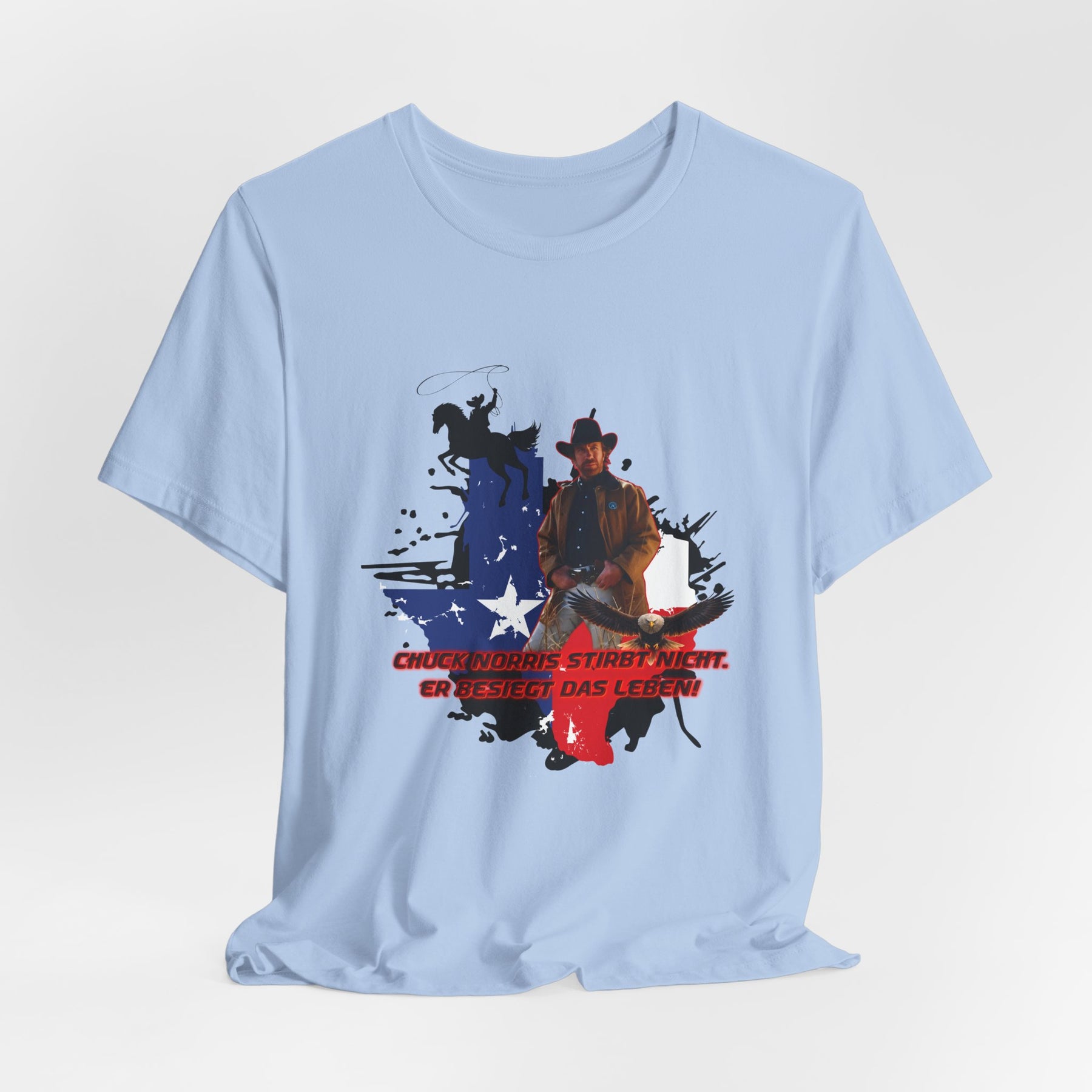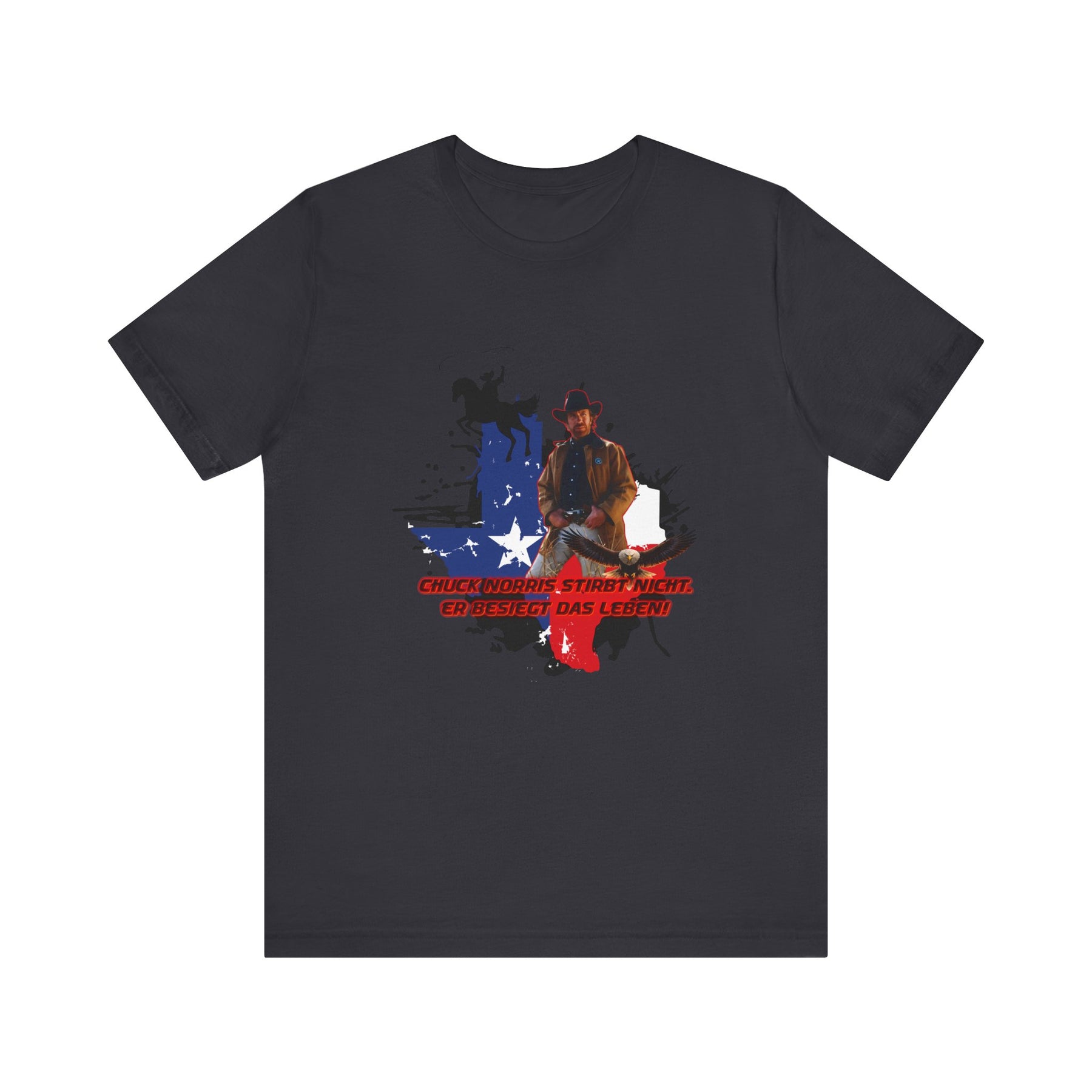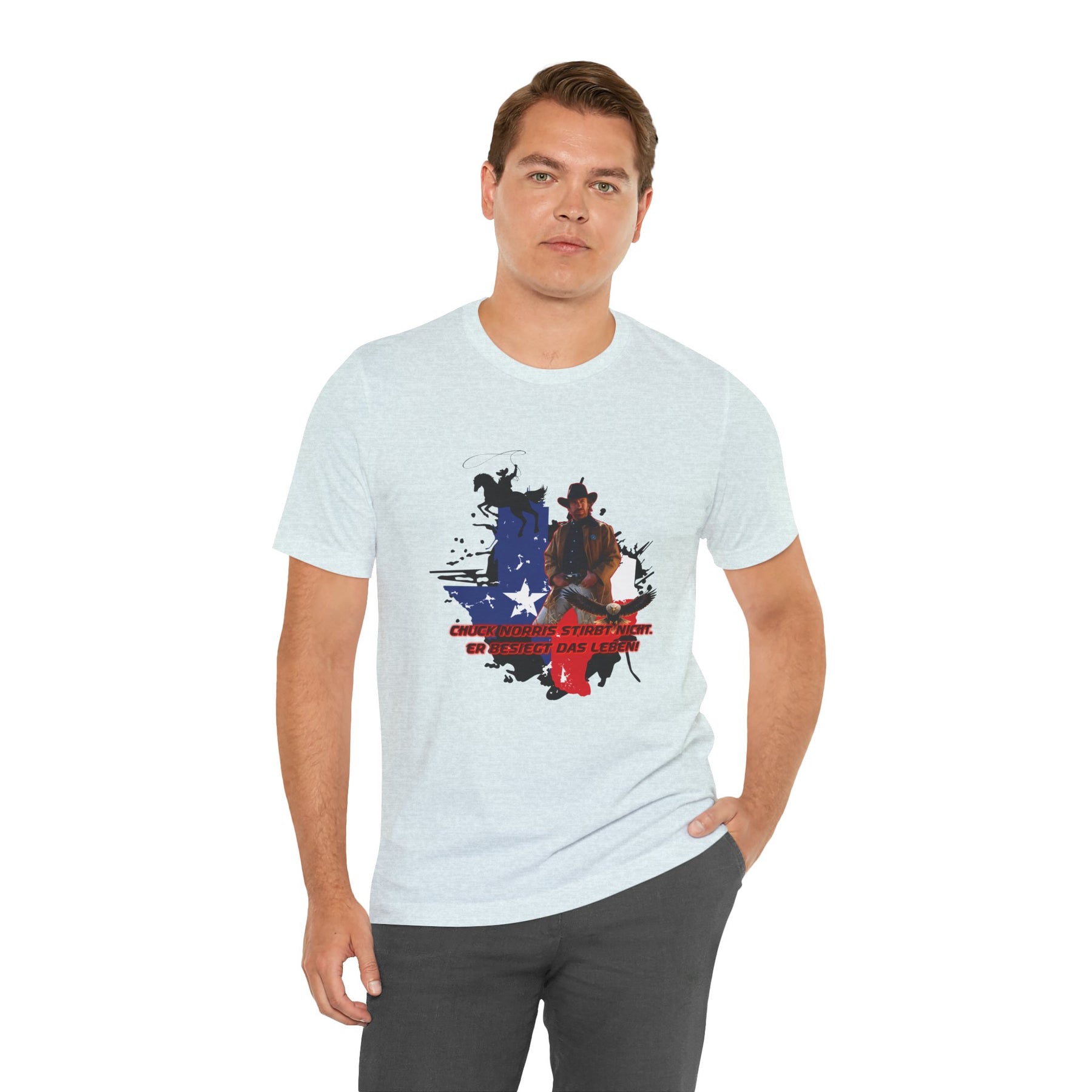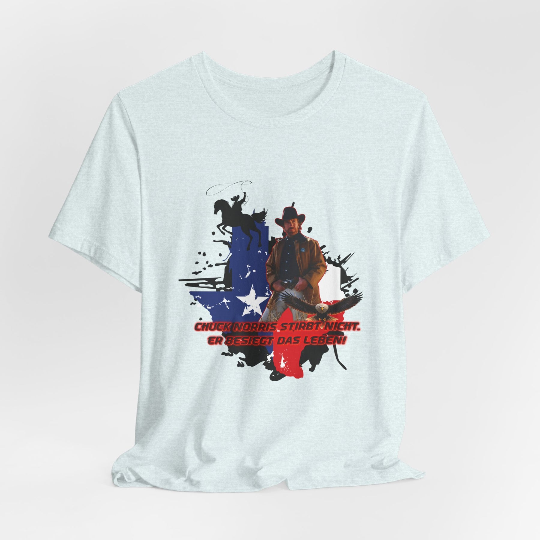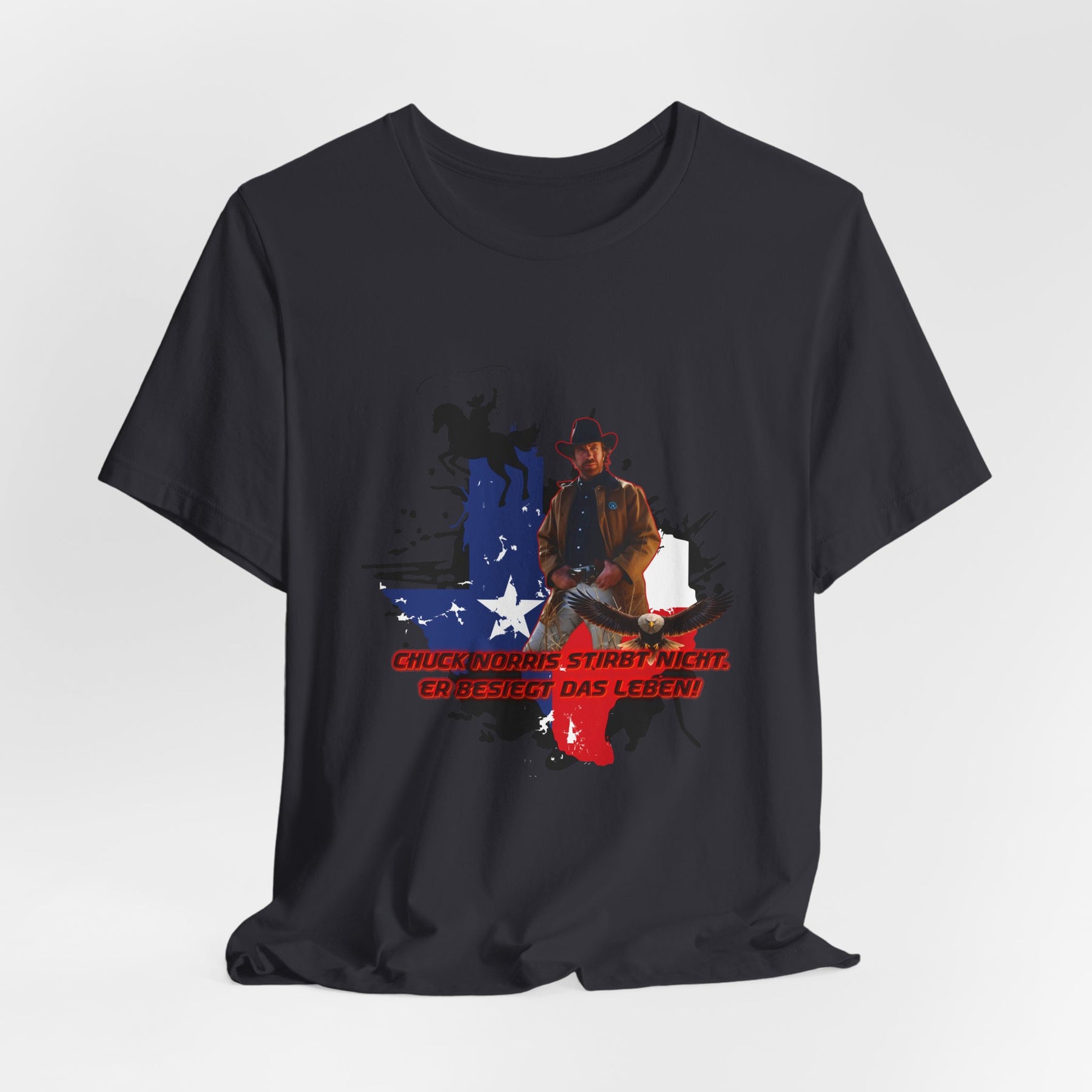 Dieses leichte T-Shirt verkörpert modernen Western-Charme mit einem markanten Grafikprint: die Silhouette von Chuck über einer verwaschenen Texas-Flagge. Das Design erinnert an ein entspanntes Ausritt im Sonnenuntergang und lange Straßen – ein stilles Selbstvertrauen, nicht eine laute Prahlerei. Ob am Lagerfeuer im Garten, beim Rodeo oder in der Freizeit – dieses Shirt passt zu jedem Anlass perfekt und lässt sich mühelos mit Jeans, Stiefeln oder der Lieblingsjacke kombinieren. Atmungsaktive Airlume-Baumwolle sorgt für angenehme Kühlung, während der schlichte Rundhalsausschnitt sowohl solo als auch unter einem Hemd perfekt aussieht. Es ist für alle, die amerikanische Details und eine unaufdringliche Attitüde schätzen – vertraut, eingelaufen und bereit für das nächste kleine Abenteuer.