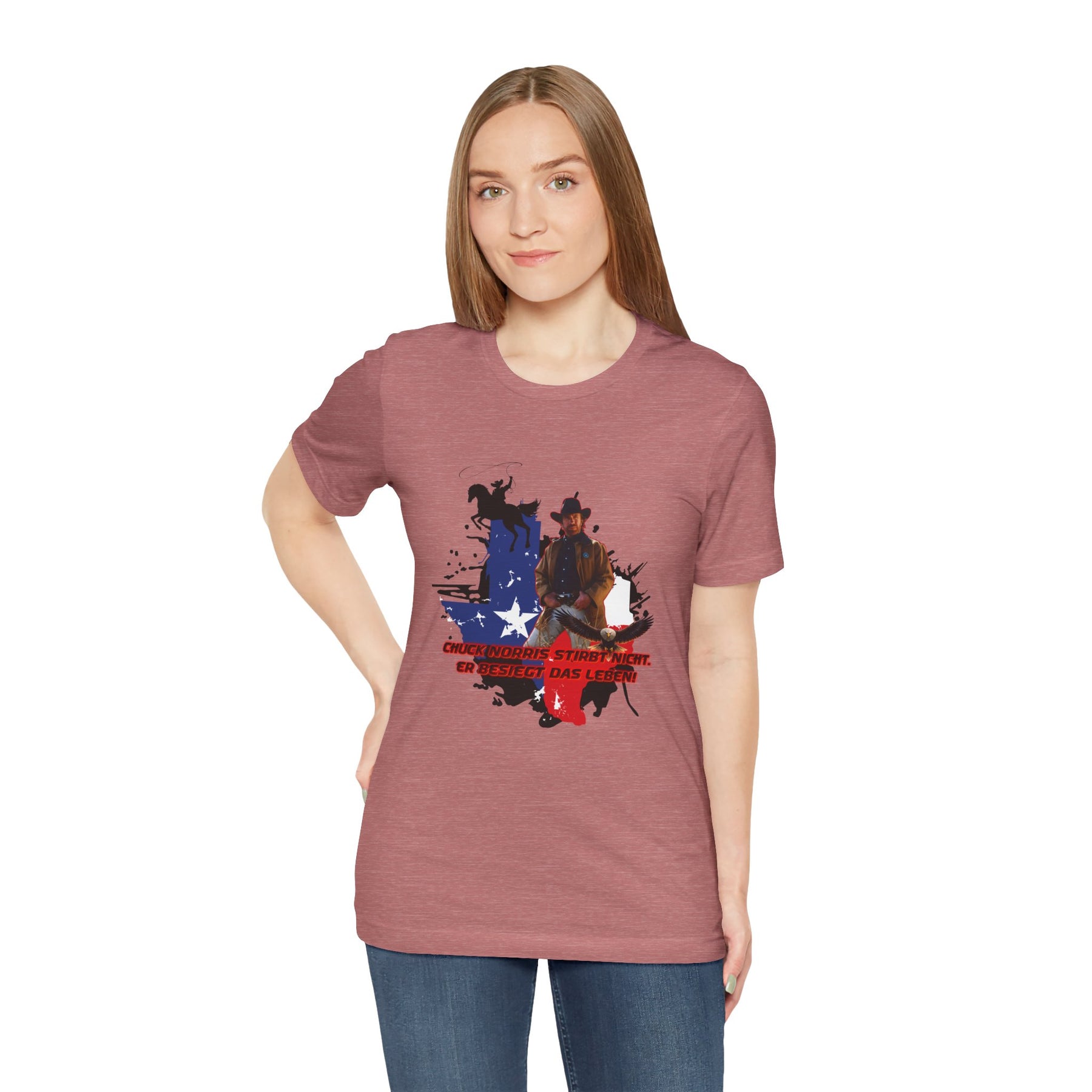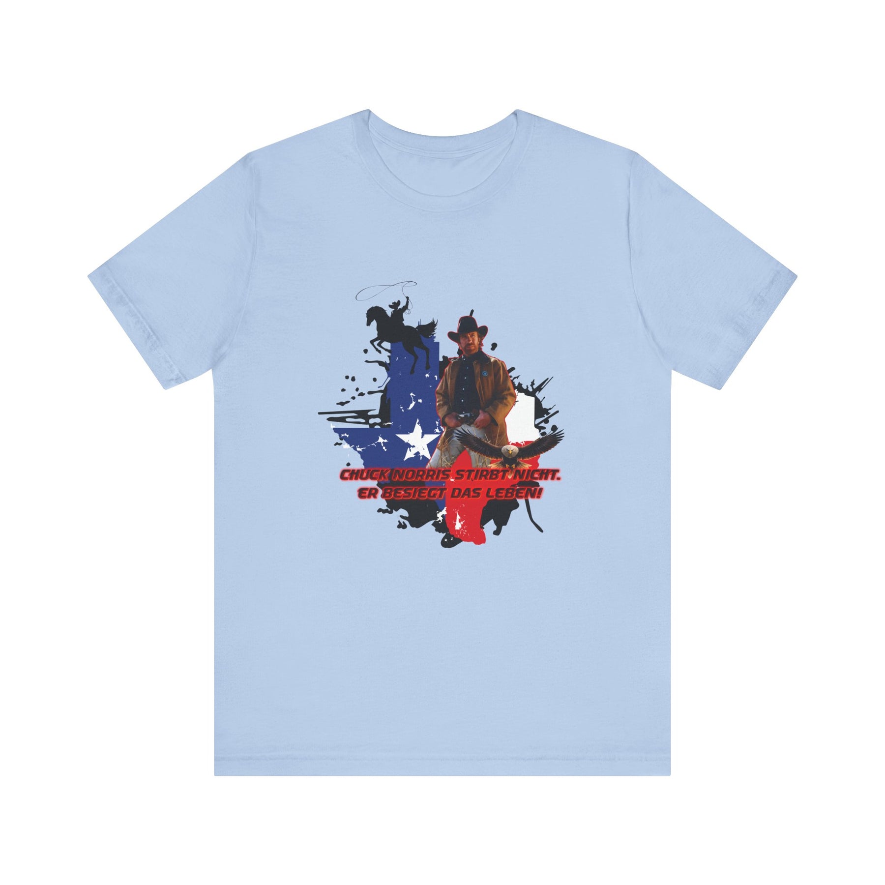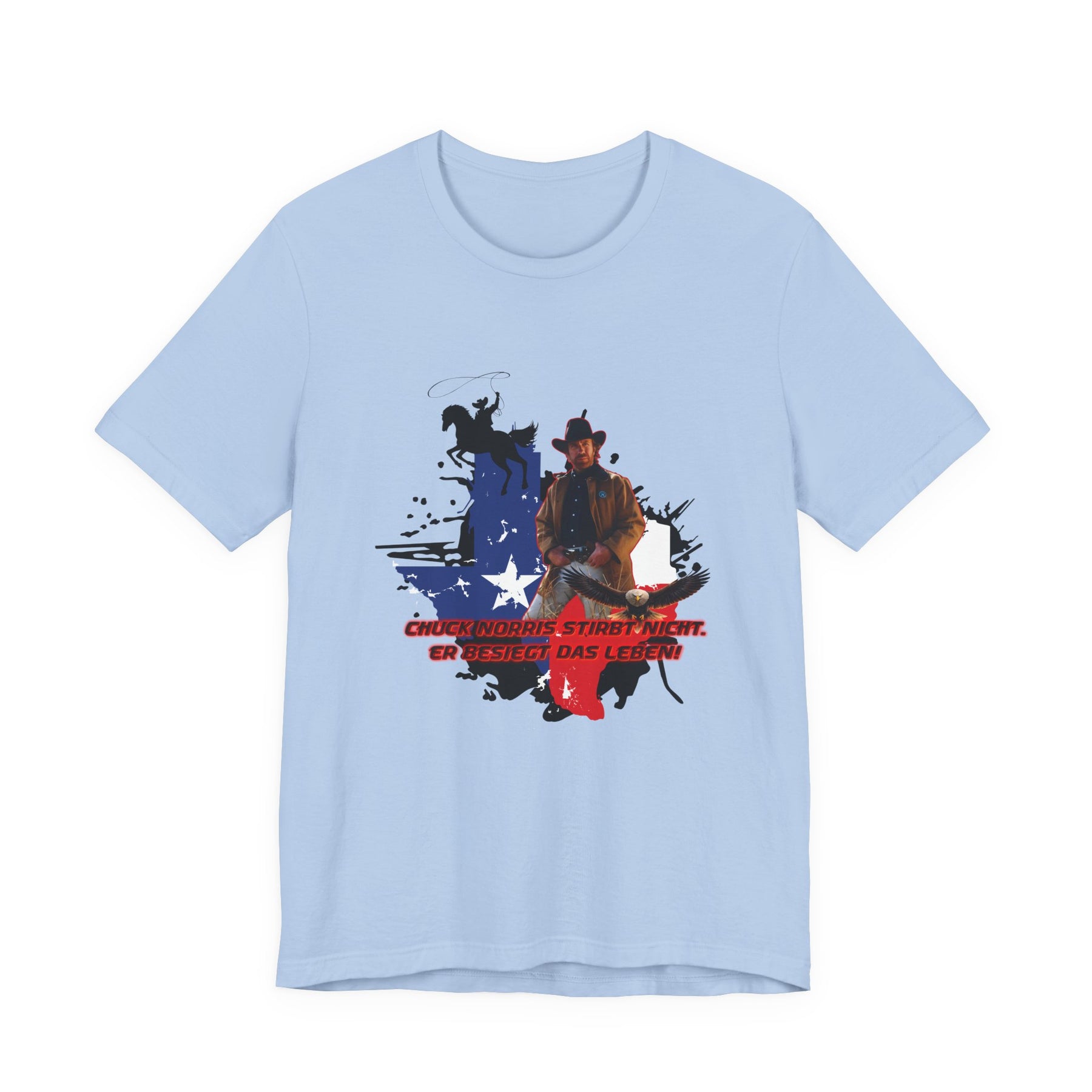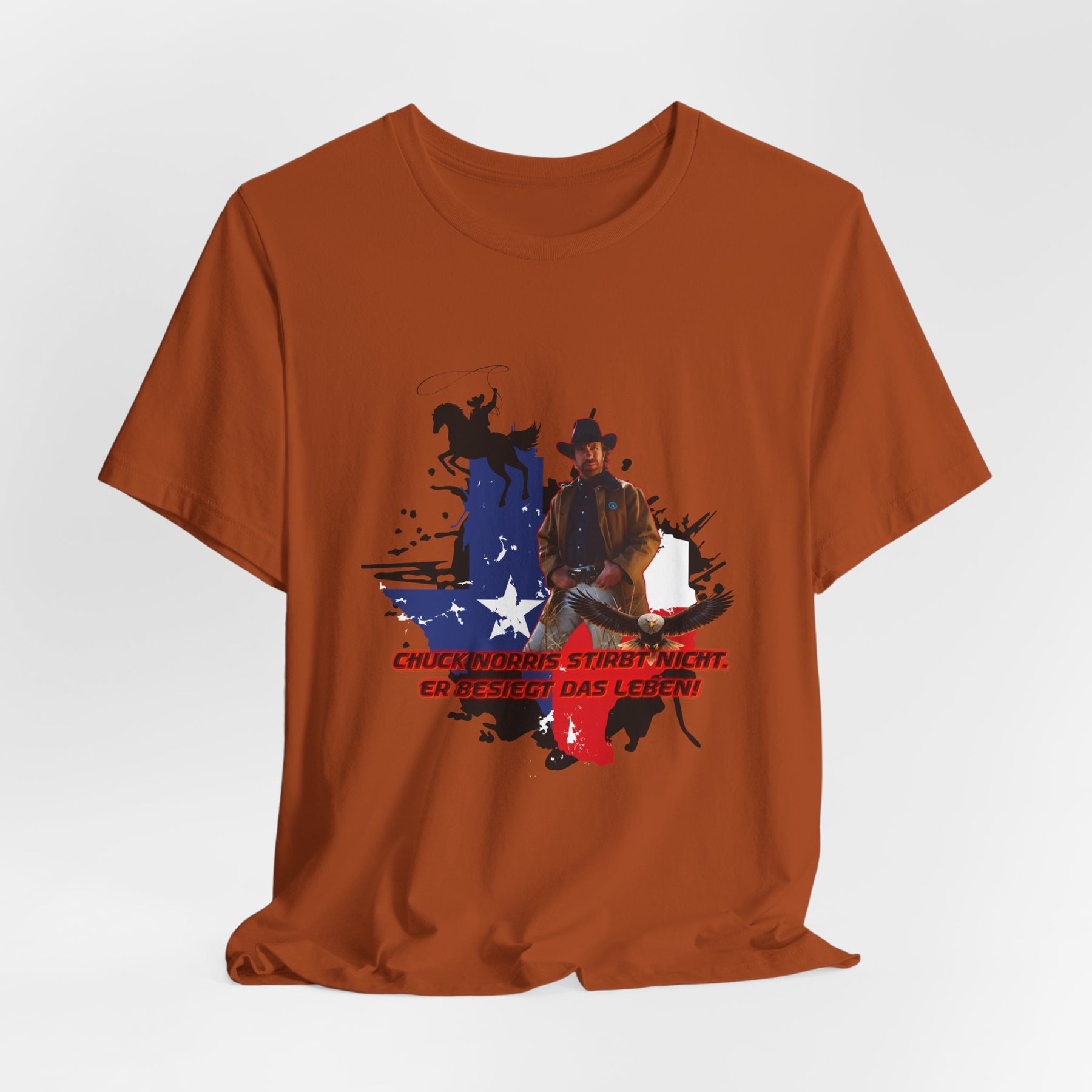Dieses leichte T-Shirt verkörpert modernen Western-Charme mit einem markanten Grafikprint: die Silhouette von Chuck über einer verwaschenen Texas-Flagge. Das Design erinnert an ein entspanntes Ausritt im Sonnenuntergang und lange Straßen – ein stilles Selbstvertrauen, nicht eine laute Prahlerei. Ob am Lagerfeuer im Garten, beim Rodeo oder in der Freizeit – dieses Shirt passt zu jedem Anlass perfekt und lässt sich mühelos mit Jeans, Stiefeln oder der Lieblingsjacke kombinieren. Atmungsaktive Airlume-Baumwolle sorgt für angenehme Kühlung, während der schlichte Rundhalsausschnitt sowohl solo als auch unter einem Hemd perfekt aussieht. Es ist für alle, die amerikanische Details und eine unaufdringliche Attitüde schätzen – vertraut, eingelaufen und bereit für das nächste kleine Abenteuer.