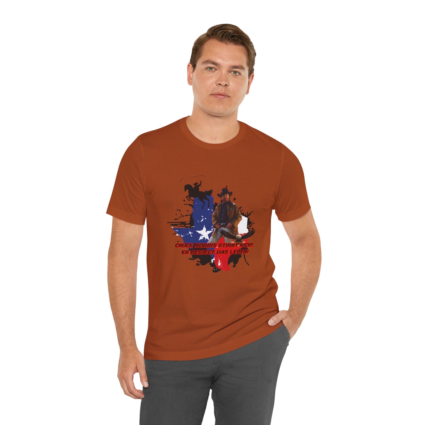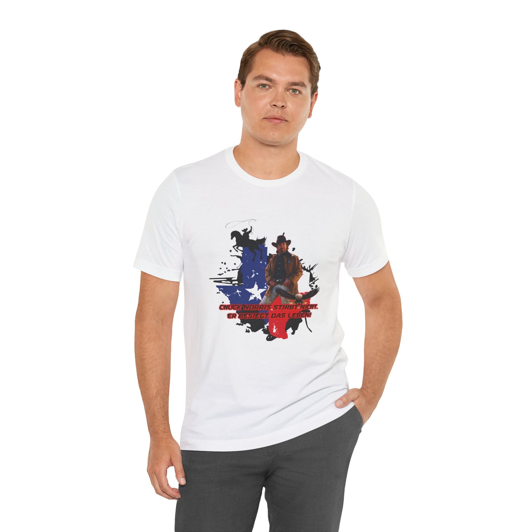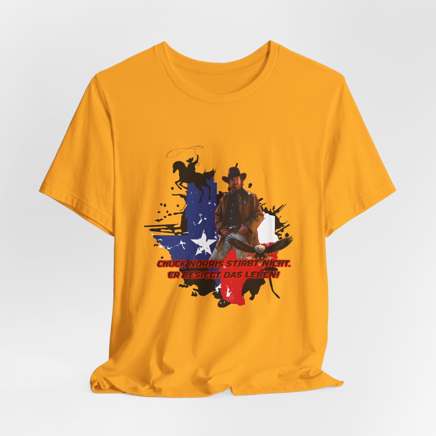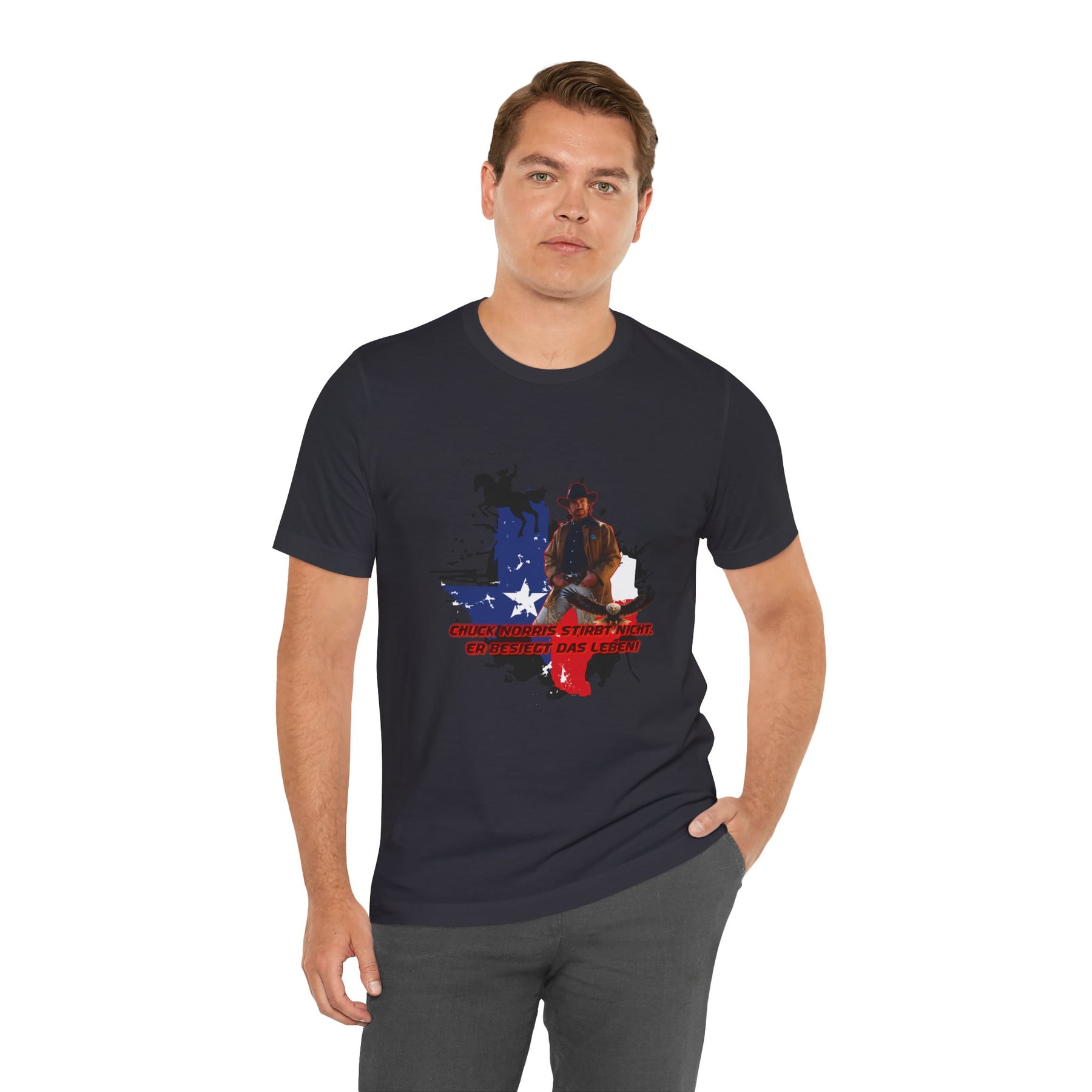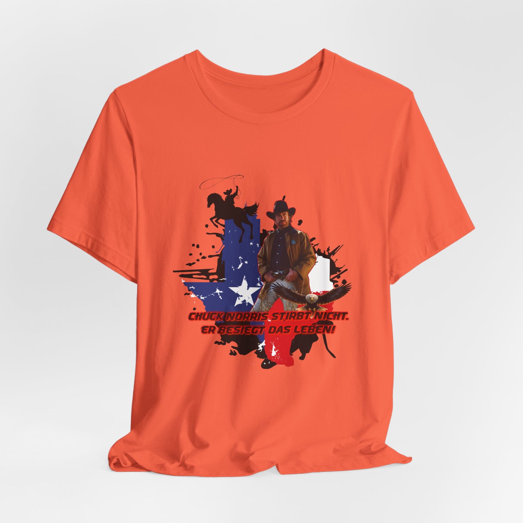 Dieses leichte T-Shirt verkörpert modernen Western-Charme mit einem markanten Grafikprint: die Silhouette von Chuck über einer verwaschenen Texas-Flagge. Das Design erinnert an ein entspanntes Ausritt im Sonnenuntergang und lange Straßen – ein stilles Selbstvertrauen, nicht eine laute Prahlerei. Ob am Lagerfeuer im Garten, beim Rodeo oder in der Freizeit – dieses Shirt passt zu jedem Anlass perfekt und lässt sich mühelos mit Jeans, Stiefeln oder der Lieblingsjacke kombinieren. Atmungsaktive Airlume-Baumwolle sorgt für angenehme Kühlung, während der schlichte Rundhalsausschnitt sowohl solo als auch unter einem Hemd perfekt aussieht. Es ist für alle, die amerikanische Details und eine unaufdringliche Attitüde schätzen – vertraut, eingelaufen und bereit für das nächste kleine Abenteuer.