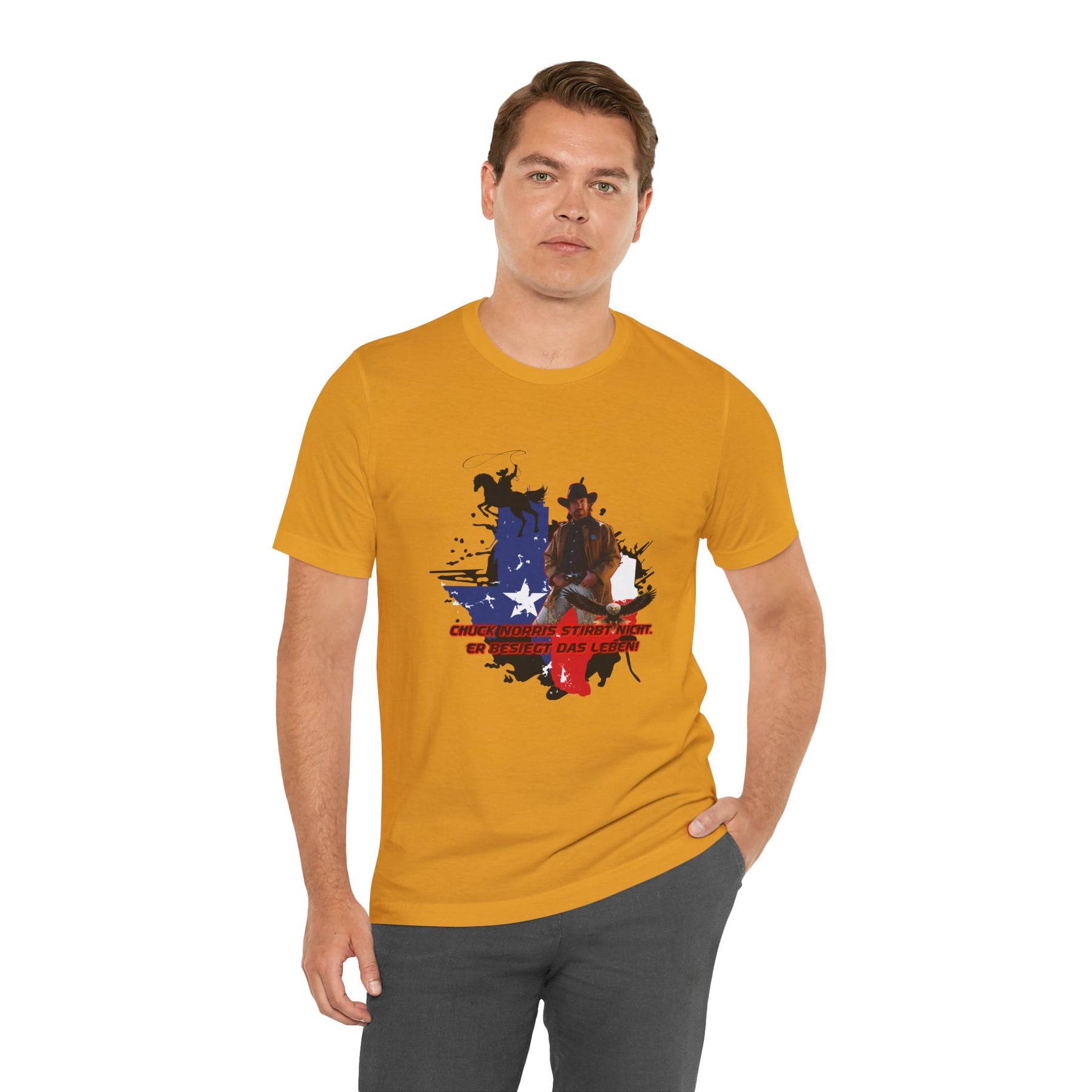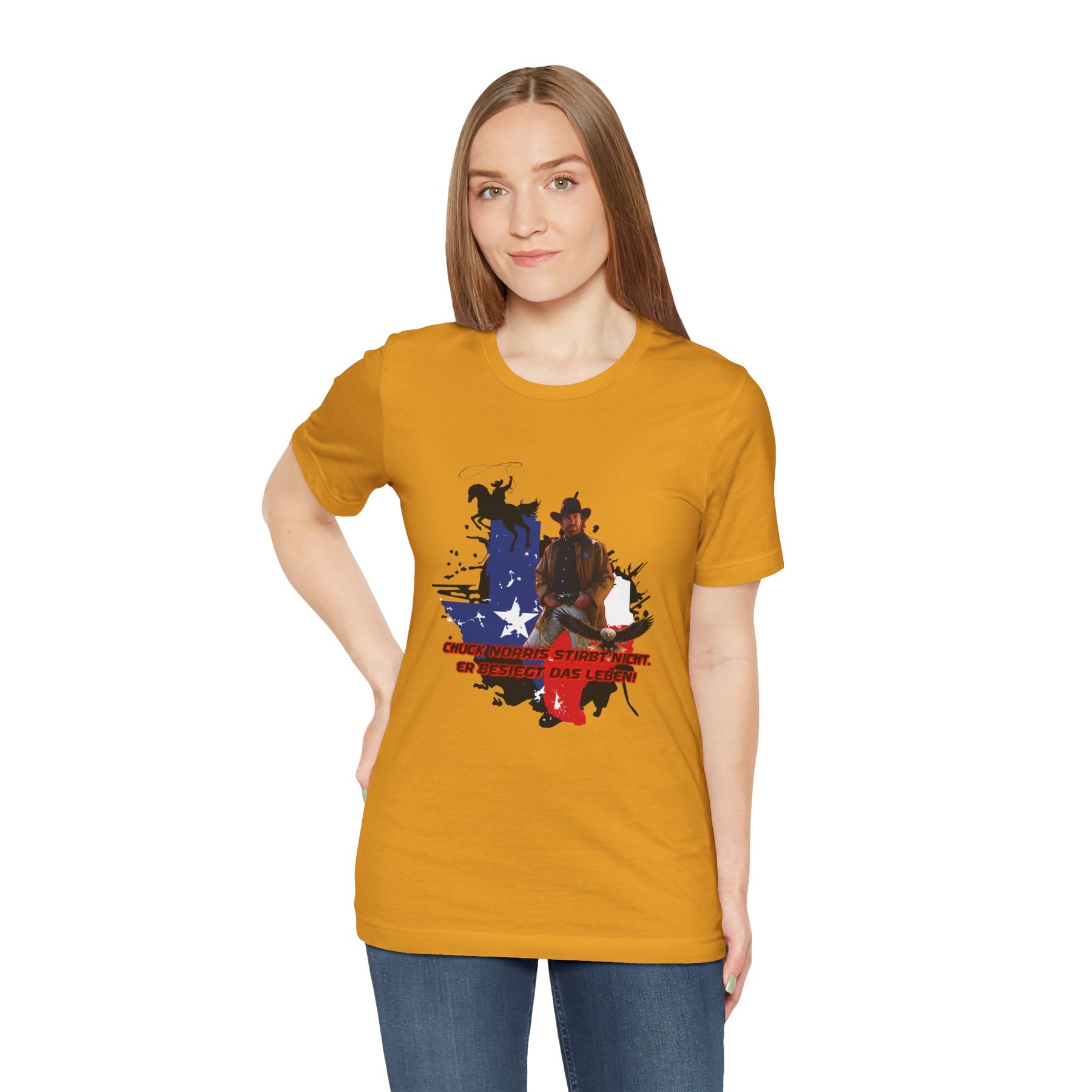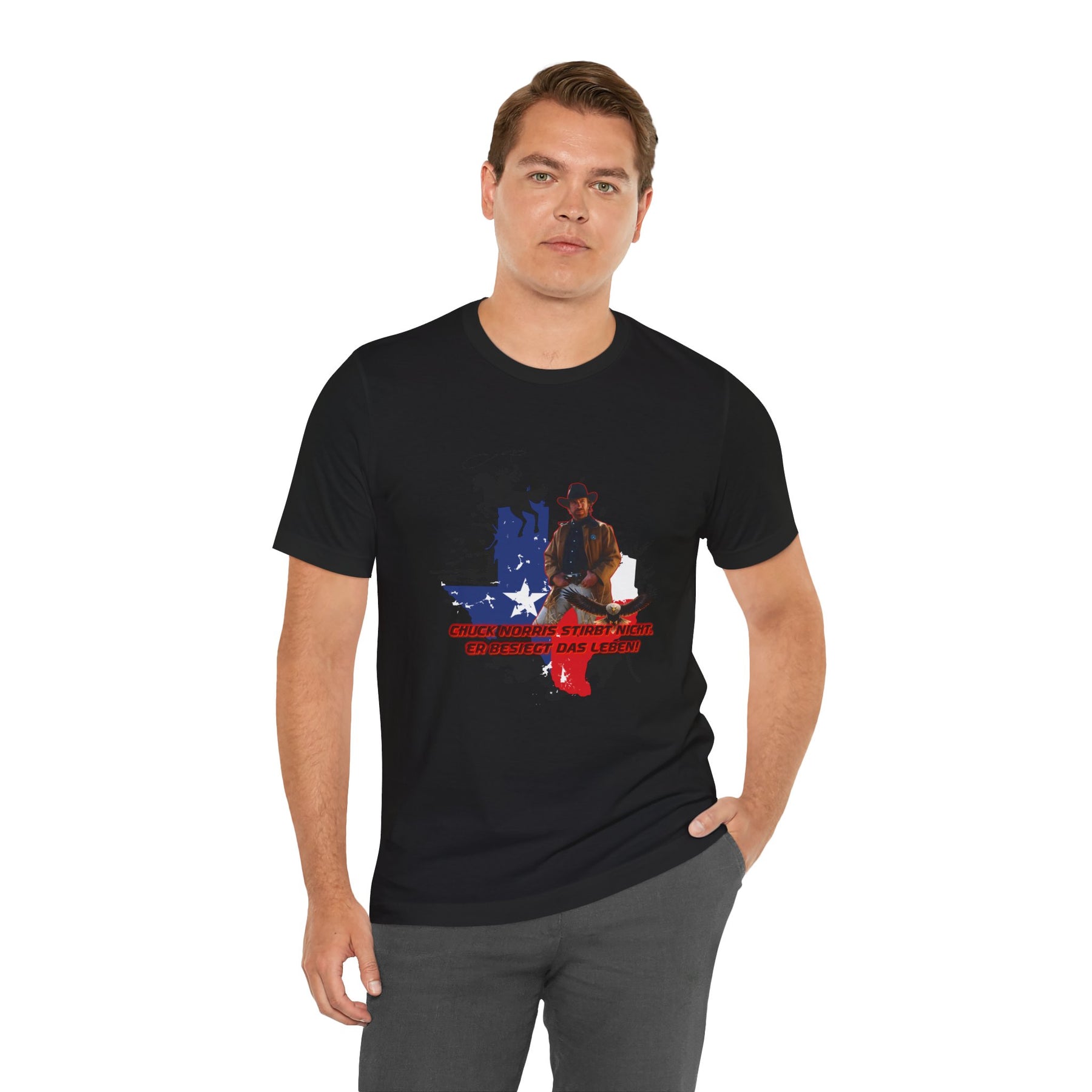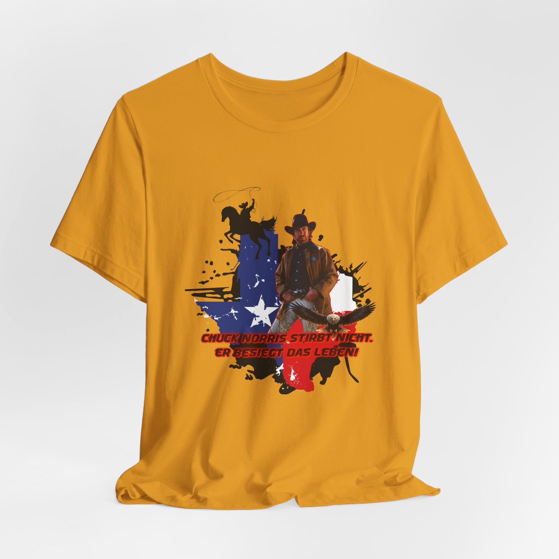 Dieses leichte T-Shirt verkörpert modernen Western-Charme mit einem markanten Grafikprint: die Silhouette von Chuck über einer verwaschenen Texas-Flagge. Das Design erinnert an ein entspanntes Ausritt im Sonnenuntergang und lange Straßen – ein stilles Selbstvertrauen, nicht eine laute Prahlerei. Ob am Lagerfeuer im Garten, beim Rodeo oder in der Freizeit – dieses Shirt passt zu jedem Anlass perfekt und lässt sich mühelos mit Jeans, Stiefeln oder der Lieblingsjacke kombinieren. Atmungsaktive Airlume-Baumwolle sorgt für angenehme Kühlung, während der schlichte Rundhalsausschnitt sowohl solo als auch unter einem Hemd perfekt aussieht. Es ist für alle, die amerikanische Details und eine unaufdringliche Attitüde schätzen – vertraut, eingelaufen und bereit für das nächste kleine Abenteuer.