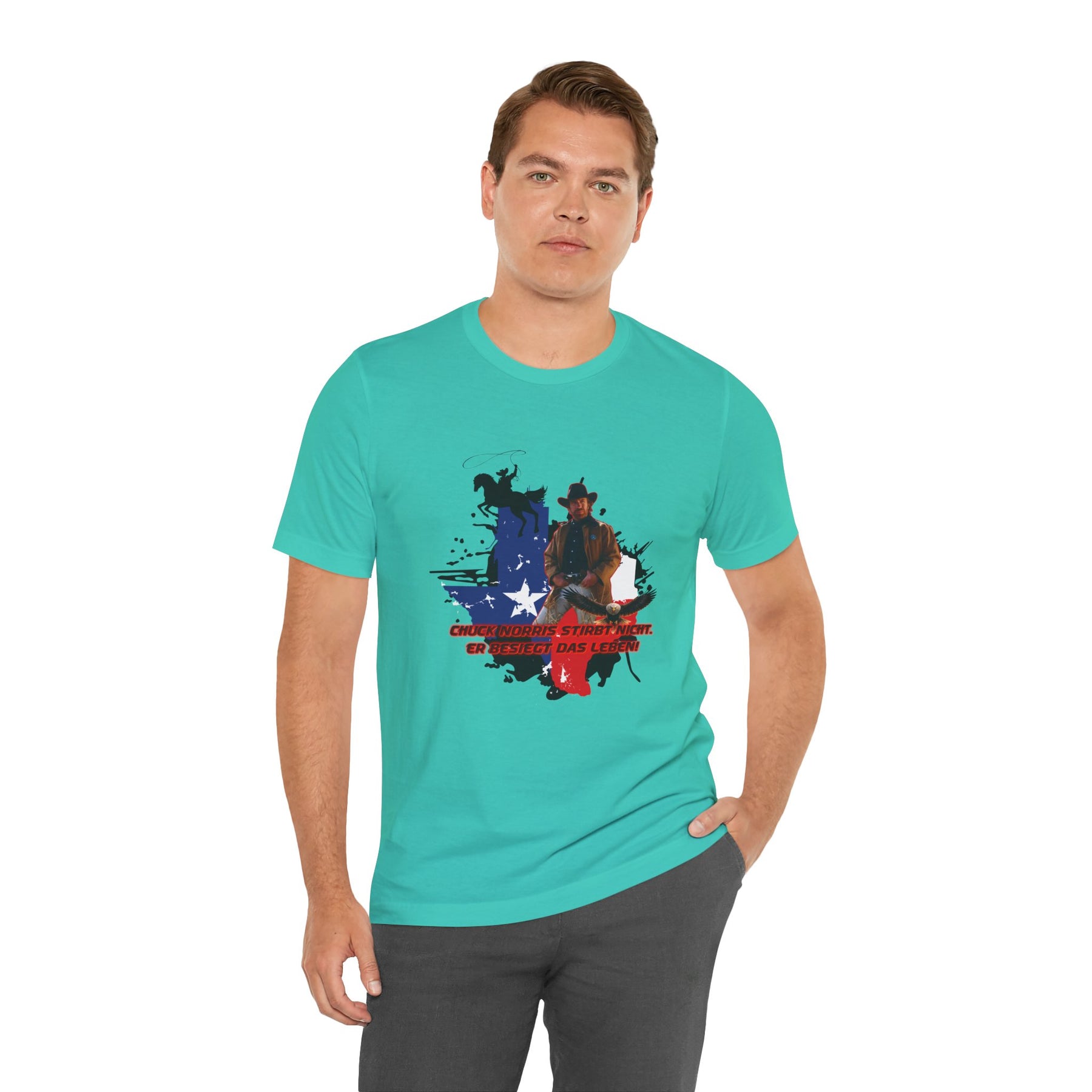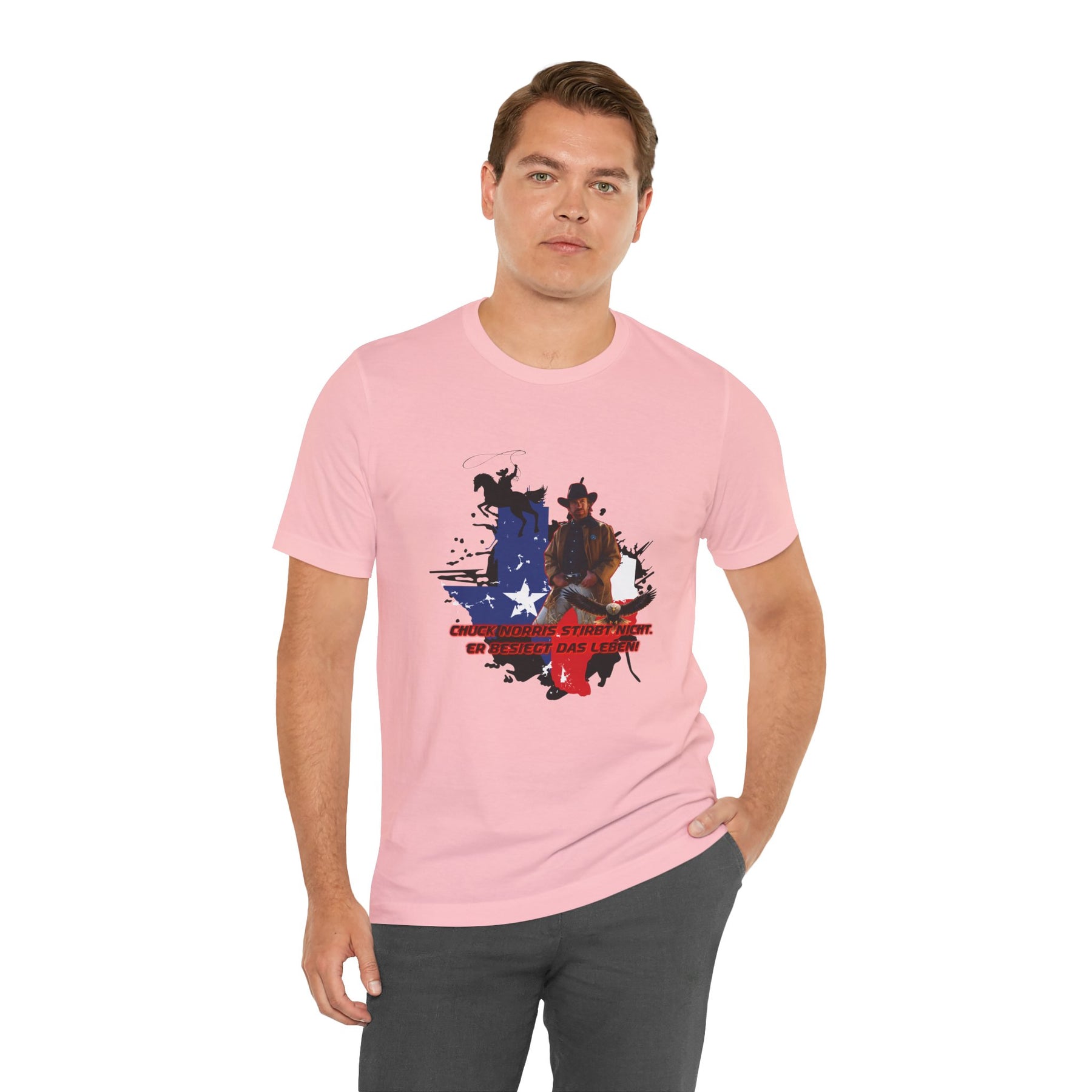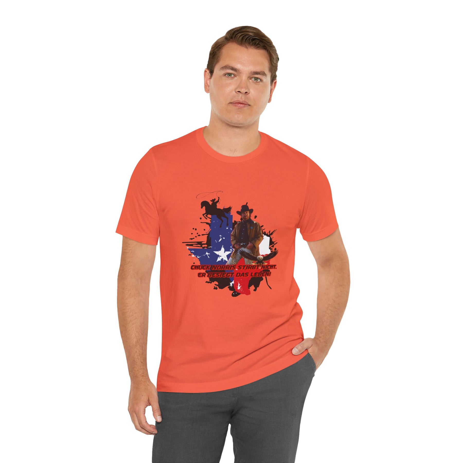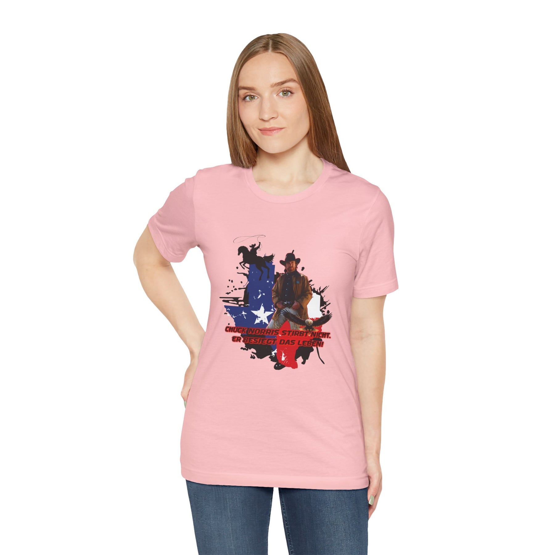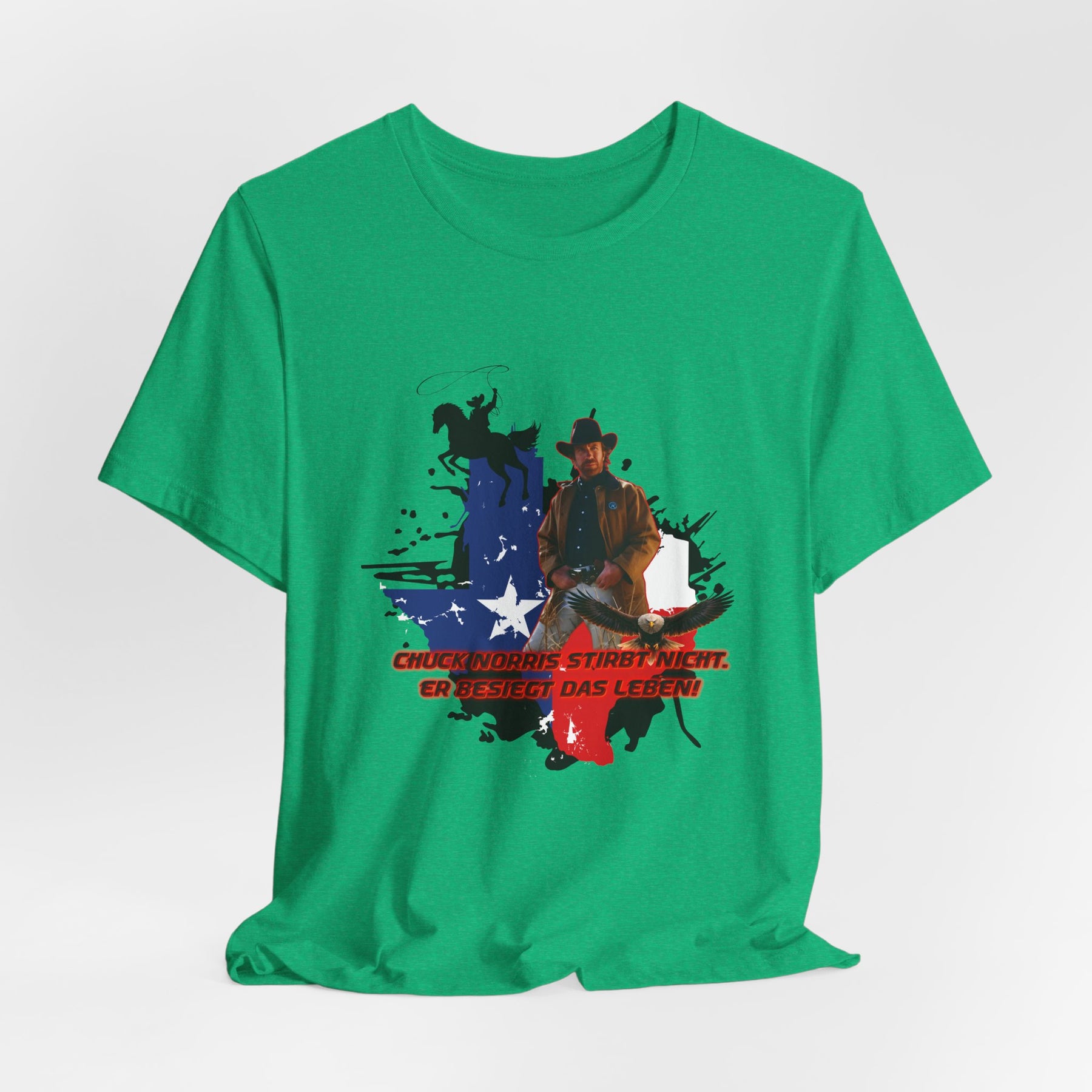Dieses leichte T-Shirt verkörpert modernen Western-Charme mit einem markanten Grafikprint: die Silhouette von Chuck über einer verwaschenen Texas-Flagge. Das Design erinnert an ein entspanntes Ausritt im Sonnenuntergang und lange Straßen – ein stilles Selbstvertrauen, nicht eine laute Prahlerei. Ob am Lagerfeuer im Garten, beim Rodeo oder in der Freizeit – dieses Shirt passt zu jedem Anlass perfekt und lässt sich mühelos mit Jeans, Stiefeln oder der Lieblingsjacke kombinieren. Atmungsaktive Airlume-Baumwolle sorgt für angenehme Kühlung, während der schlichte Rundhalsausschnitt sowohl solo als auch unter einem Hemd perfekt aussieht. Es ist für alle, die amerikanische Details und eine unaufdringliche Attitüde schätzen – vertraut, eingelaufen und bereit für das nächste kleine Abenteuer.