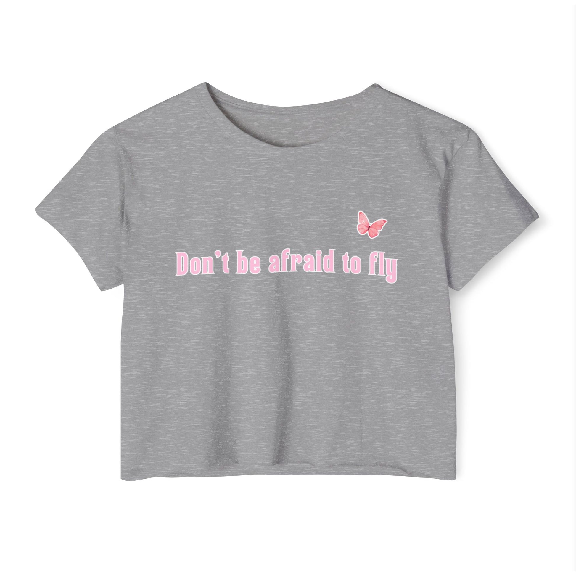 This playful crop tee is more than just a style piece â it's a gentle reminder to rise above fear and embrace your growth. The soft pink butterfly symbolizes transformation, courage, and lightness â ideal for anyone ready to take flight in their own direction. Pair it with high-waisted jeans or shorts for a cute and confident look.
