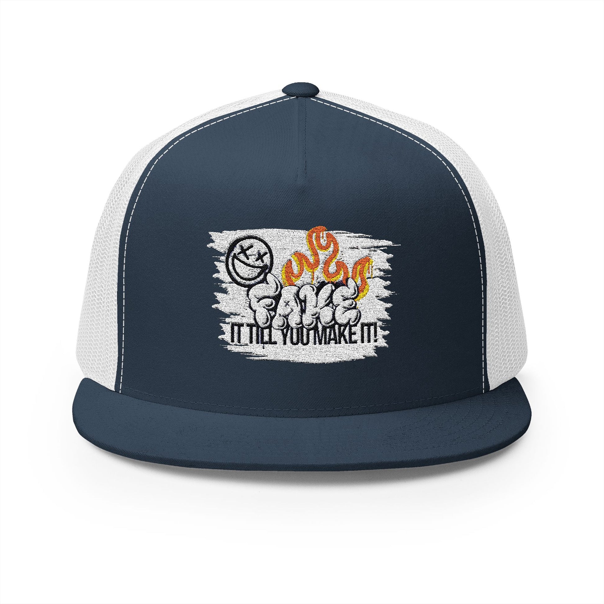 Embroidered 5 Panel Trucker Cap - Fake it til you make it