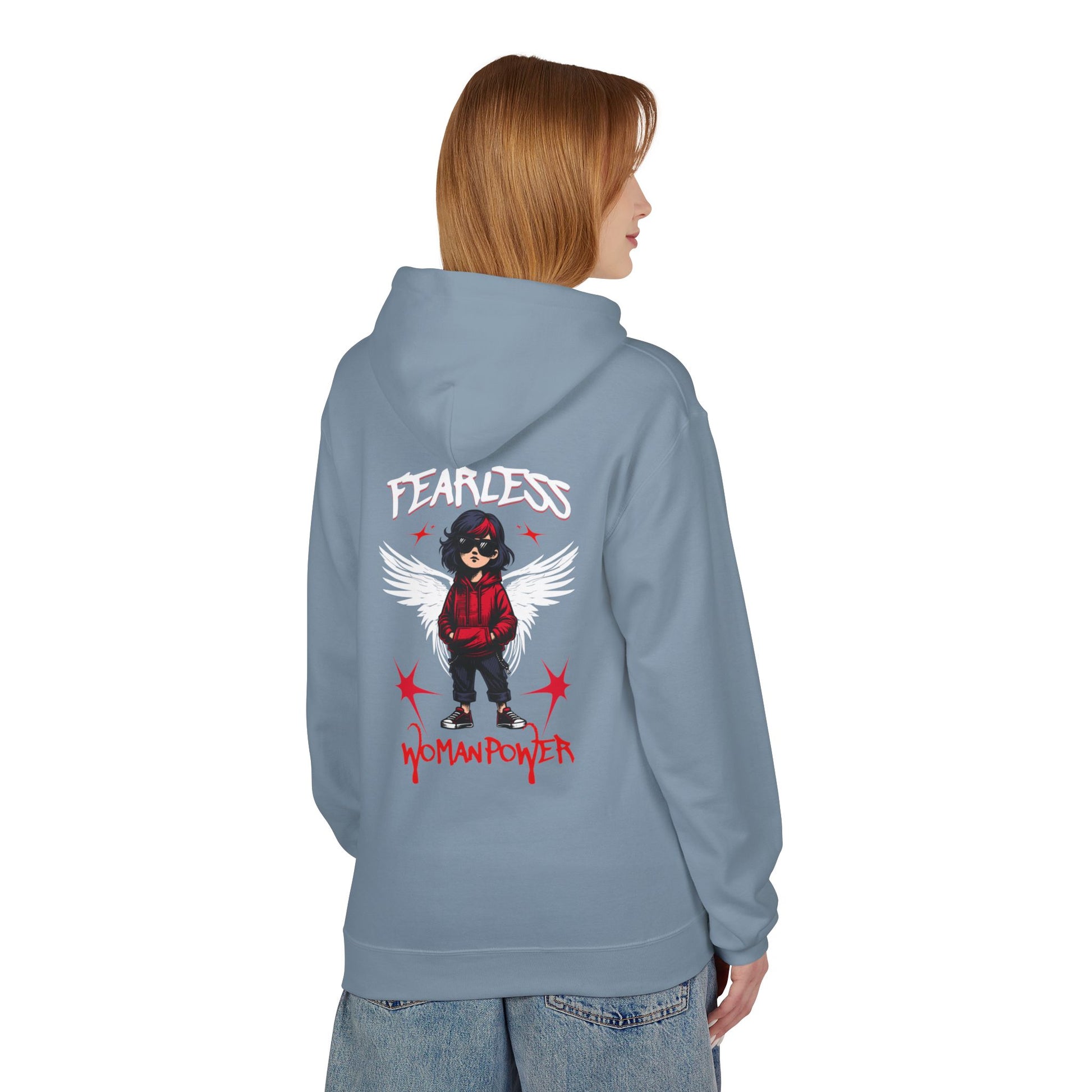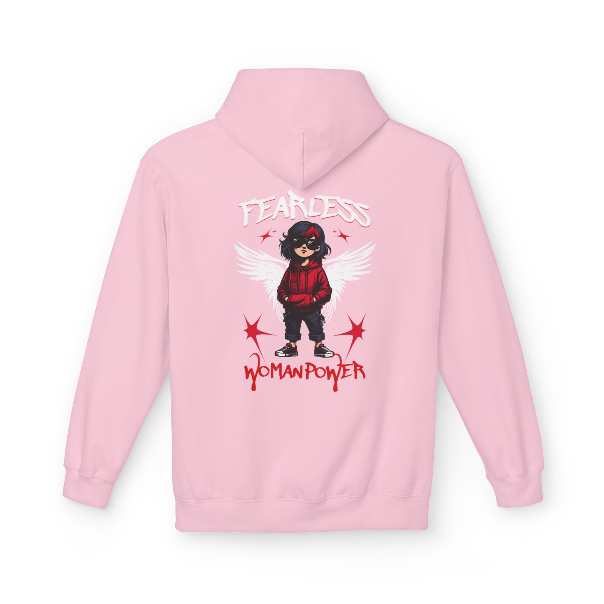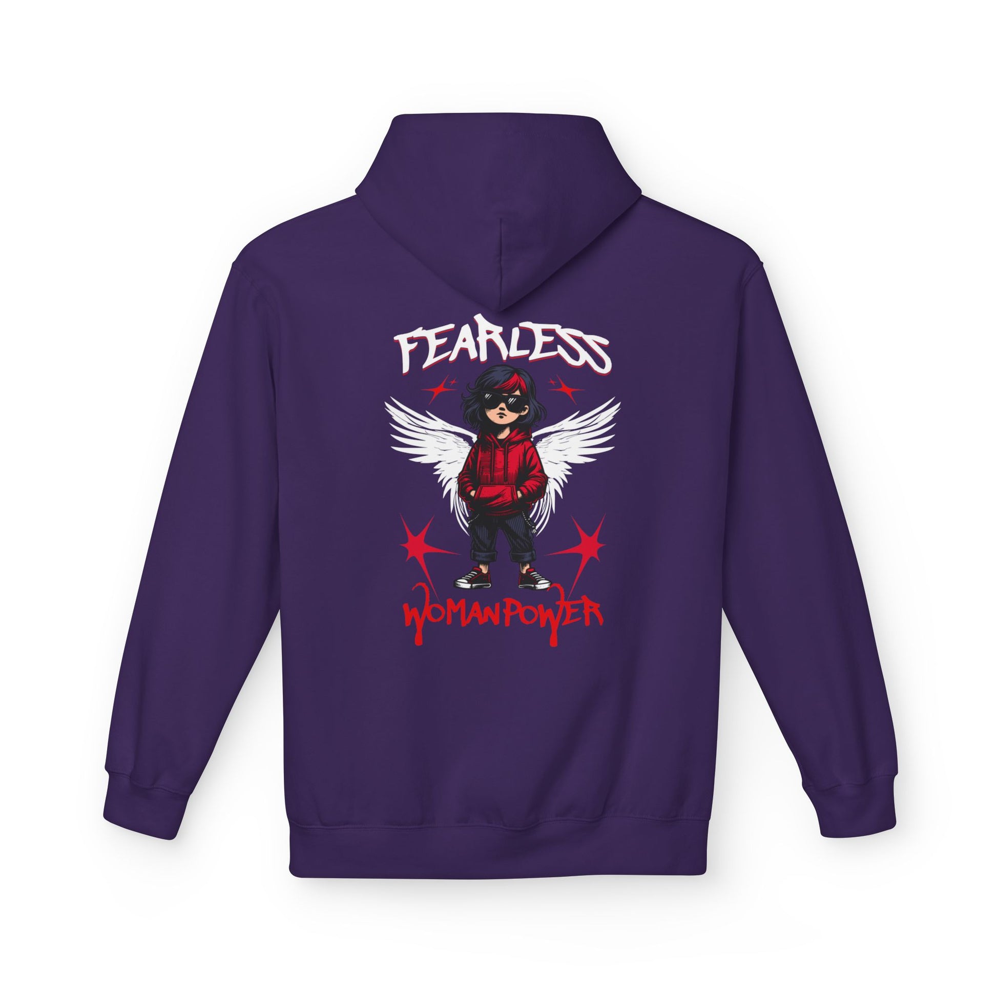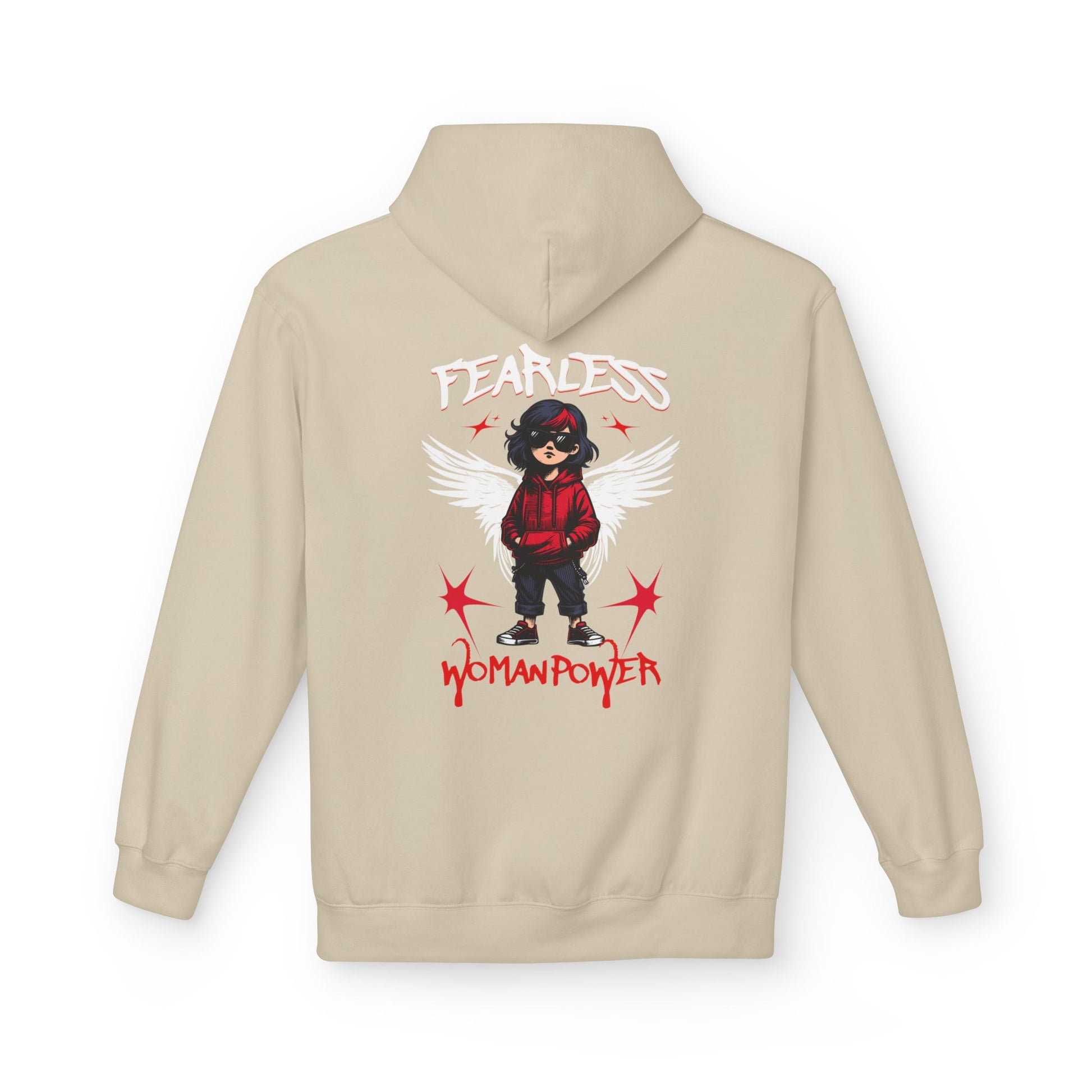 Bold, wild, and free â this hoodie is made for those who donât take no for an answer. Featuring a street-cool cartoon girl with angel wings, and the striking slogans Fearless and Woman Power, this piece shouts confidence and rebellion in all the right ways. Your story, your style, your rules.