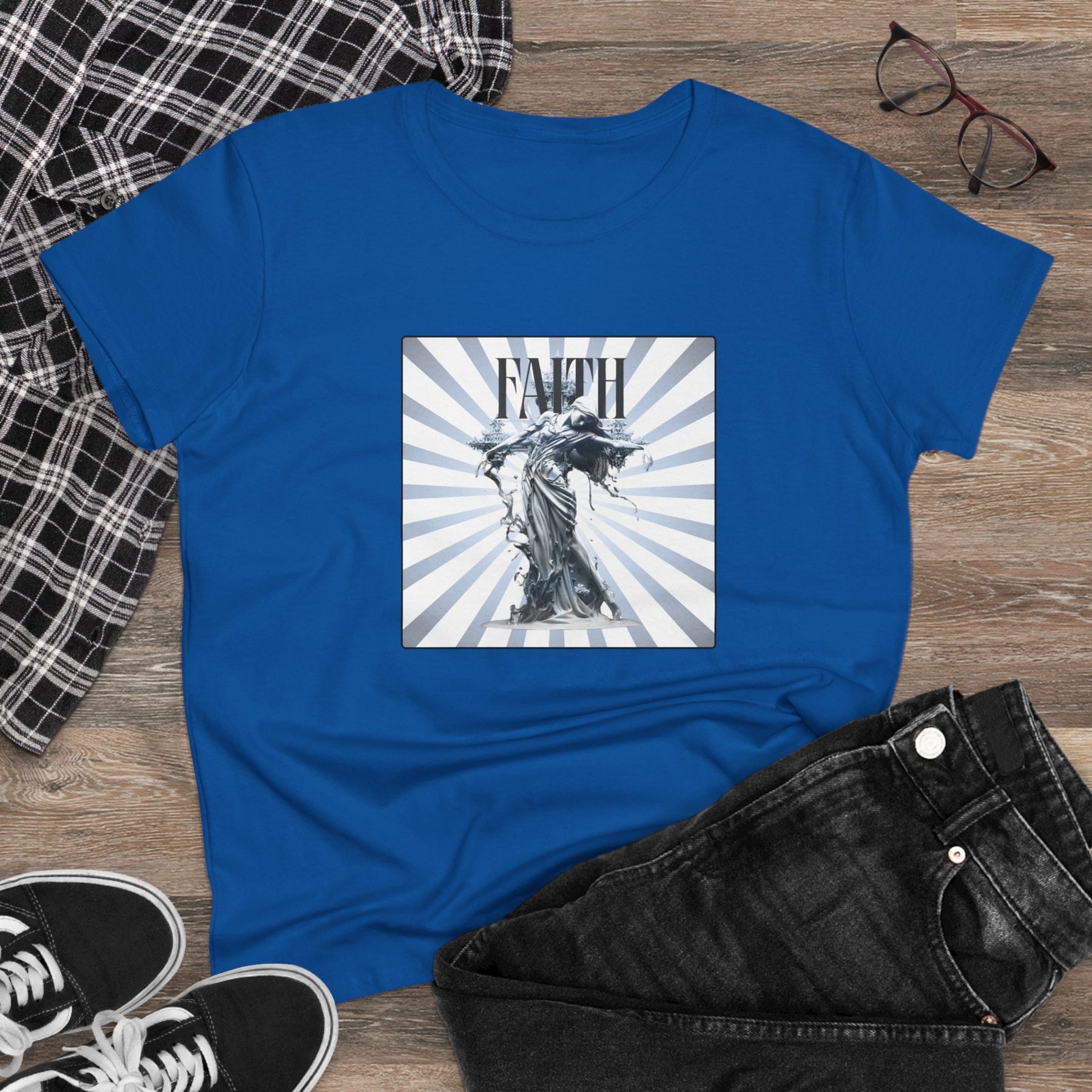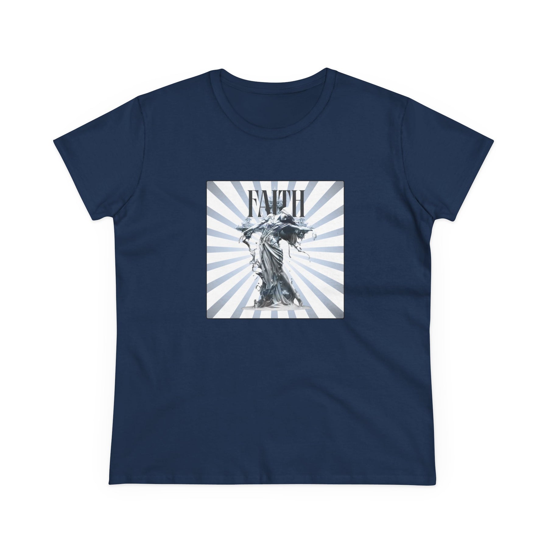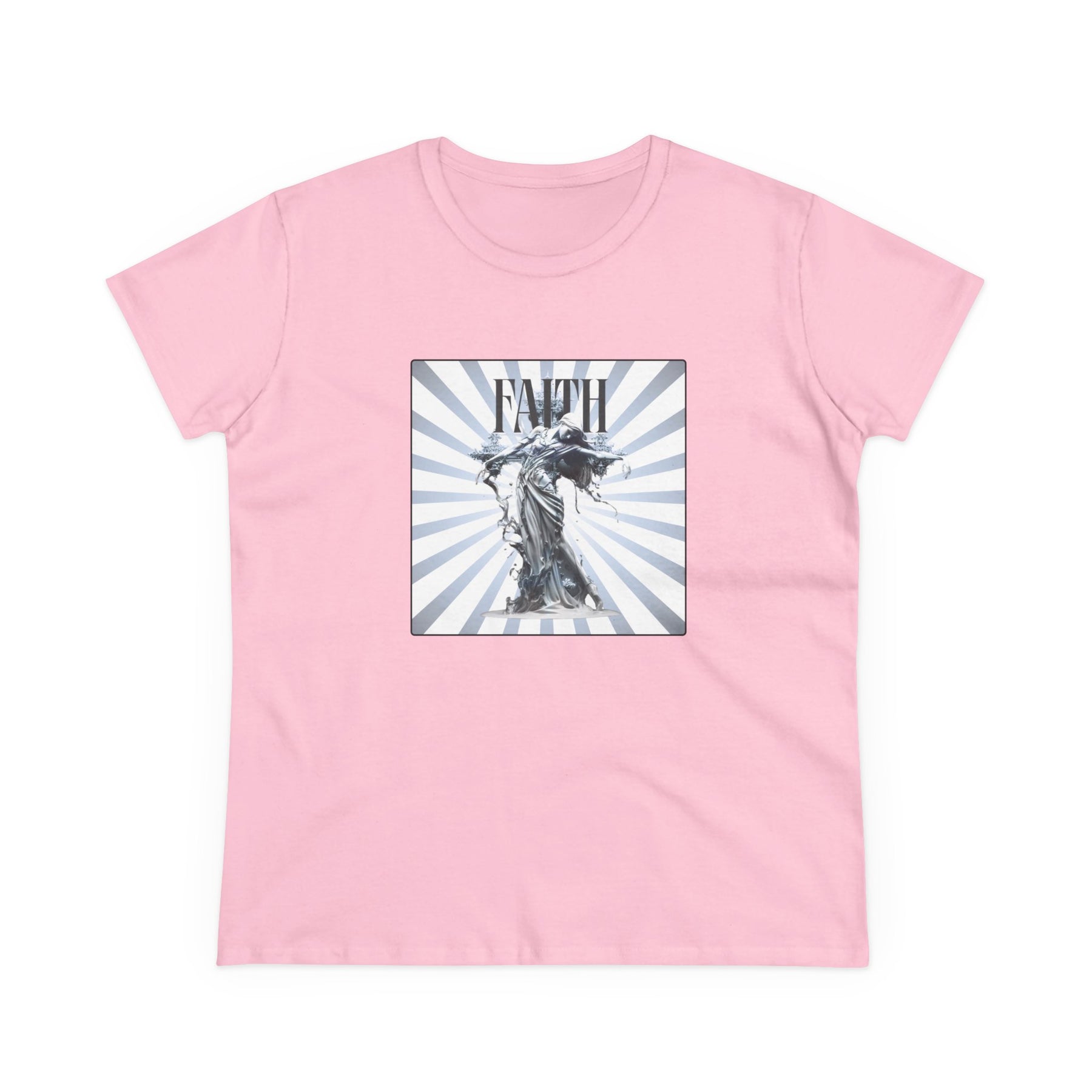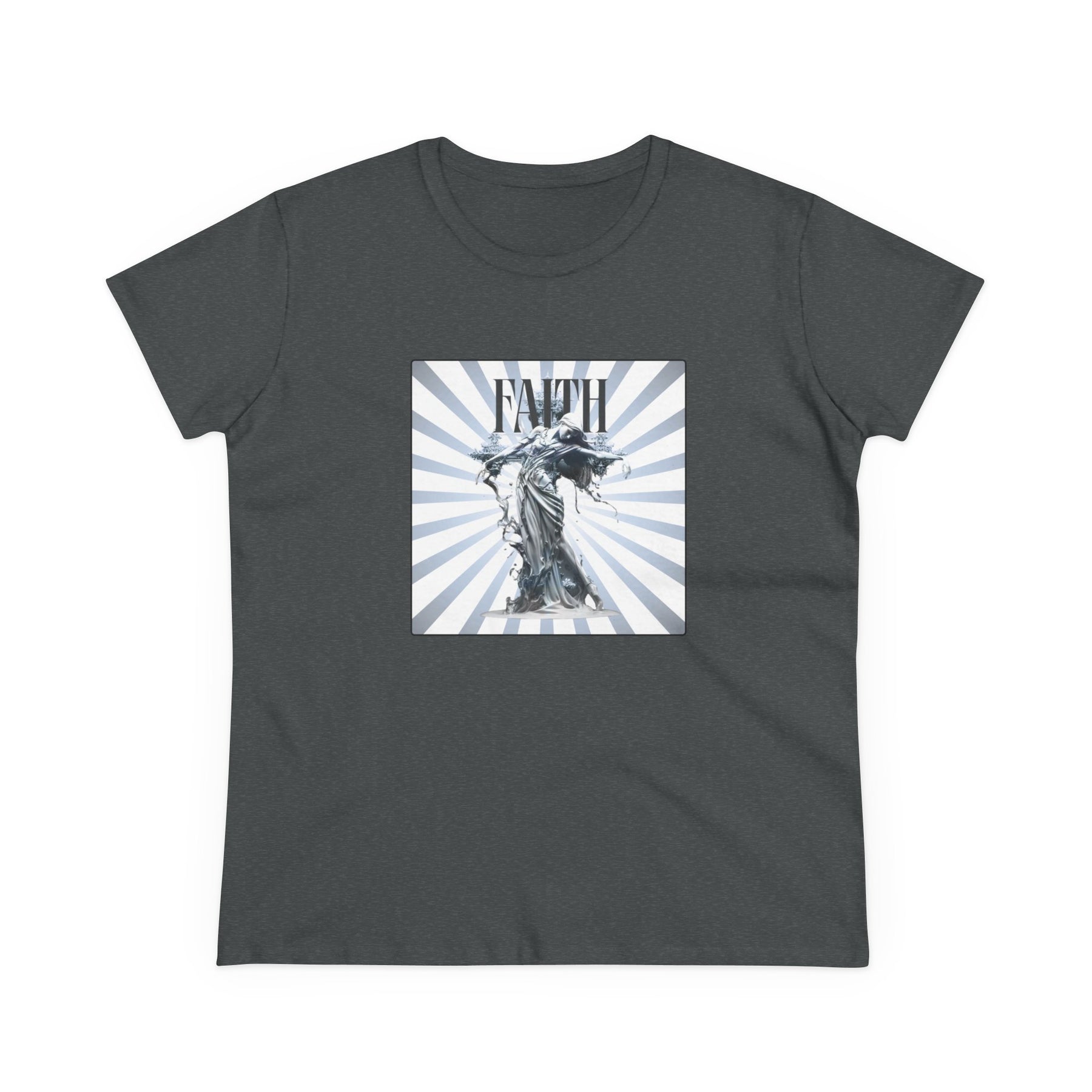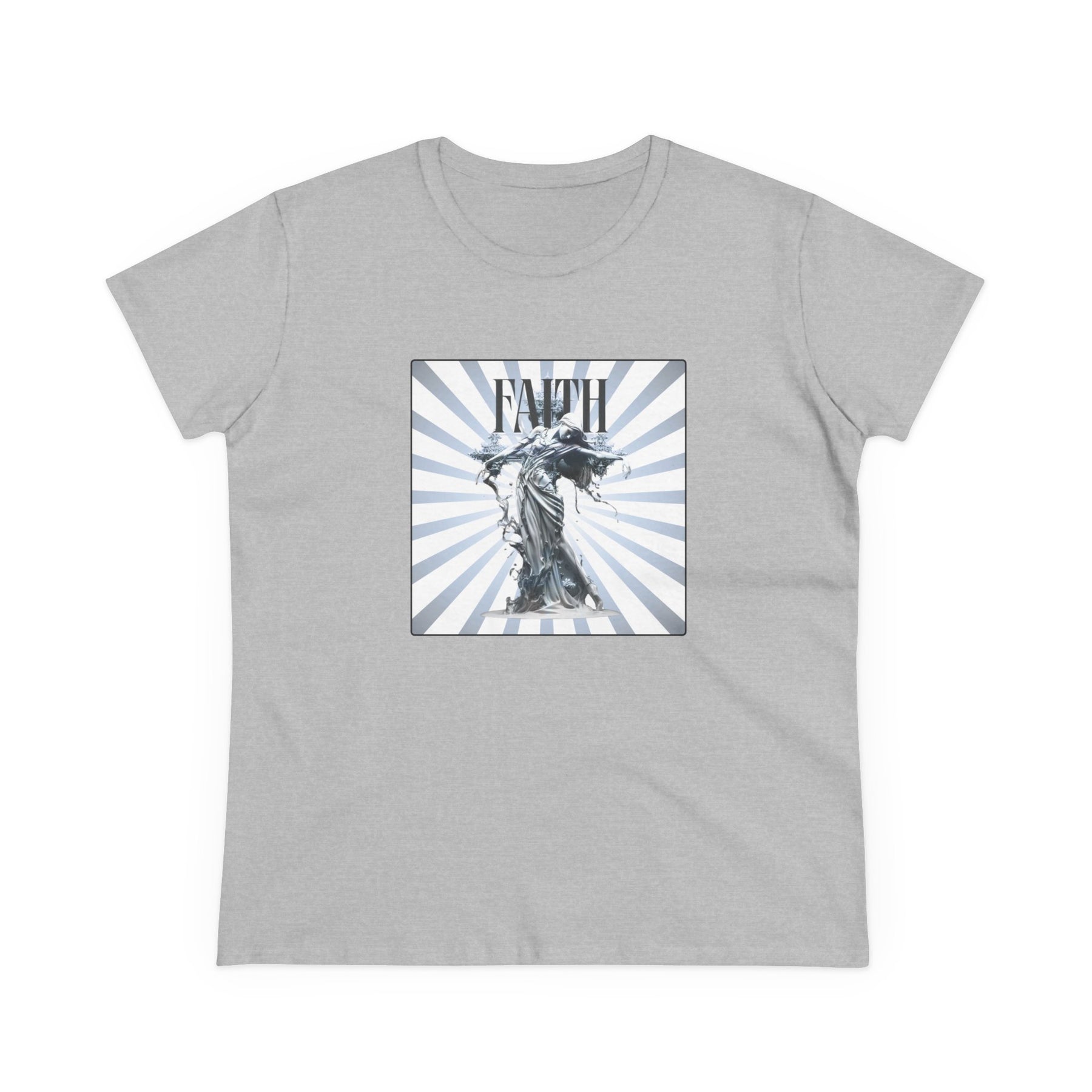 Schriftzug: „Faith“ über dem Kreuz – leicht gebogen oder schwebend gesetzt