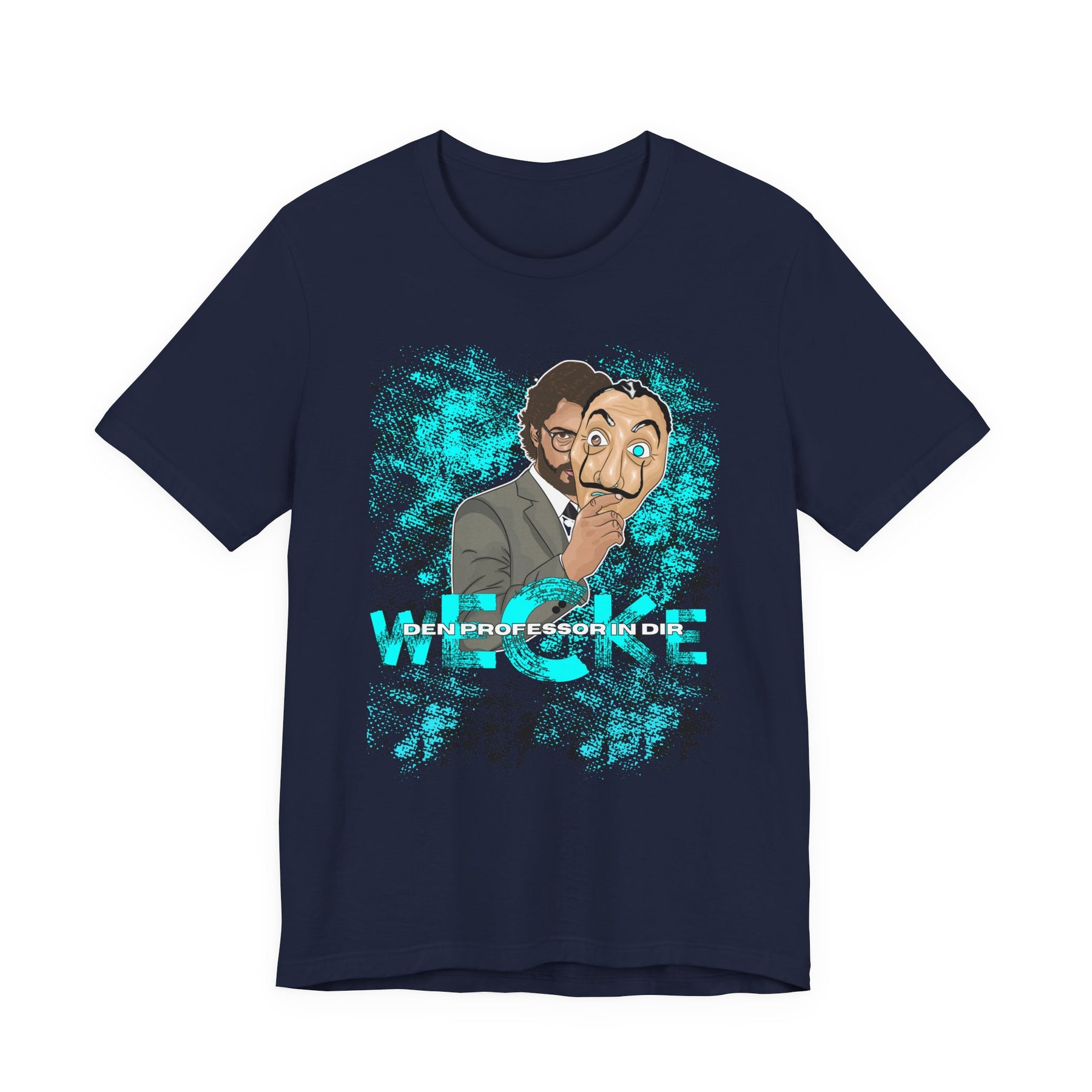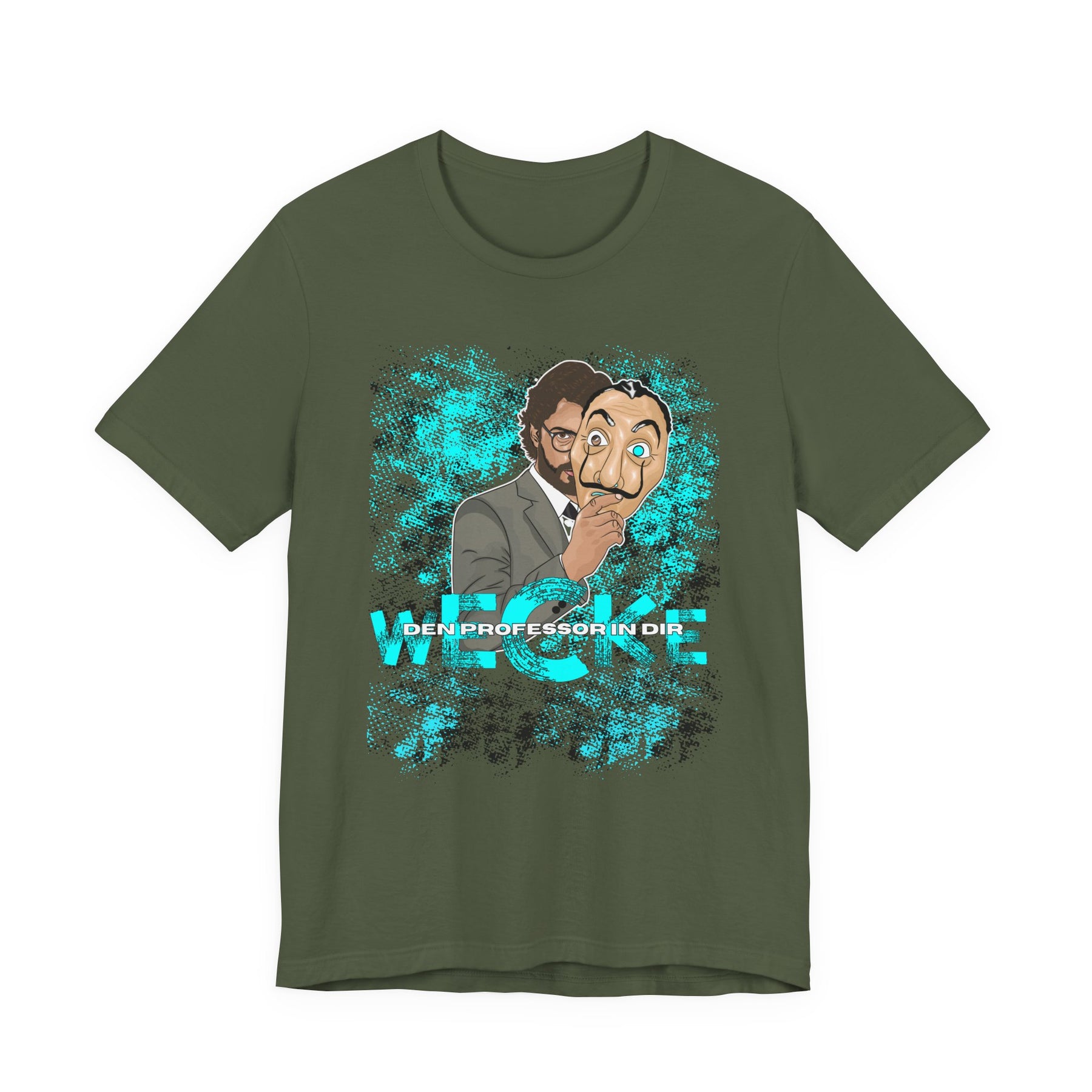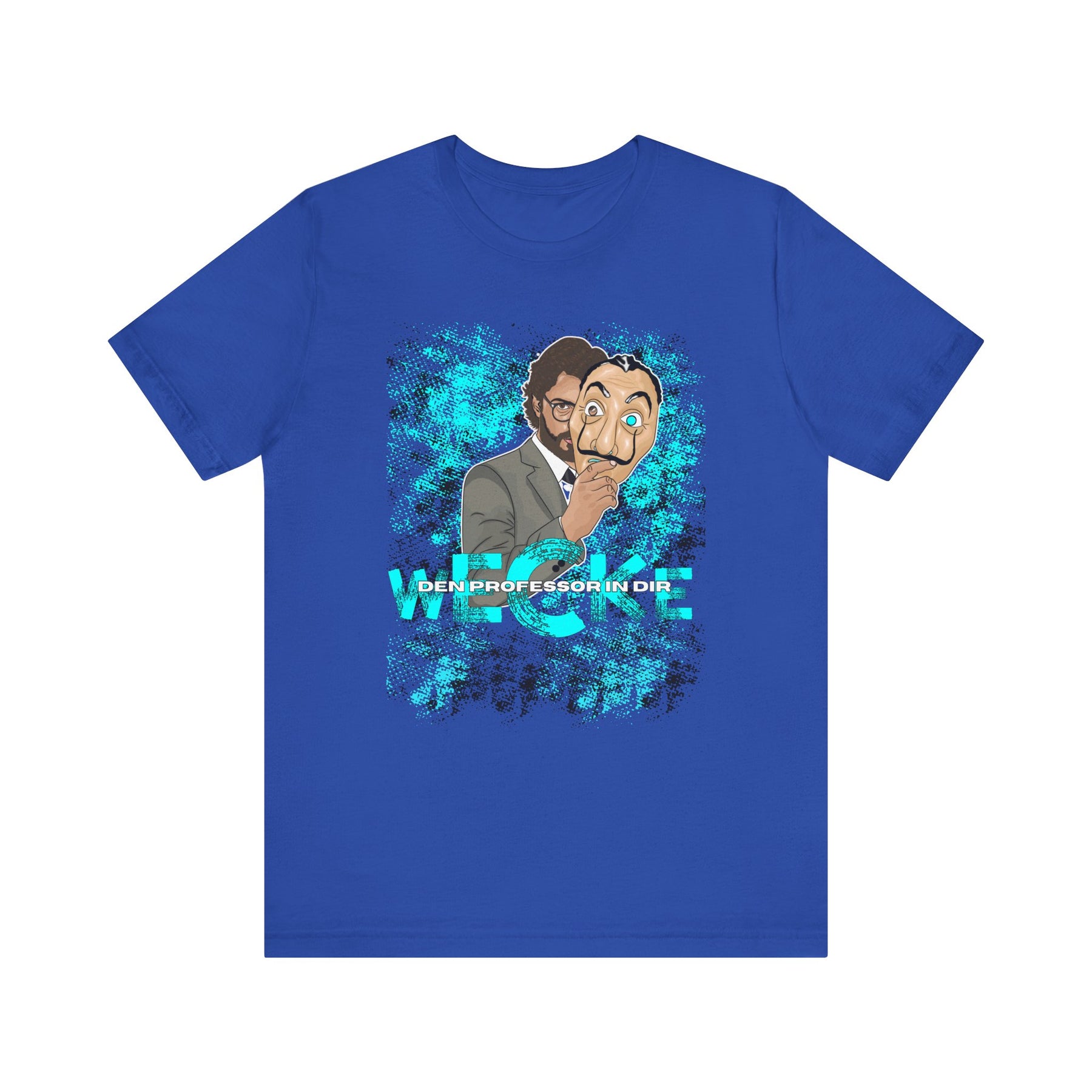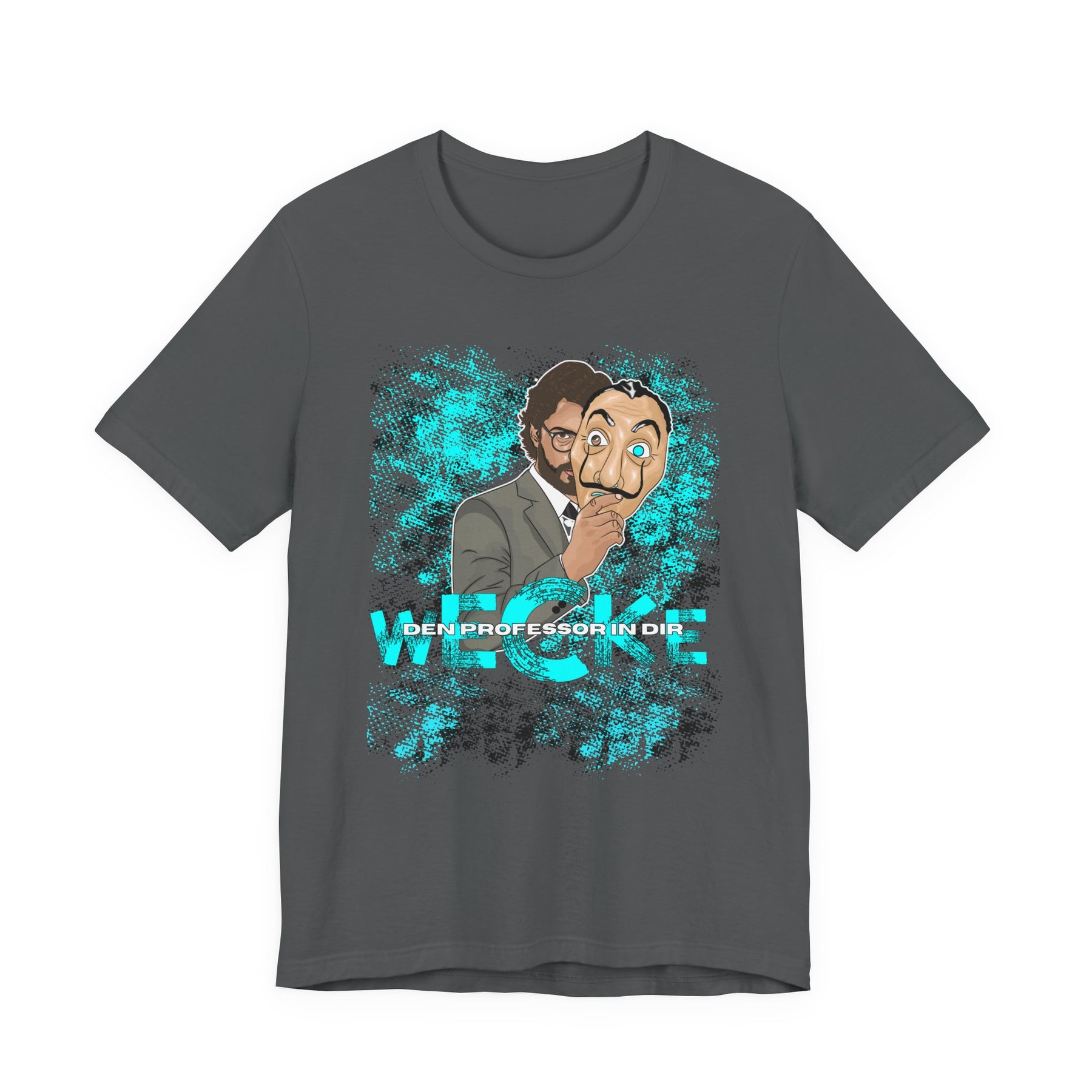 Dieses T-Shirt ist eine Hommage an den genialsten Kopf des berühmtesten Coups der Seriengeschichte: El Profesor. Mit stylishem Graffiti-Splash, der ikonischen Dalí-Maske und dem Satz „Den Professor in sich wecken“ bist du bereit für deinen eigenen Masterplan – egal ob du den Tag eroberst oder einfach nur lässig aussiehst.