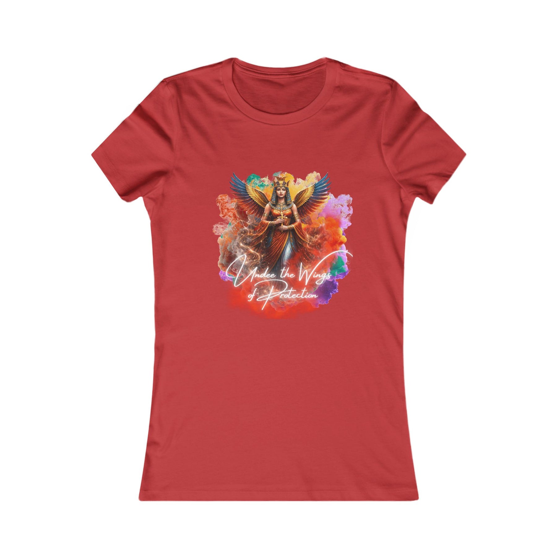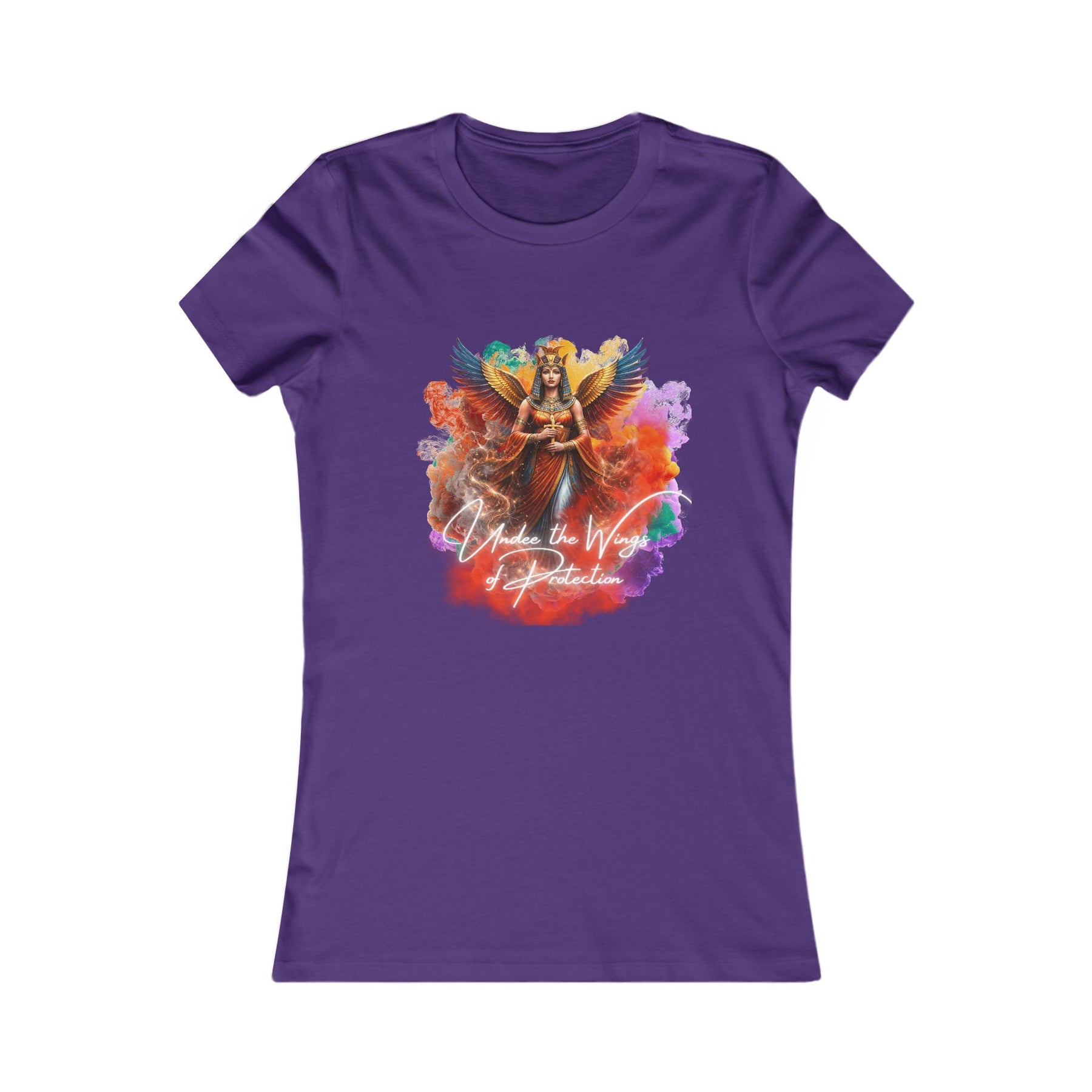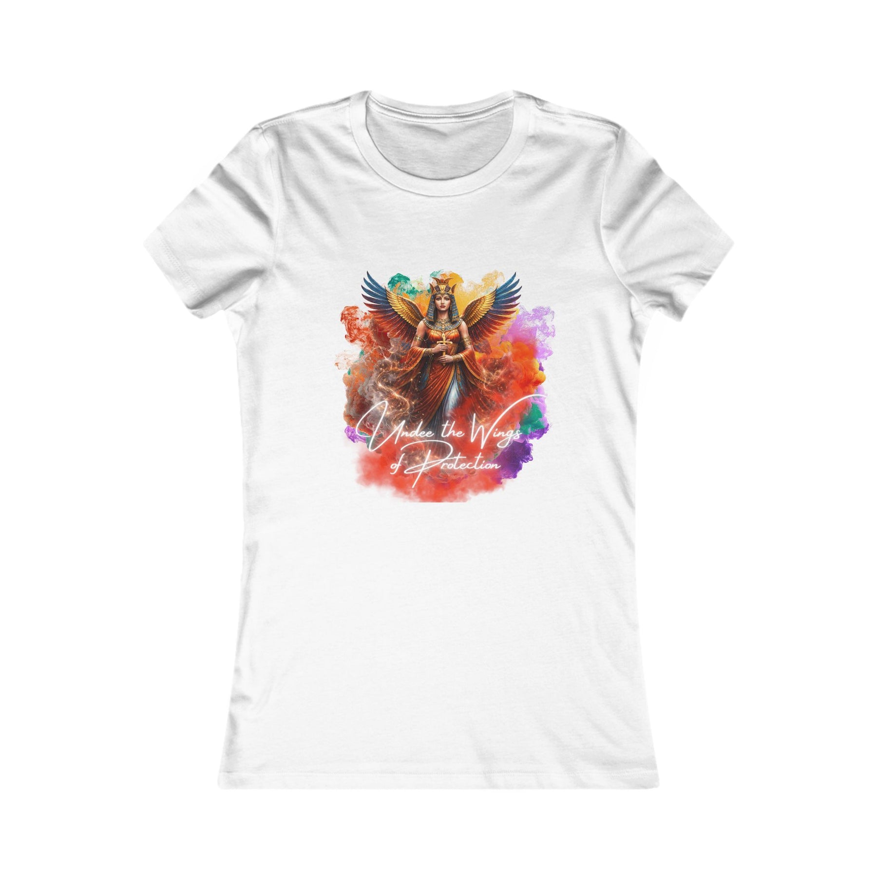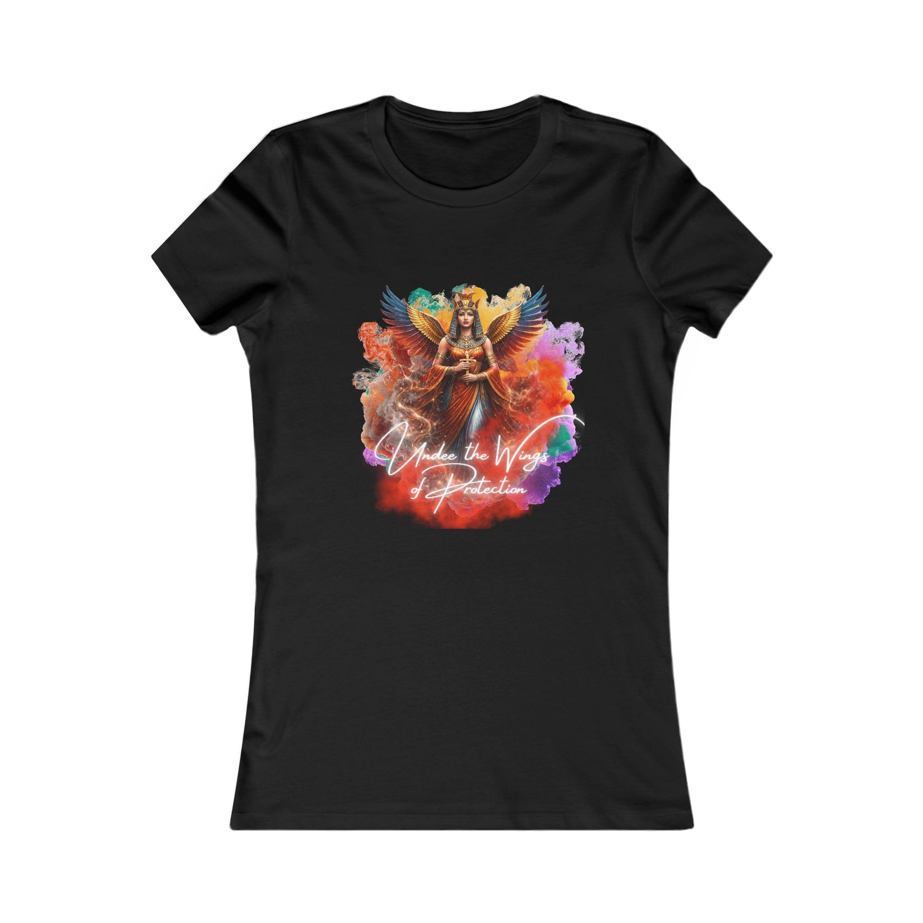 Dieses leichte, figurbetonte T-Shirt besticht durch einen lebendigen, aquarellartigen Print einer geflügelten Schutzgestalt. Die weiche, atmungsaktive Baumwolle fühlt sich angenehm auf der Haut an und fällt dank des längeren Schnitts schmeichelhaft und modern. Dezente Details wie Seitennähte, Schulterband und ein gerippter Strickkragen sorgen dafür, dass das Shirt auch nach vielen Wäschen formstabil bleibt. Der Print vermittelt eine positive, schützende Energie und erinnert an Stärke und Anmut. Tragen Sie es an warmen Tagen oder in ruhigen Abenden solo unter einer Jacke oder solo.