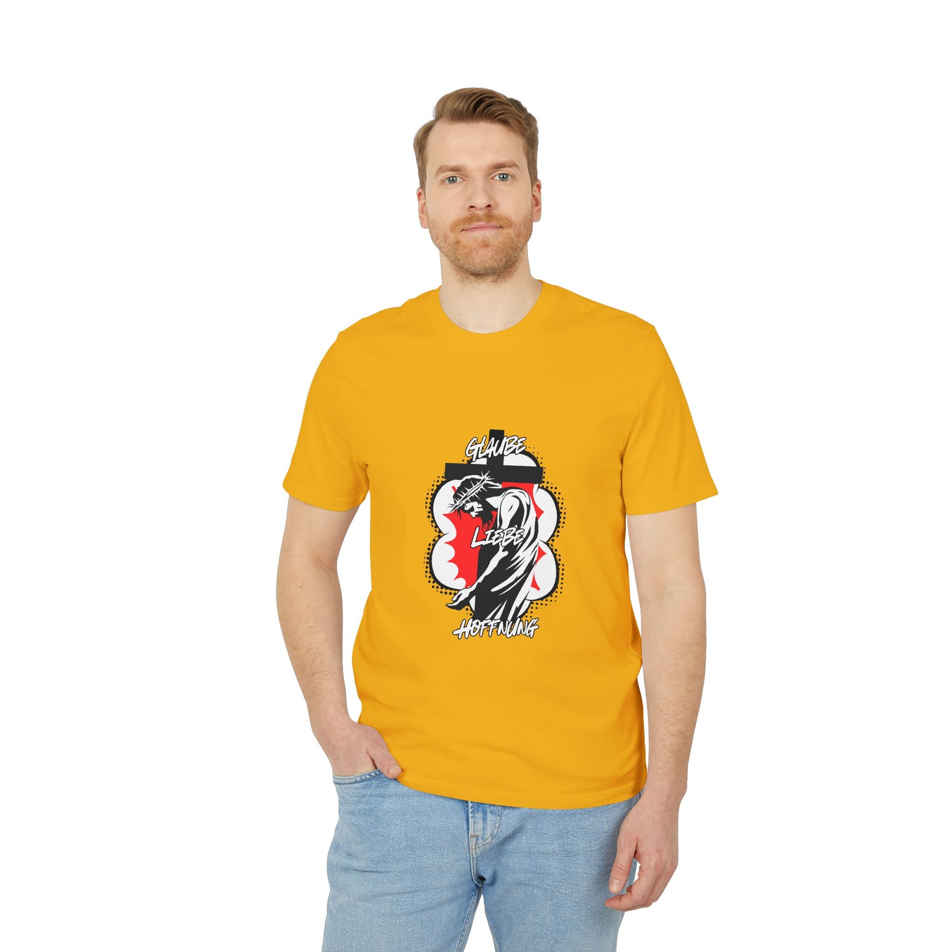 Dieses T-Shirt bringt die drei stärksten Werte des Lebens auf den Punkt: Glaube, Liebe, Hoffnung.