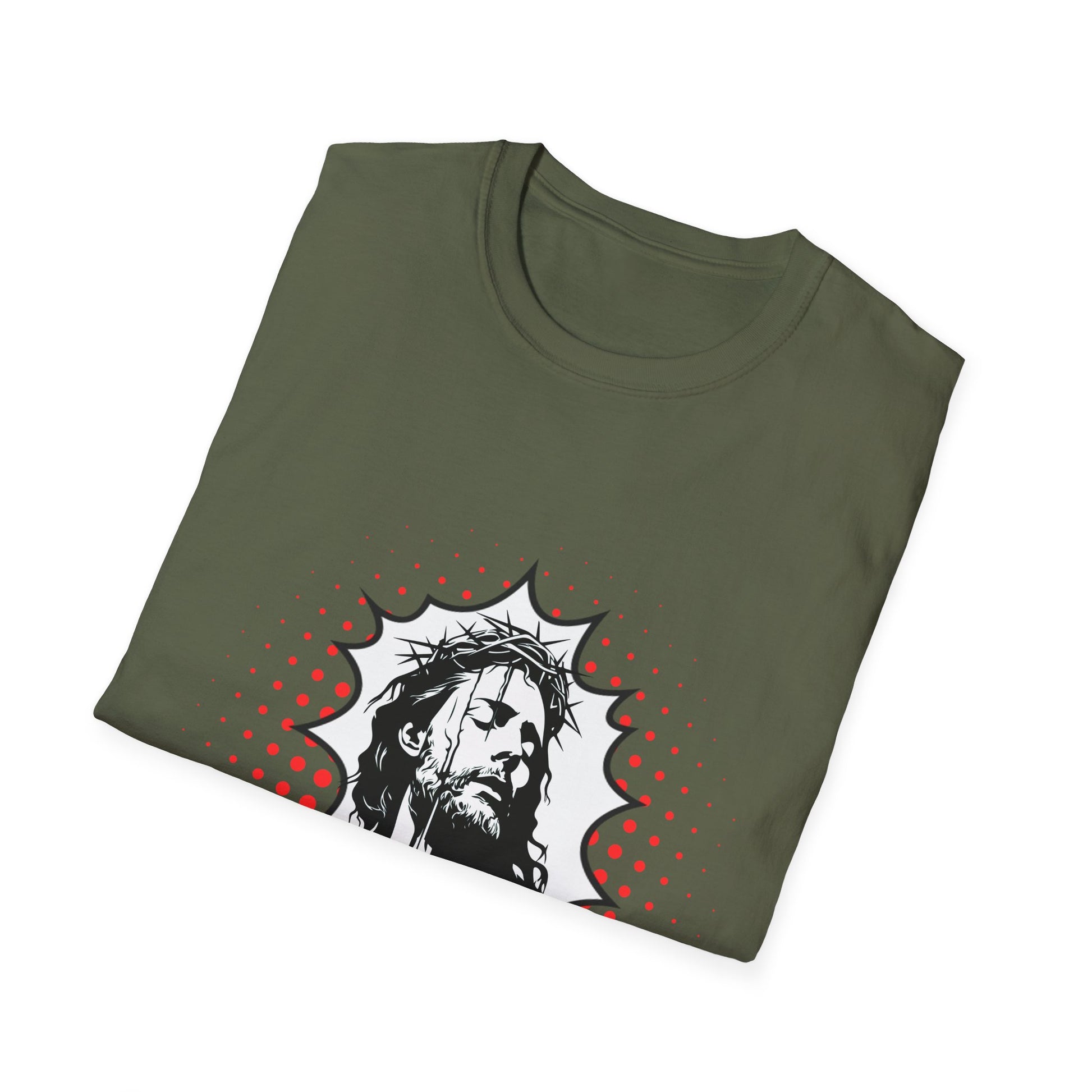Das Design zeigt Jesus mit Dornenkrone in einem modernen Streetwear-Style, kombiniert mit der Botschaft „The Way, The Truth, The Life“.